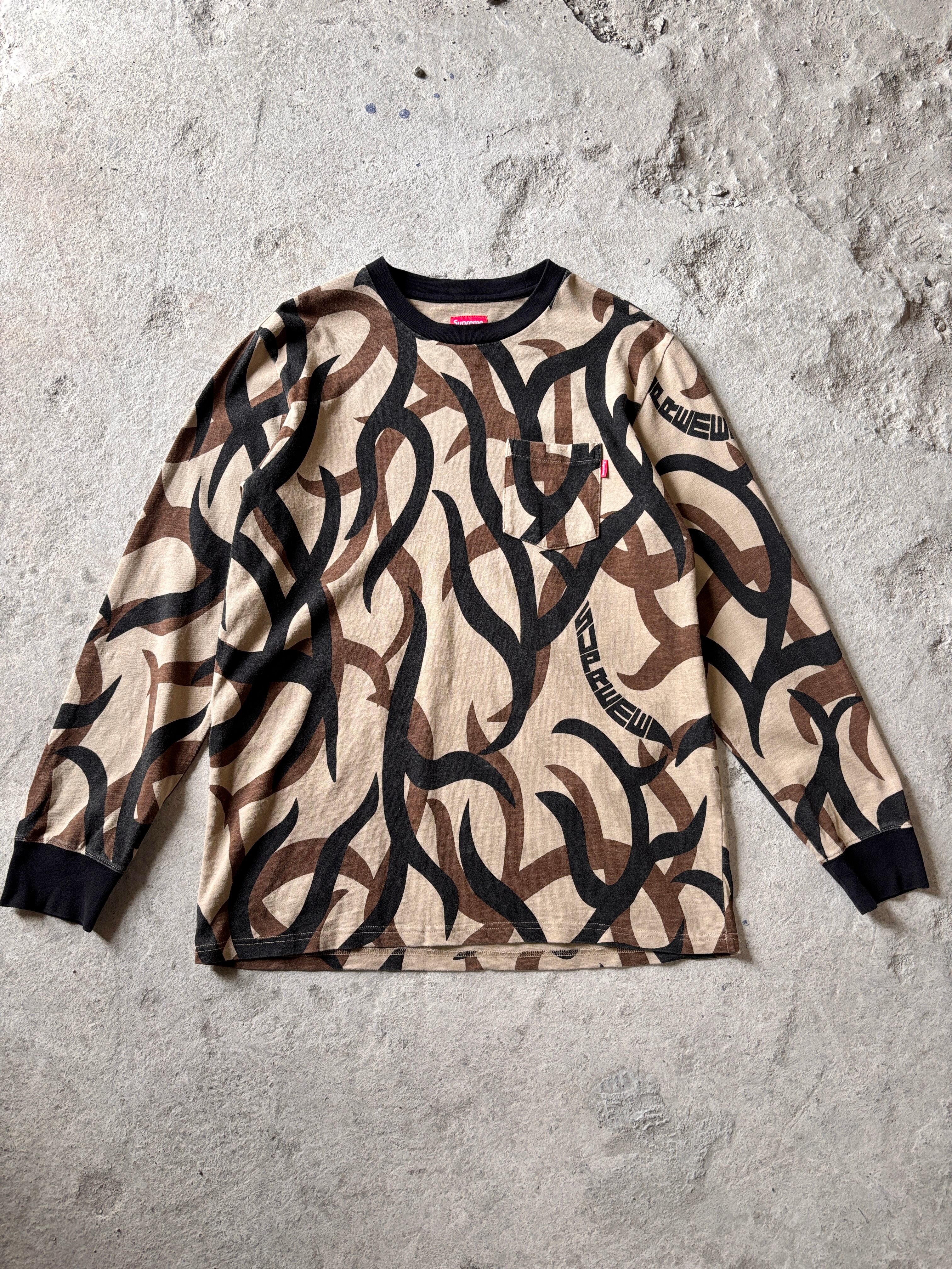 SUPREME/19AW Tribal Camo L/S Tee/L/トライバルカモ柄ロンT/ポケT/長袖/カモフラ/ベ-ジュ/ブラウン/ブラック/シュプリーム/古着/ア―カイブ