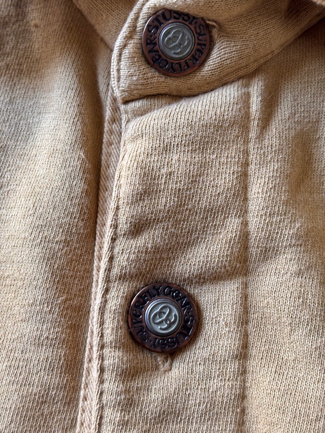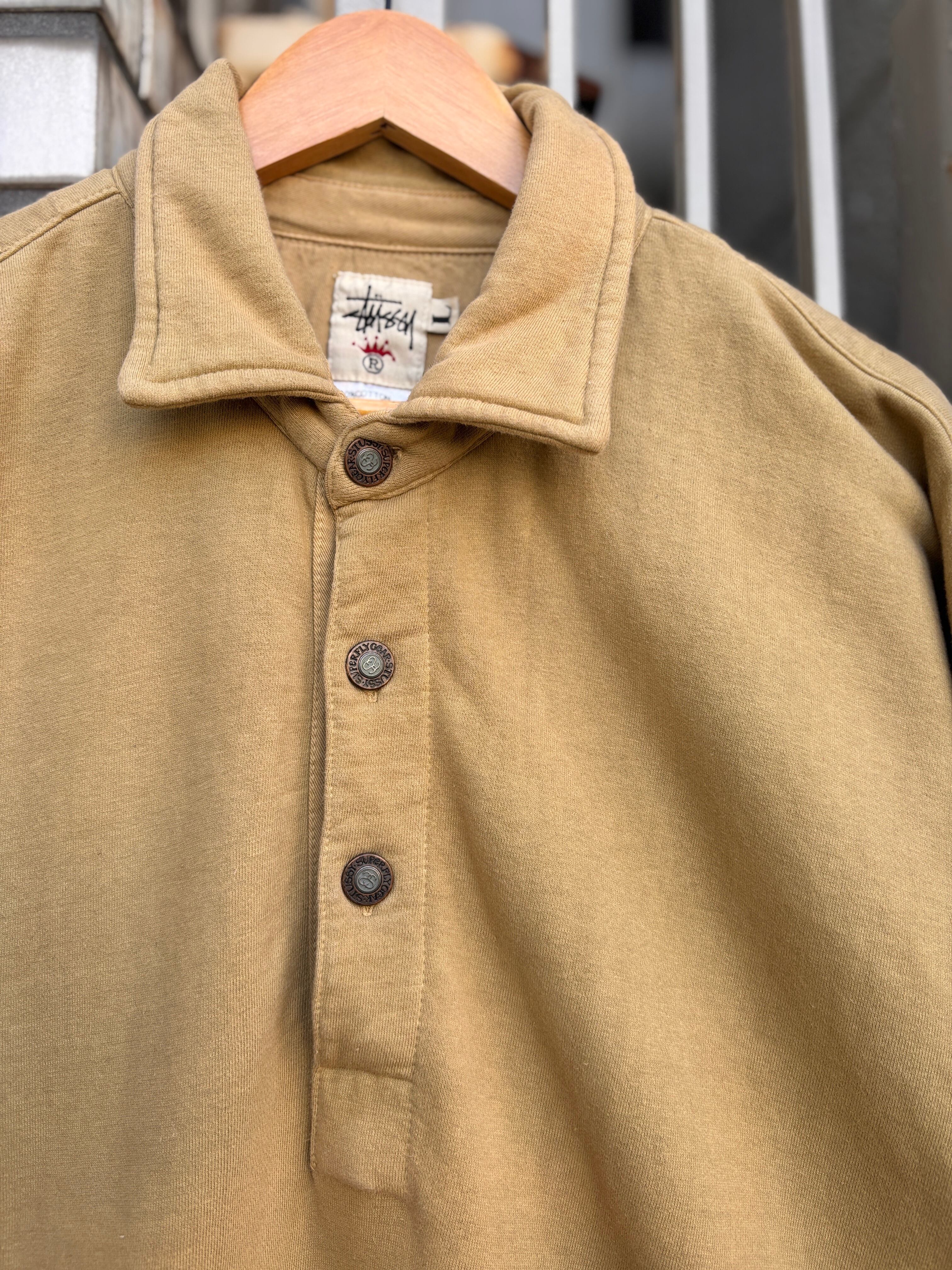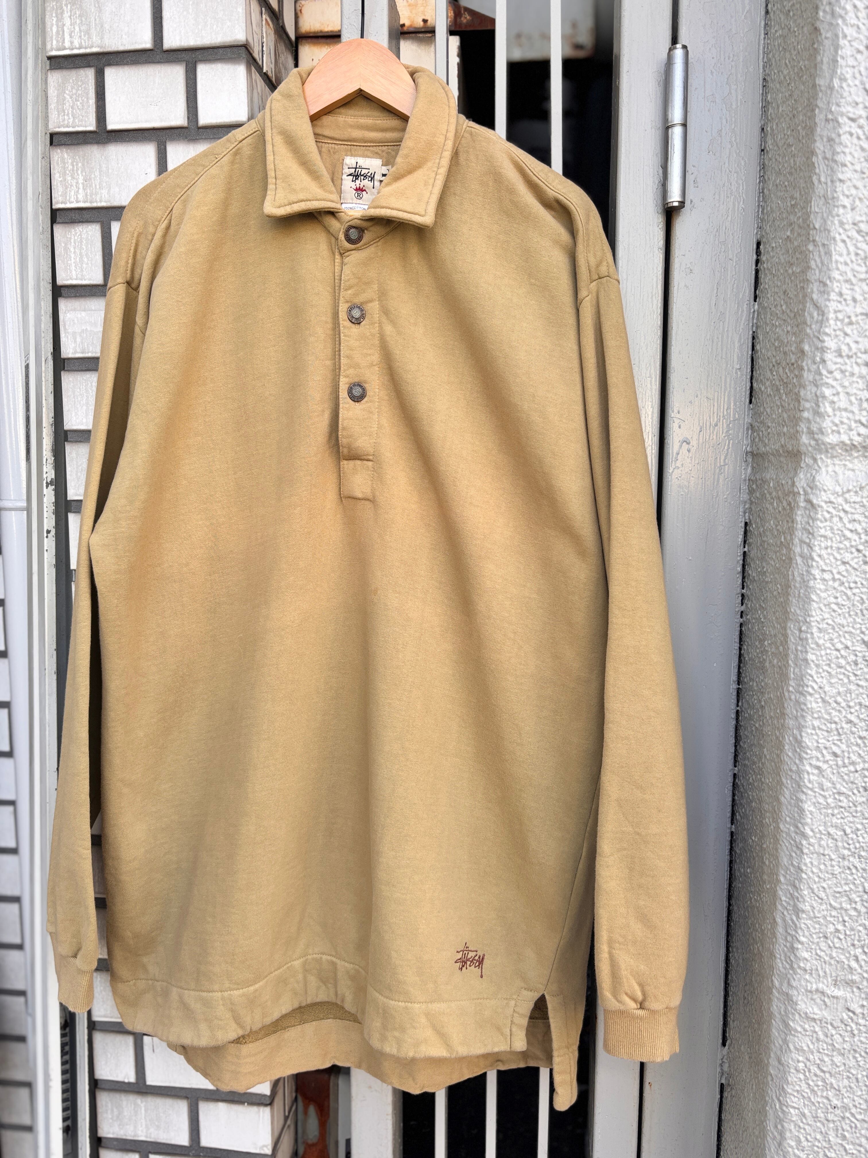 90s OLD STUSSY/Collared Sweat/白タグ/L/襟付きスウェット/刺繍ロゴ/ストックロゴ/ベ-ジュ/ステューシー/オ-ルドステューシ-