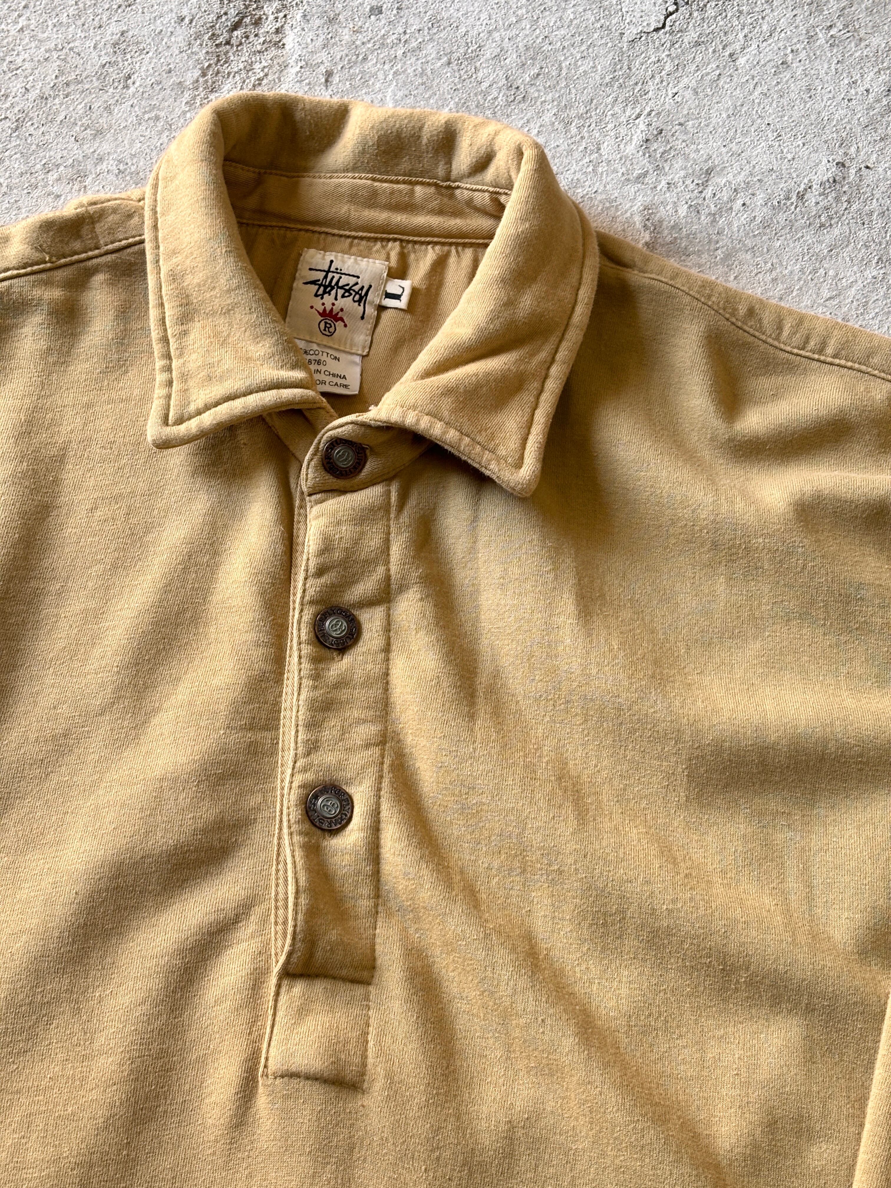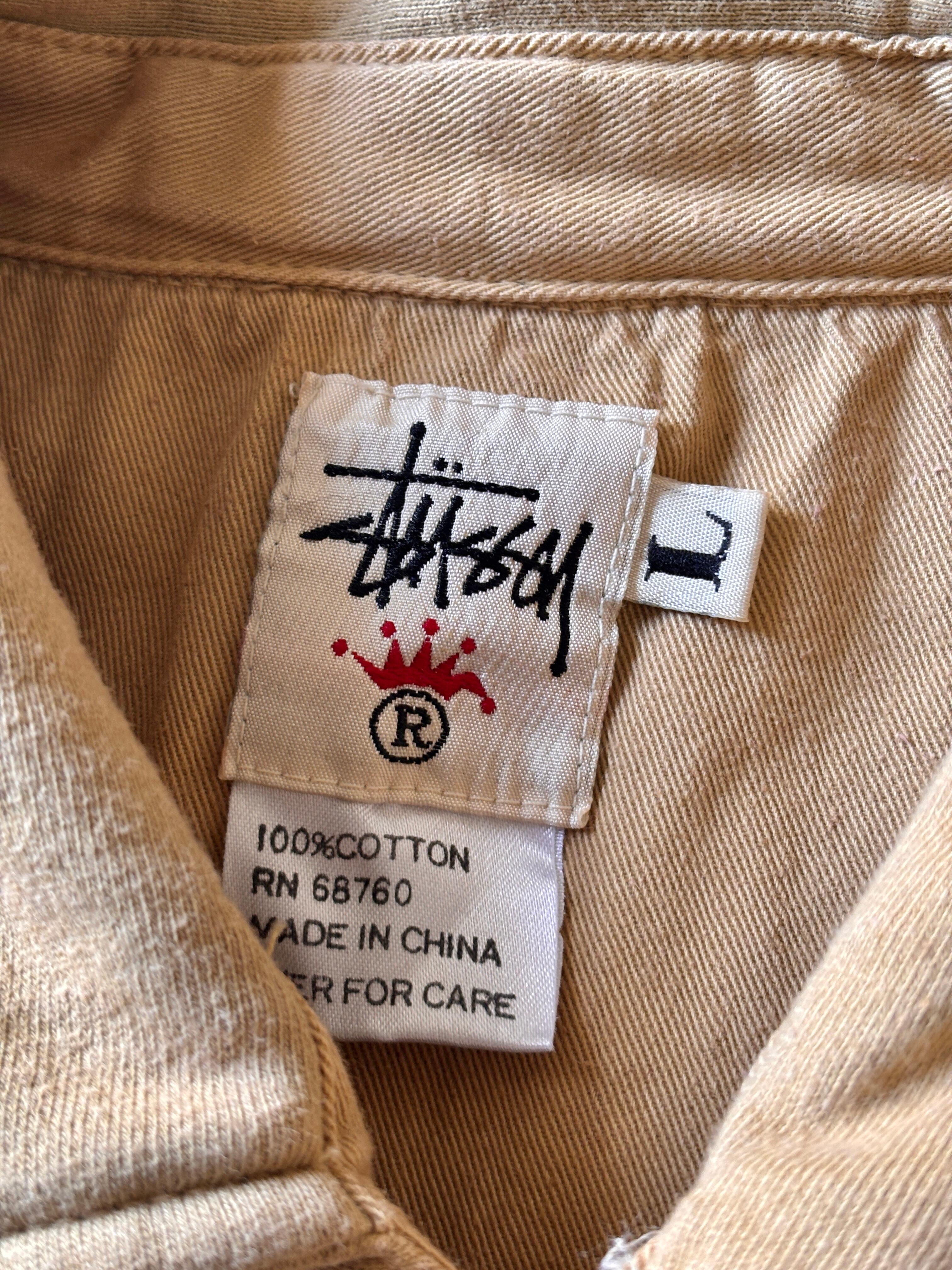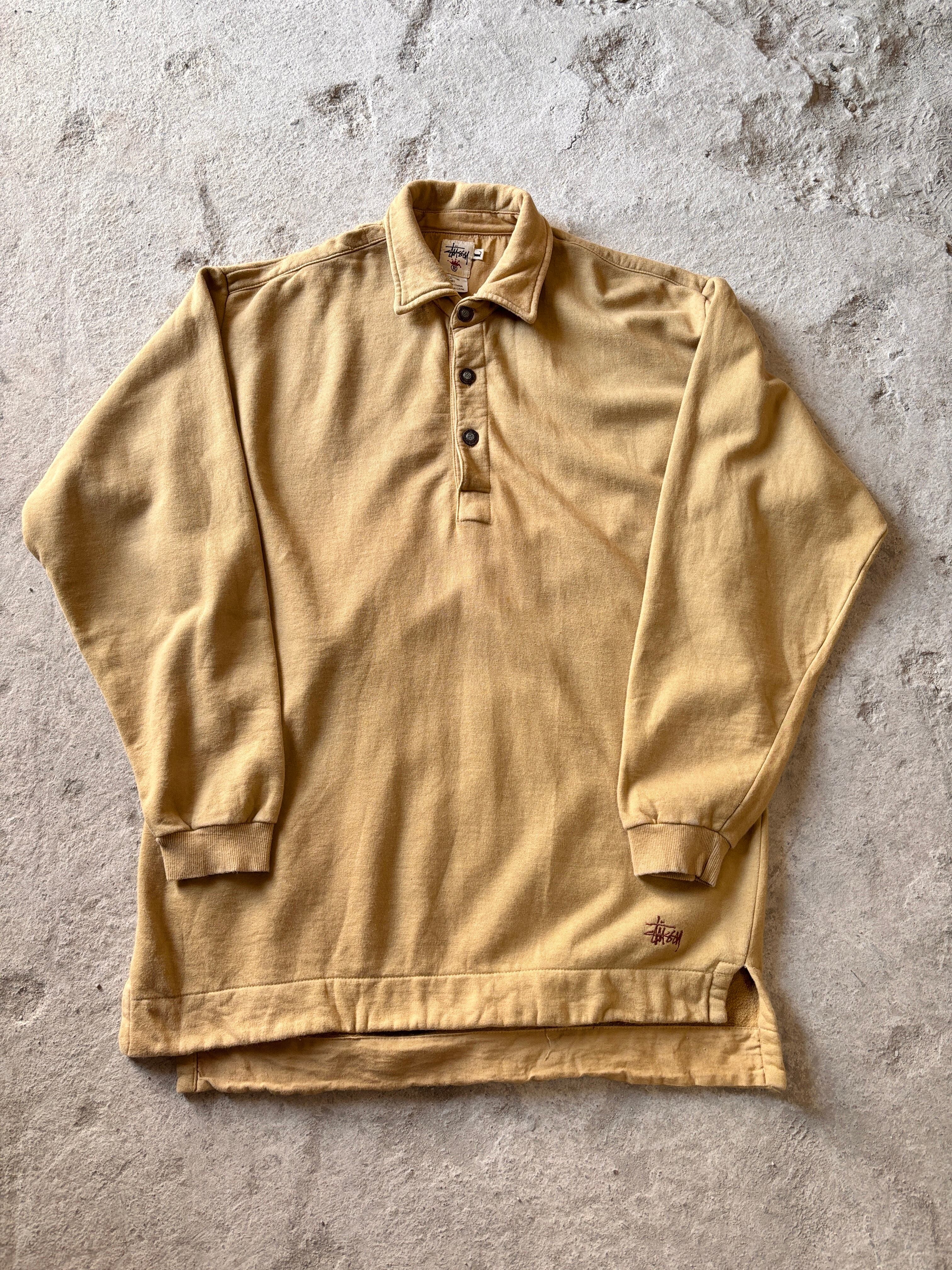 90s OLD STUSSY/Collared Sweat/白タグ/L/襟付きスウェット/刺繍ロゴ/ストックロゴ/ベ-ジュ/ステューシー/オ-ルドステューシ-