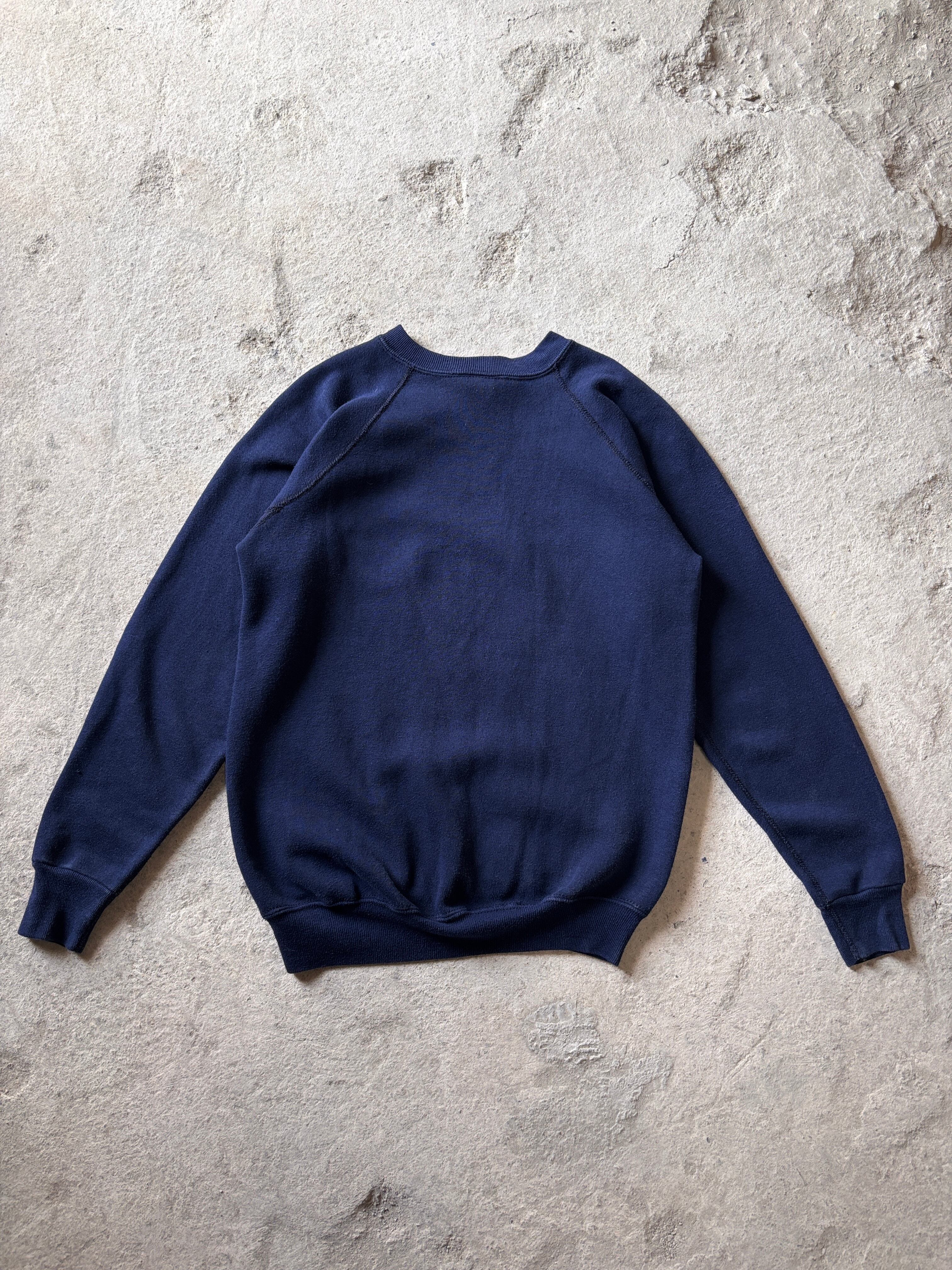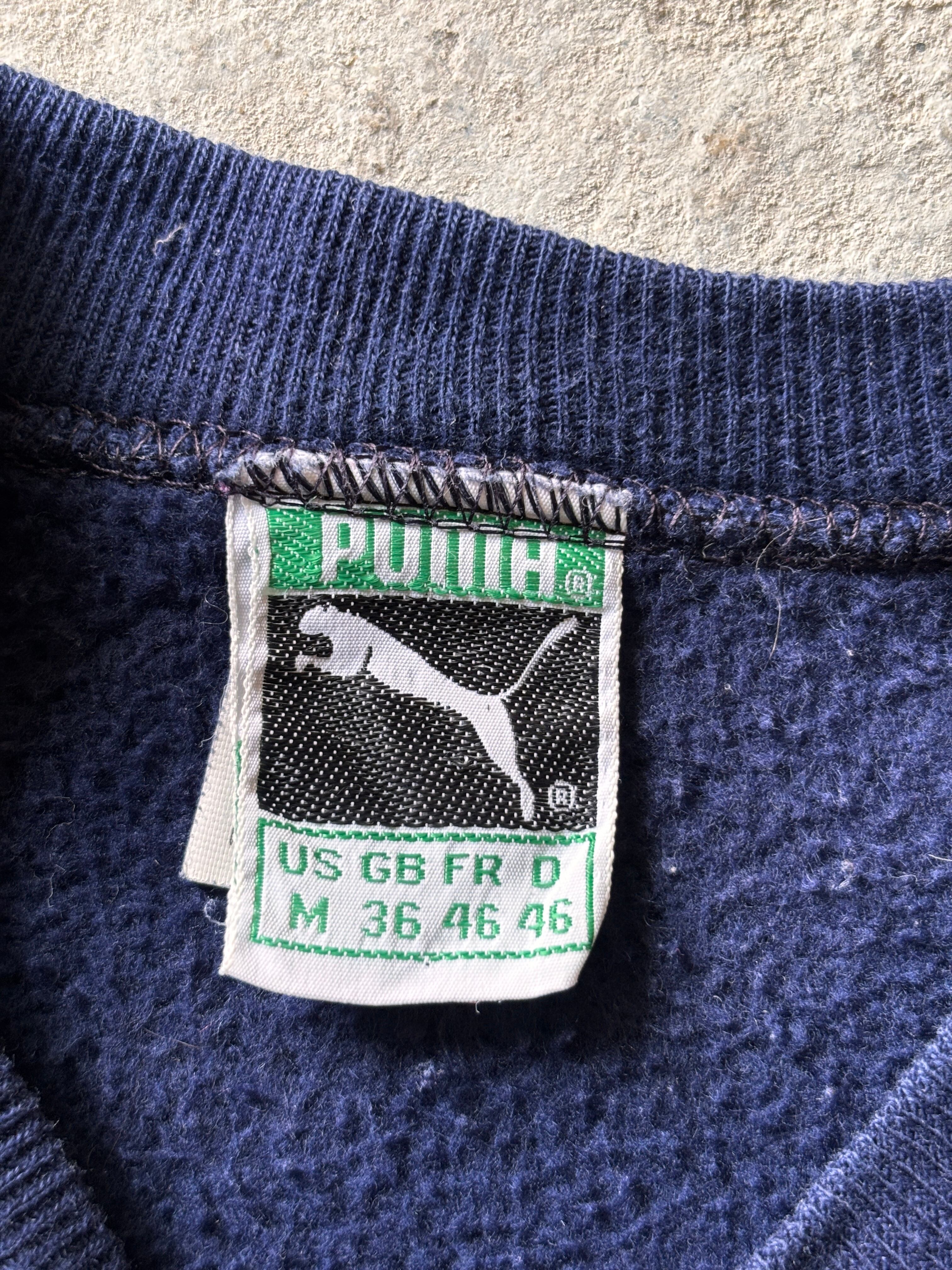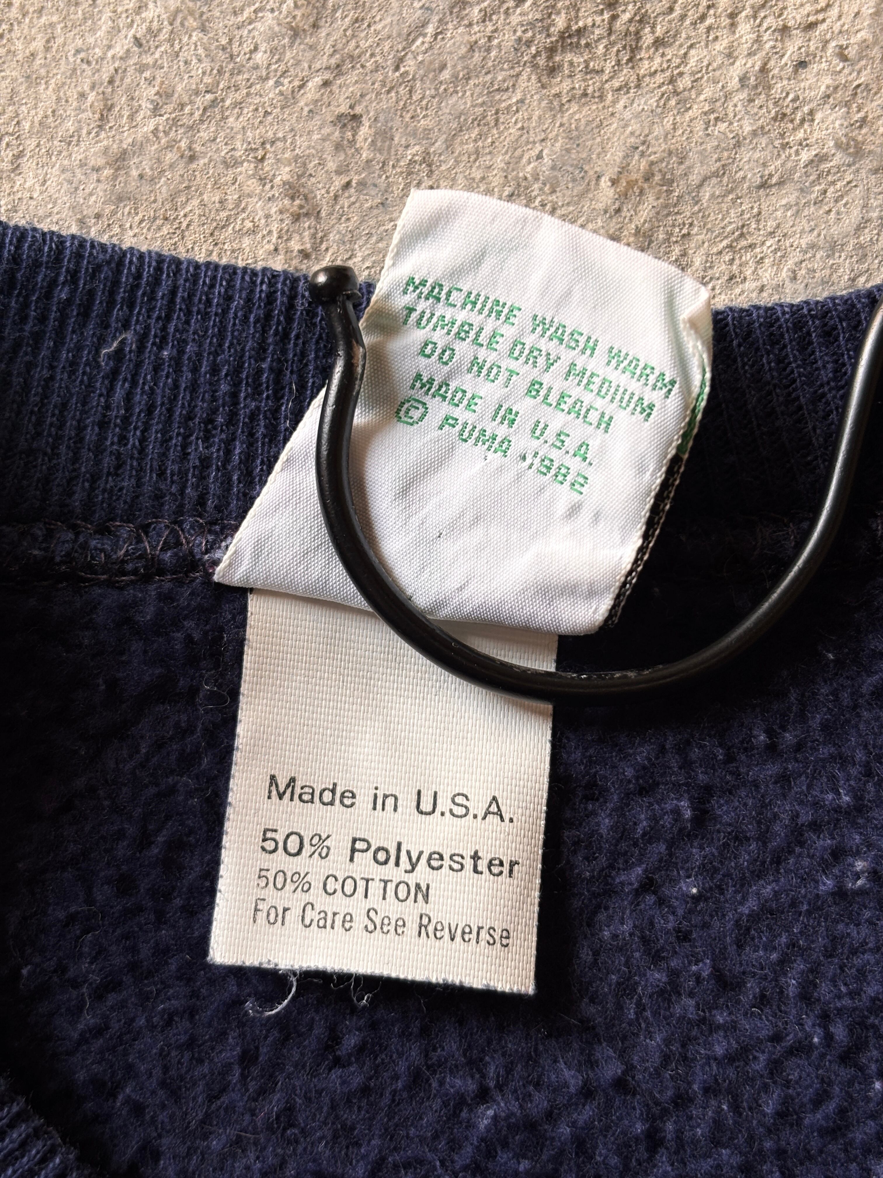 90s PUMA/Logo print Sweat/USA製/M/ロゴプリントスウェット/フロッキ-/ラグラン/ネイビ-/レッド/プ-マ/古着