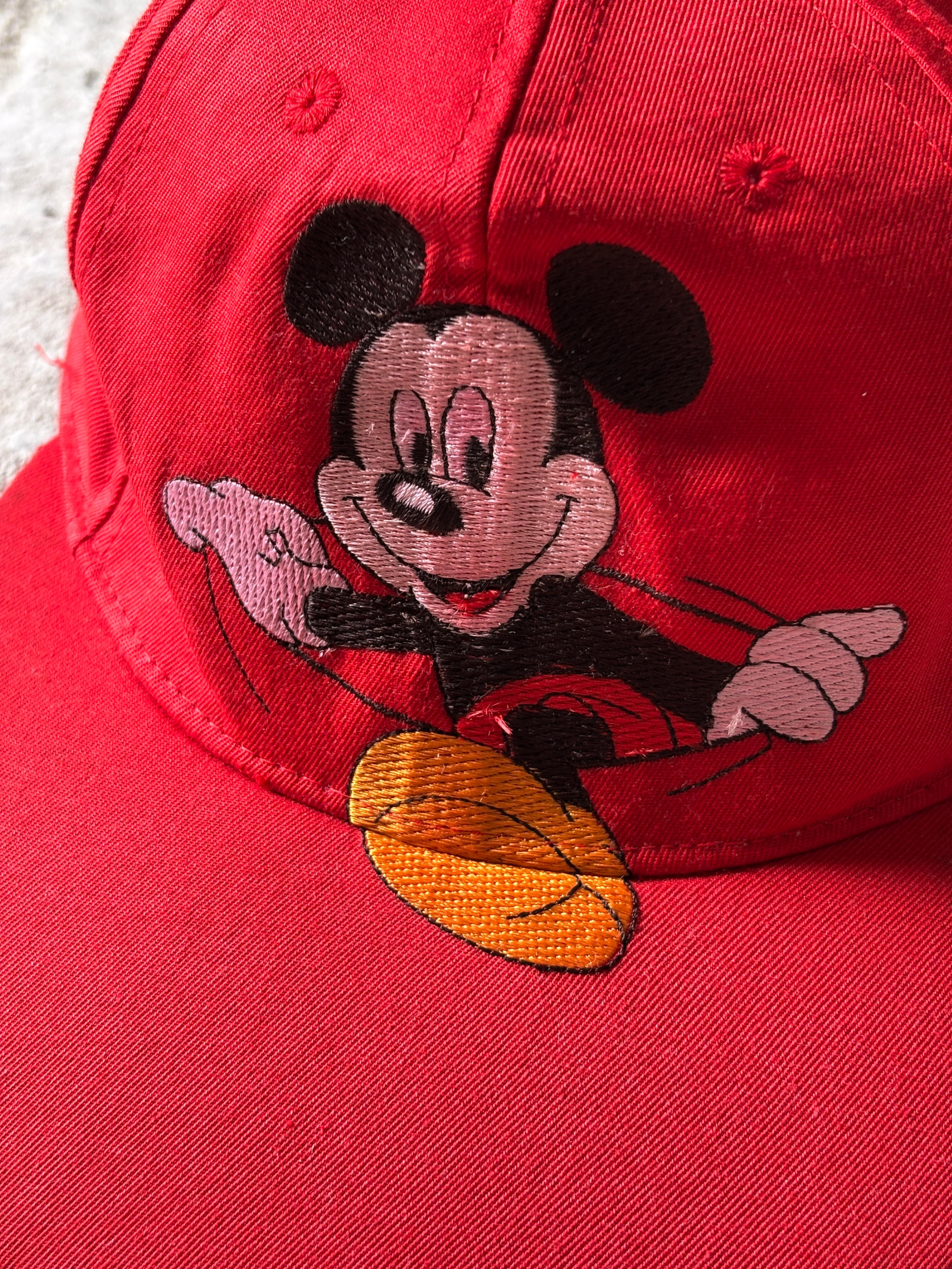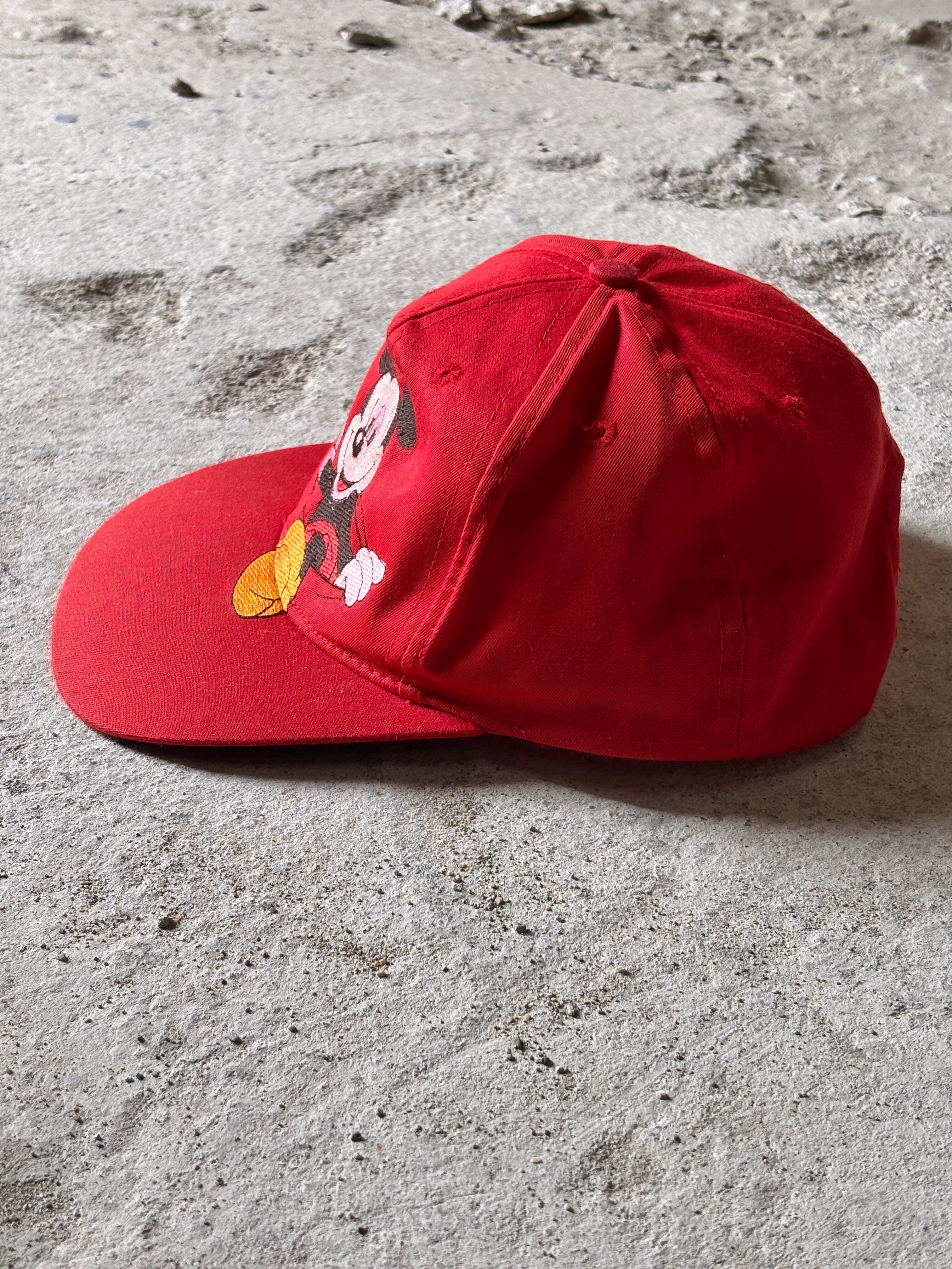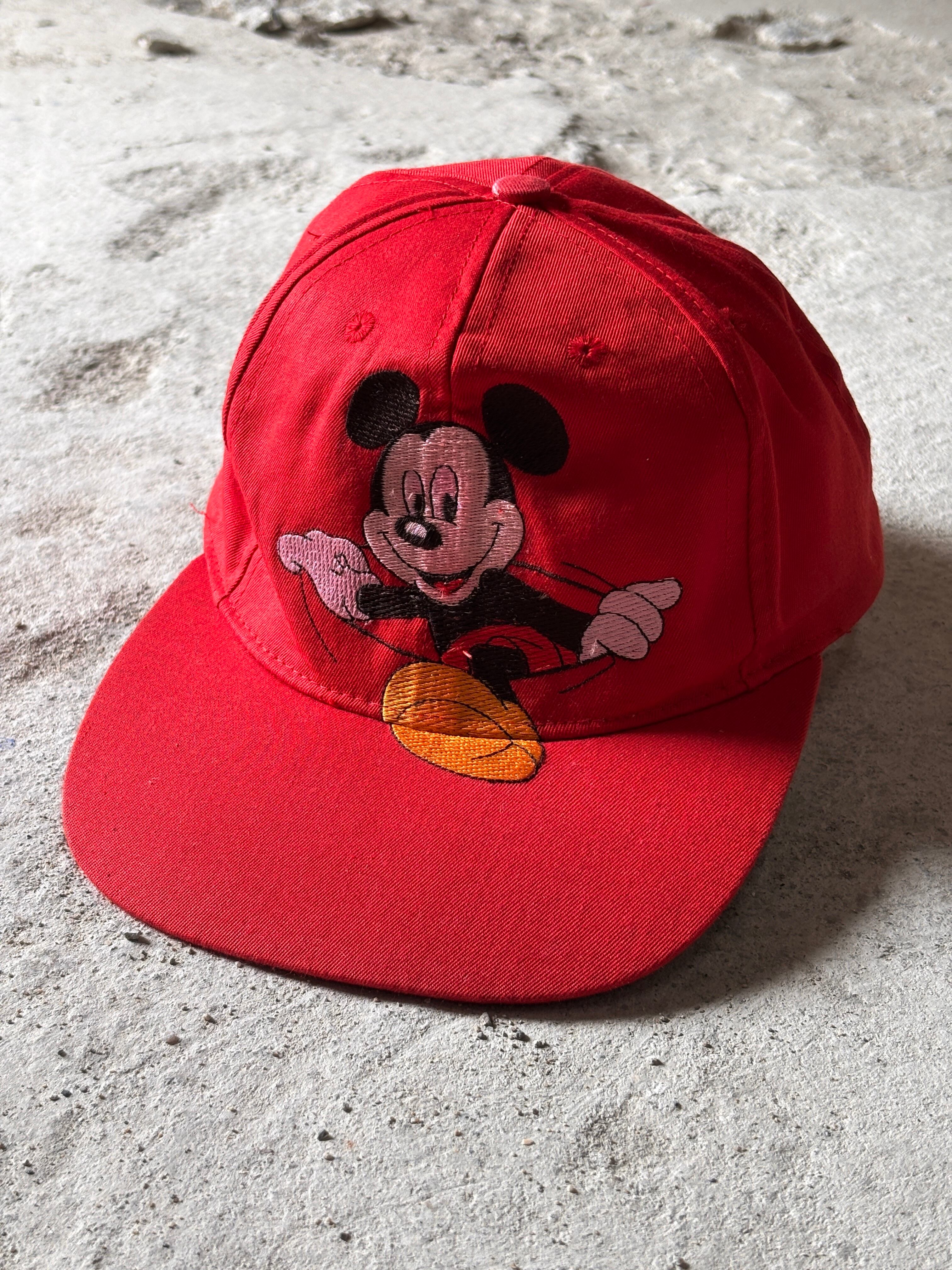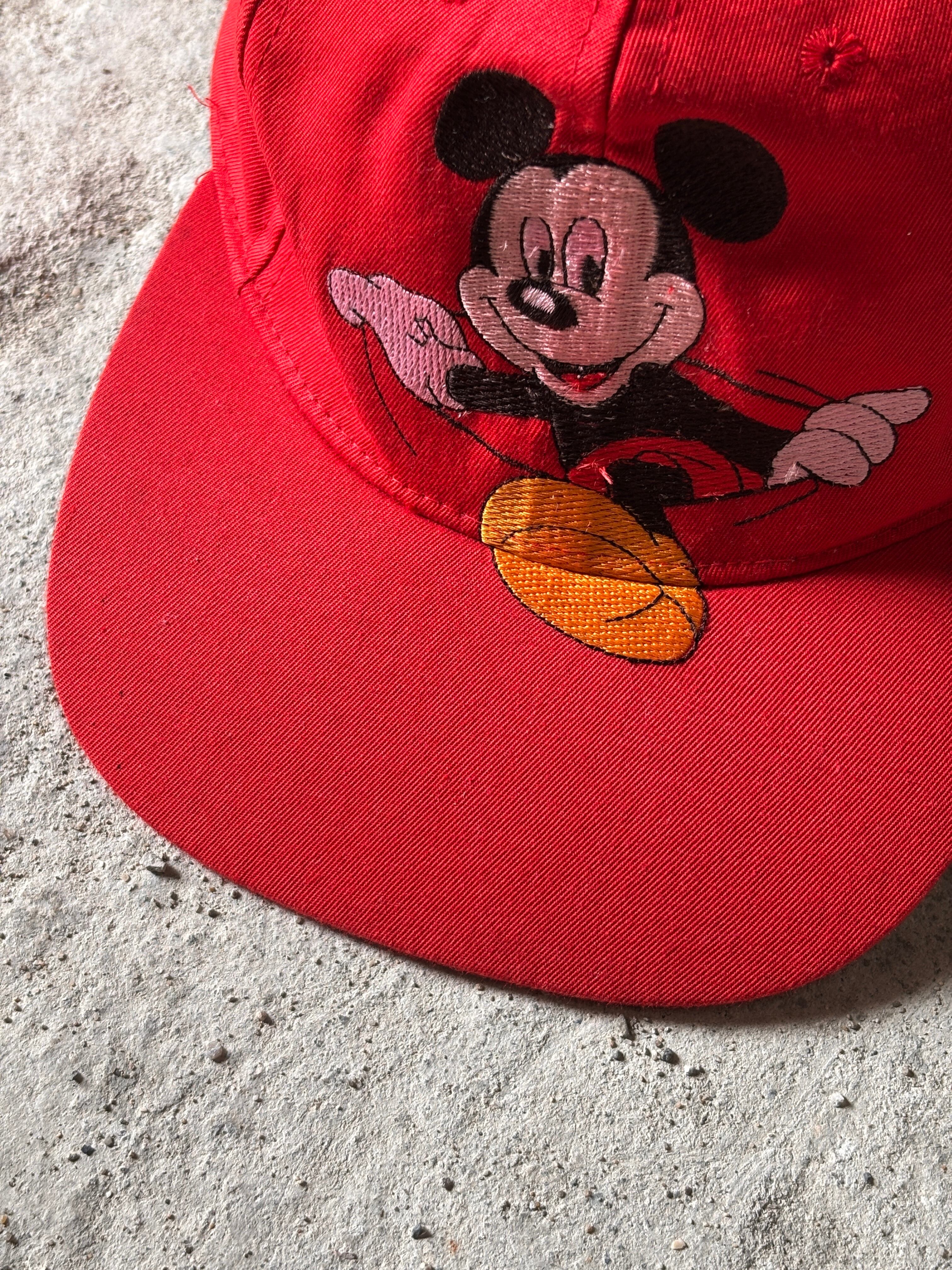 90~00s Mickey Cap/Snapback Cap/Free/ミッキー刺繍スナップバックキャップ/レッド/ミッキ-マウス