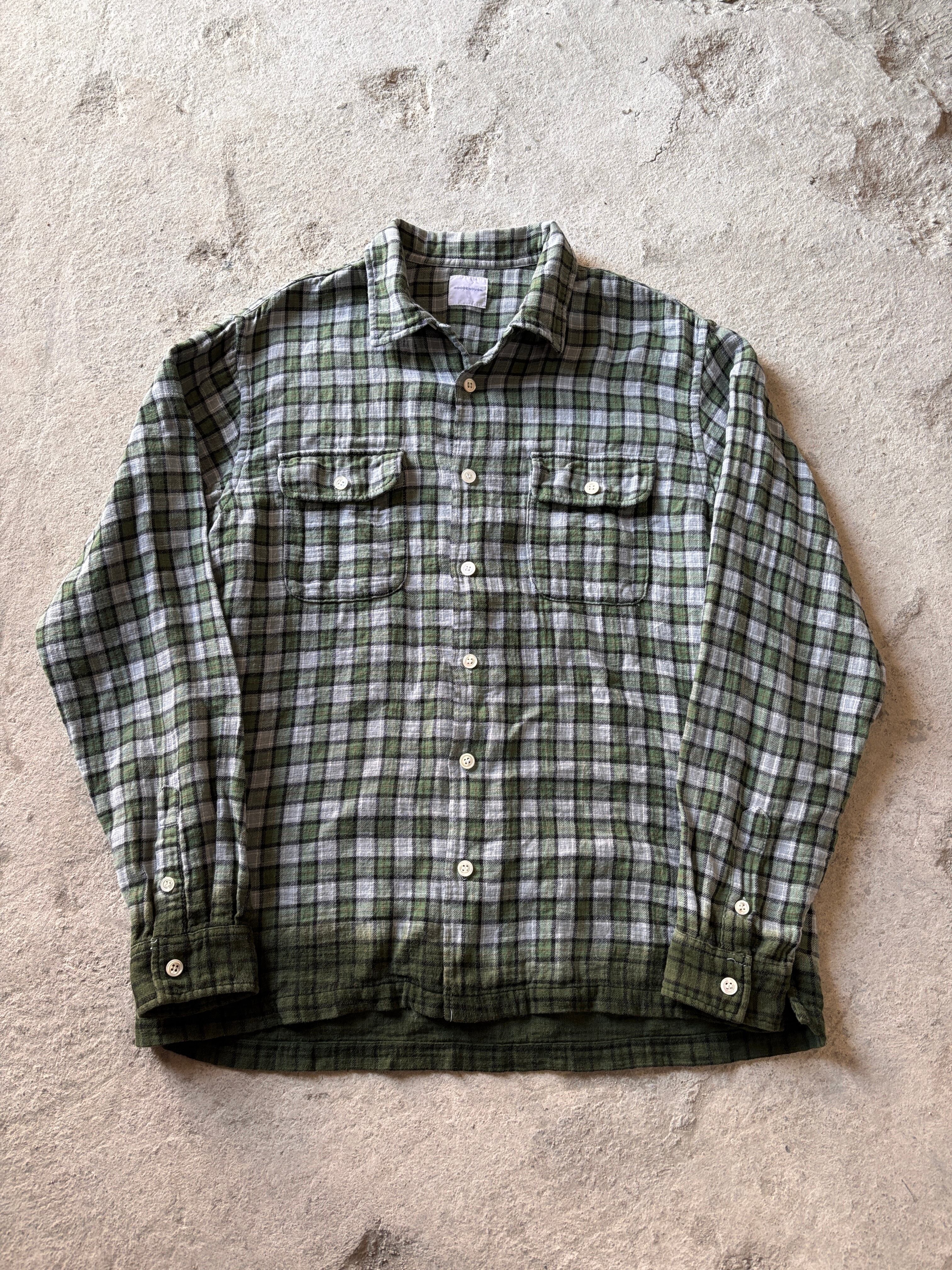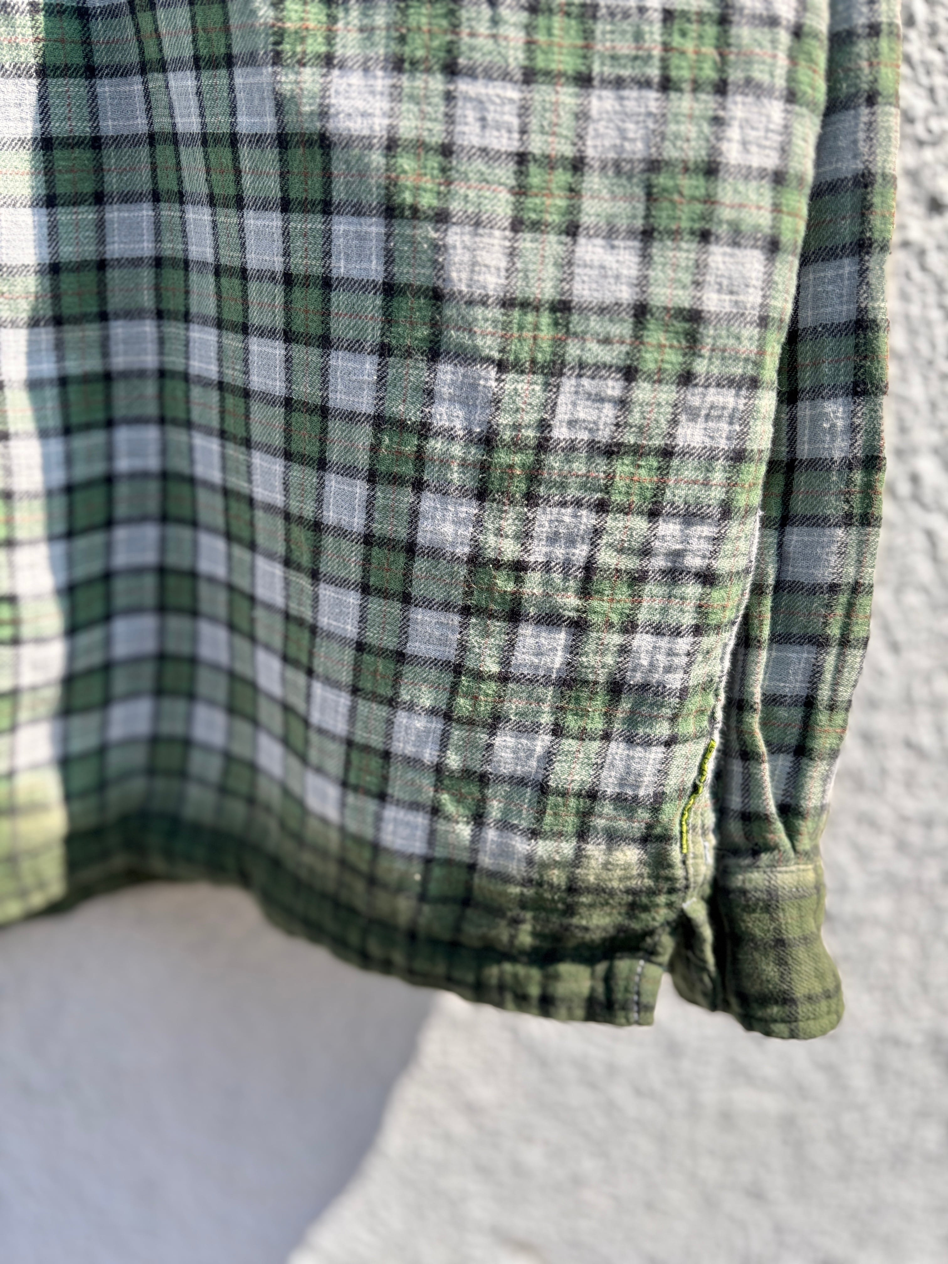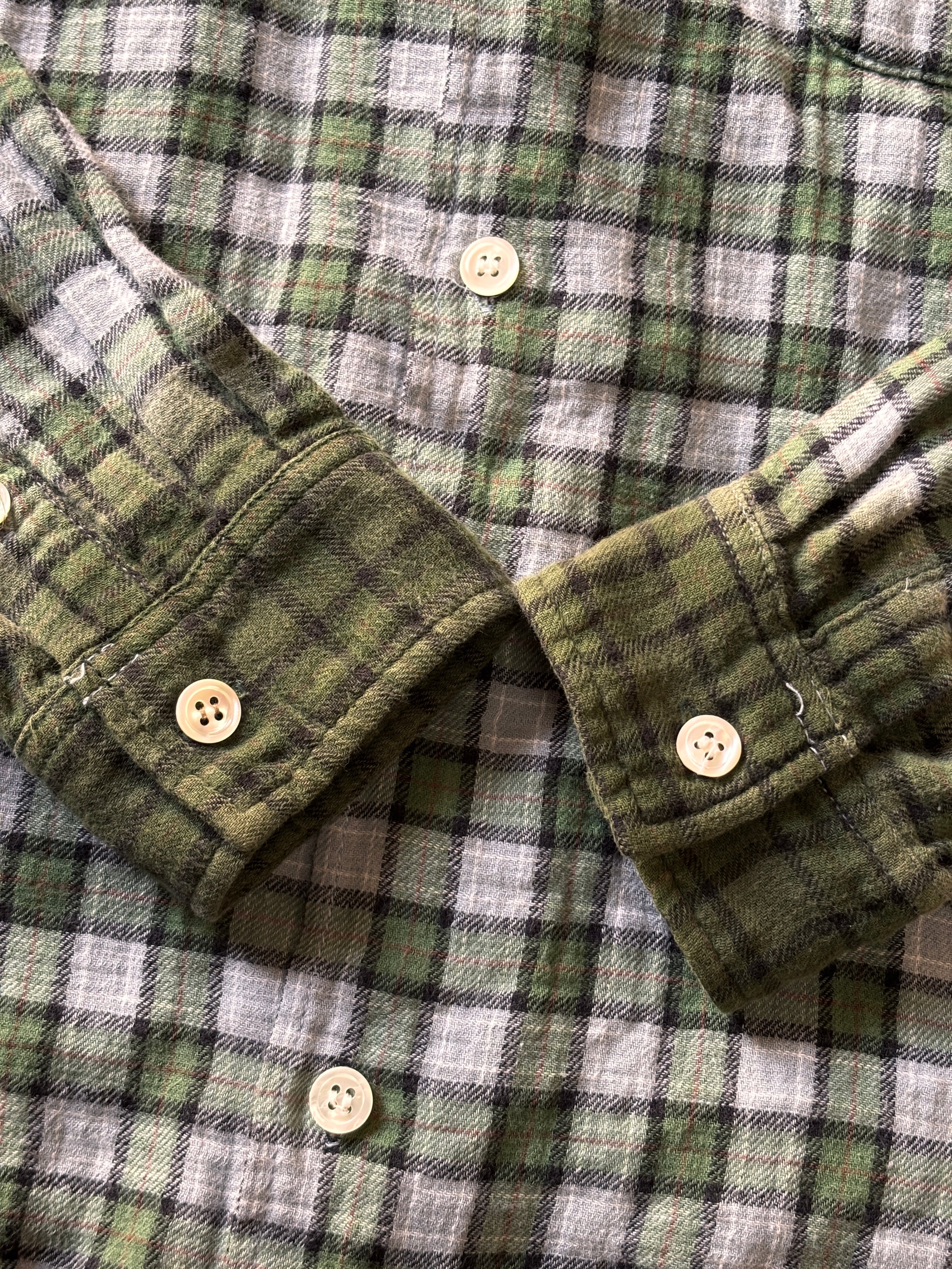 00s GOODENOUGH/Line Flannel Shirt/L/ラインネルシャツ/チェック柄/長袖シャツ/開襟/グレ-/グリ-ン/GDEH/グッドイナフ