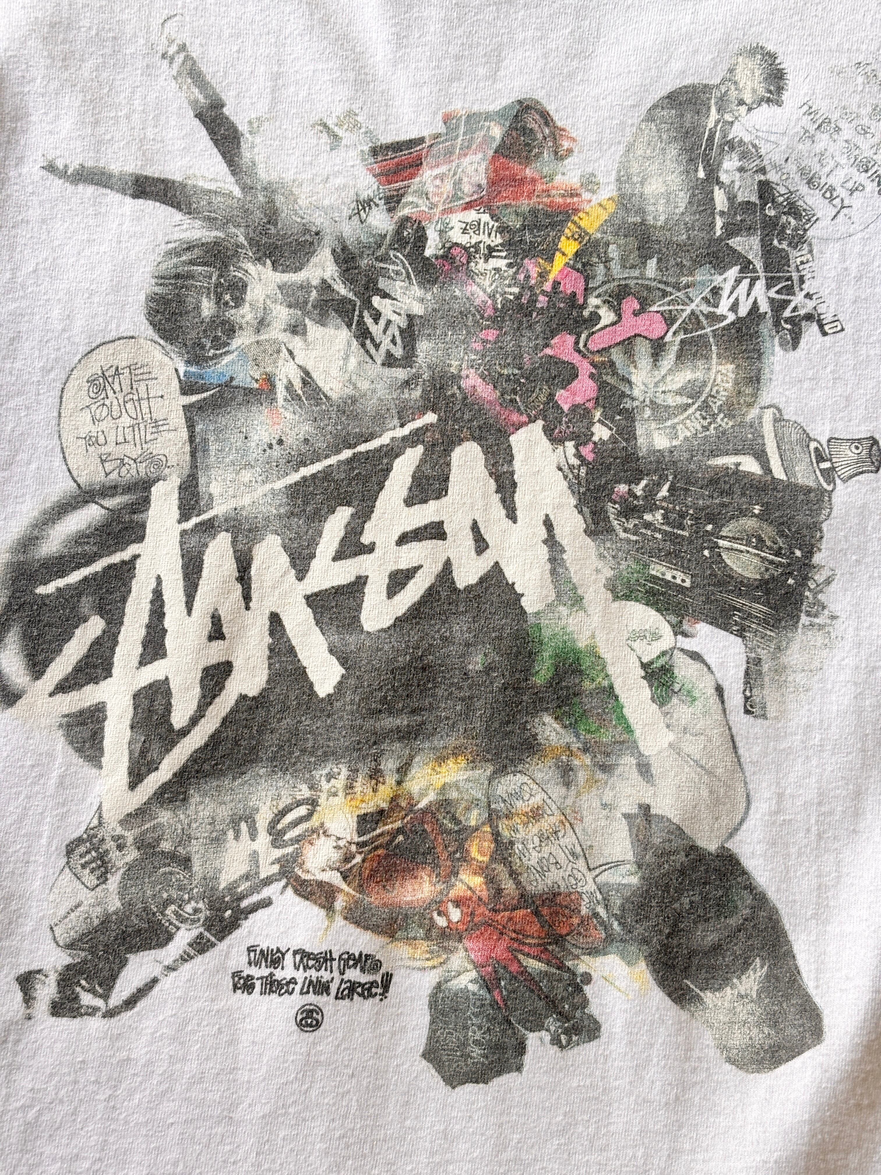 00s STUSSY/Graphic print Tee/M/グラフィックプリントTシャツ/フォトプリント/ロゴプリント/ホワイト/グッドイナフ/ステュ-シ-/古着/ア―カイブ