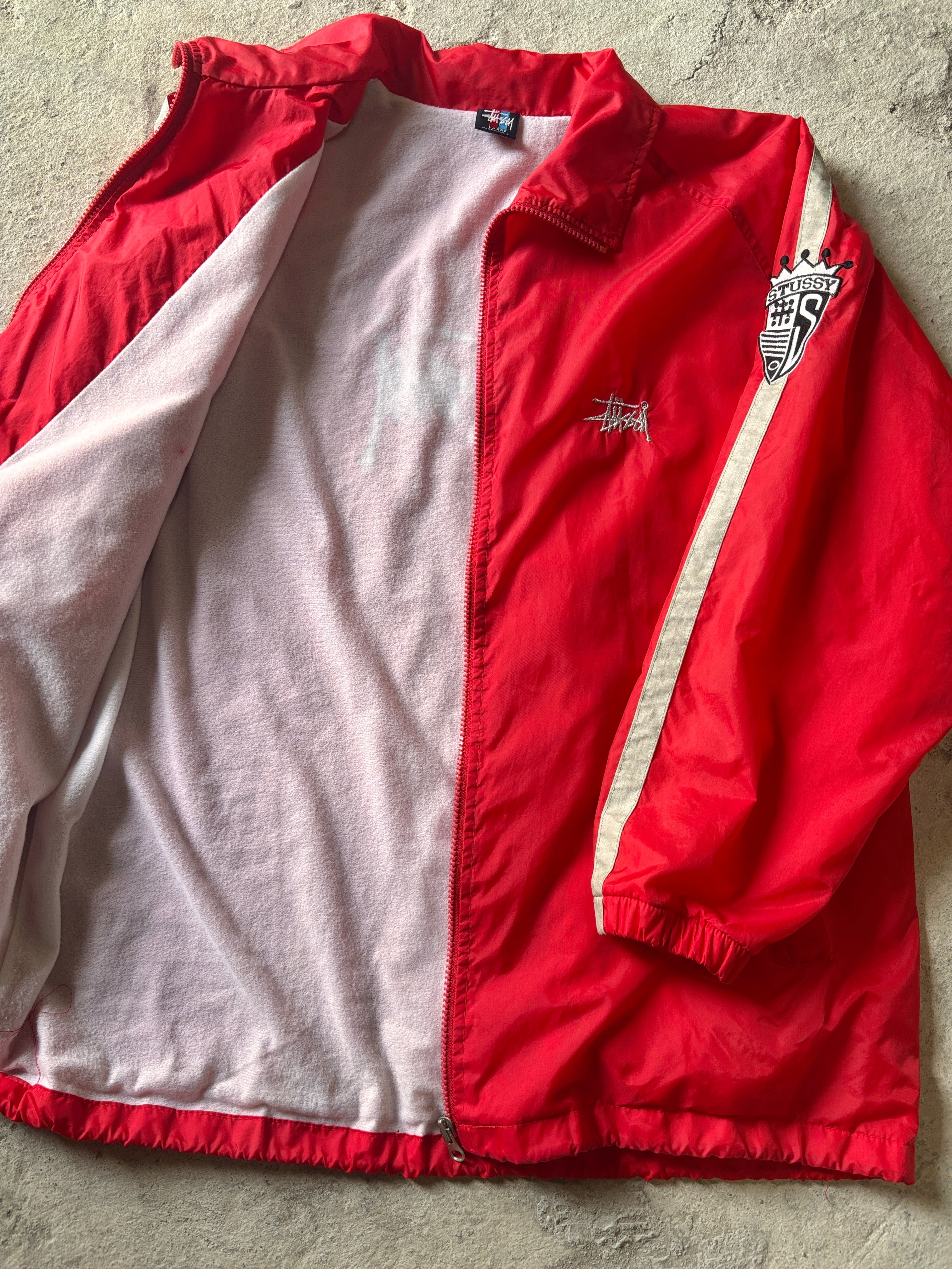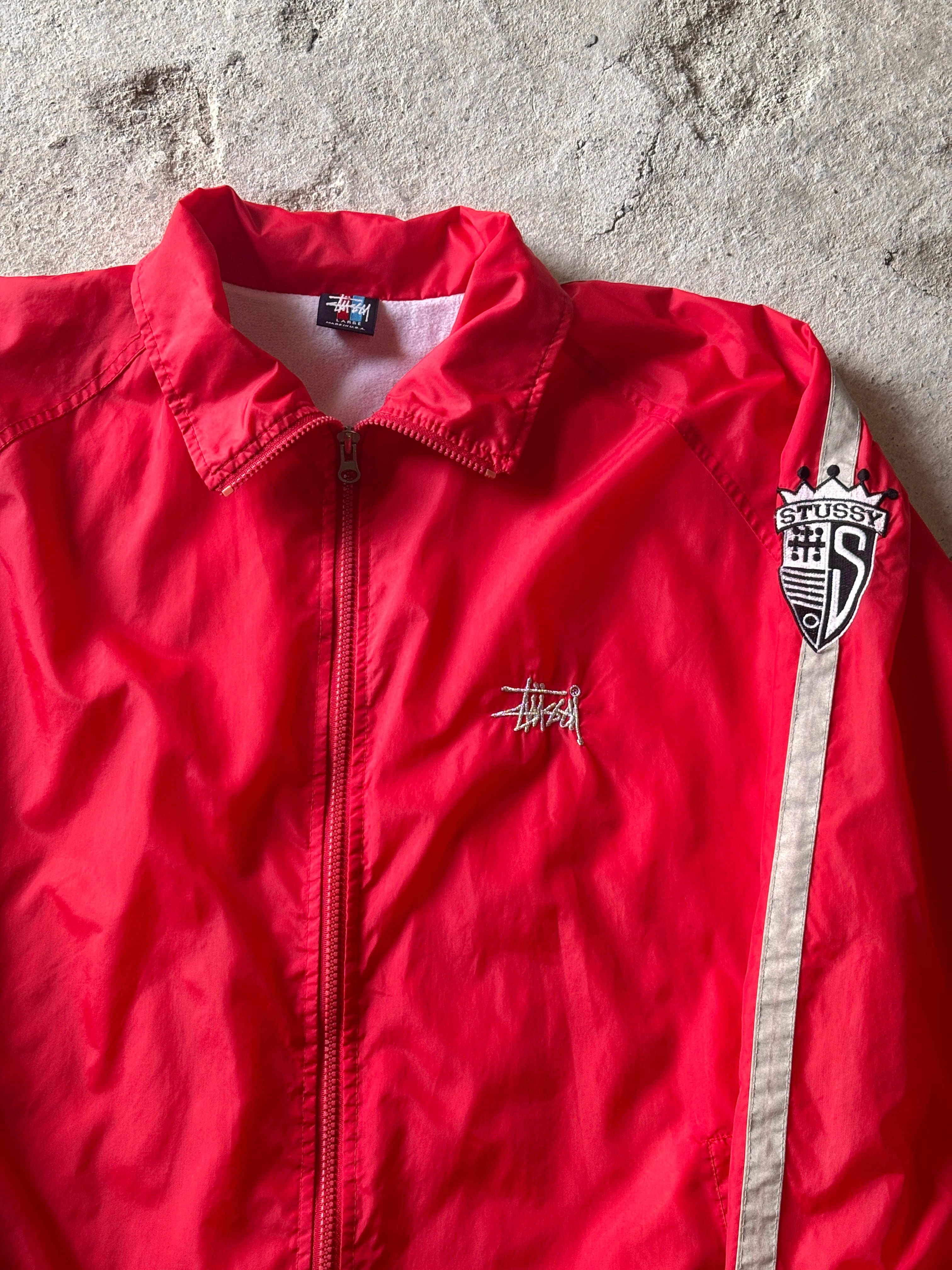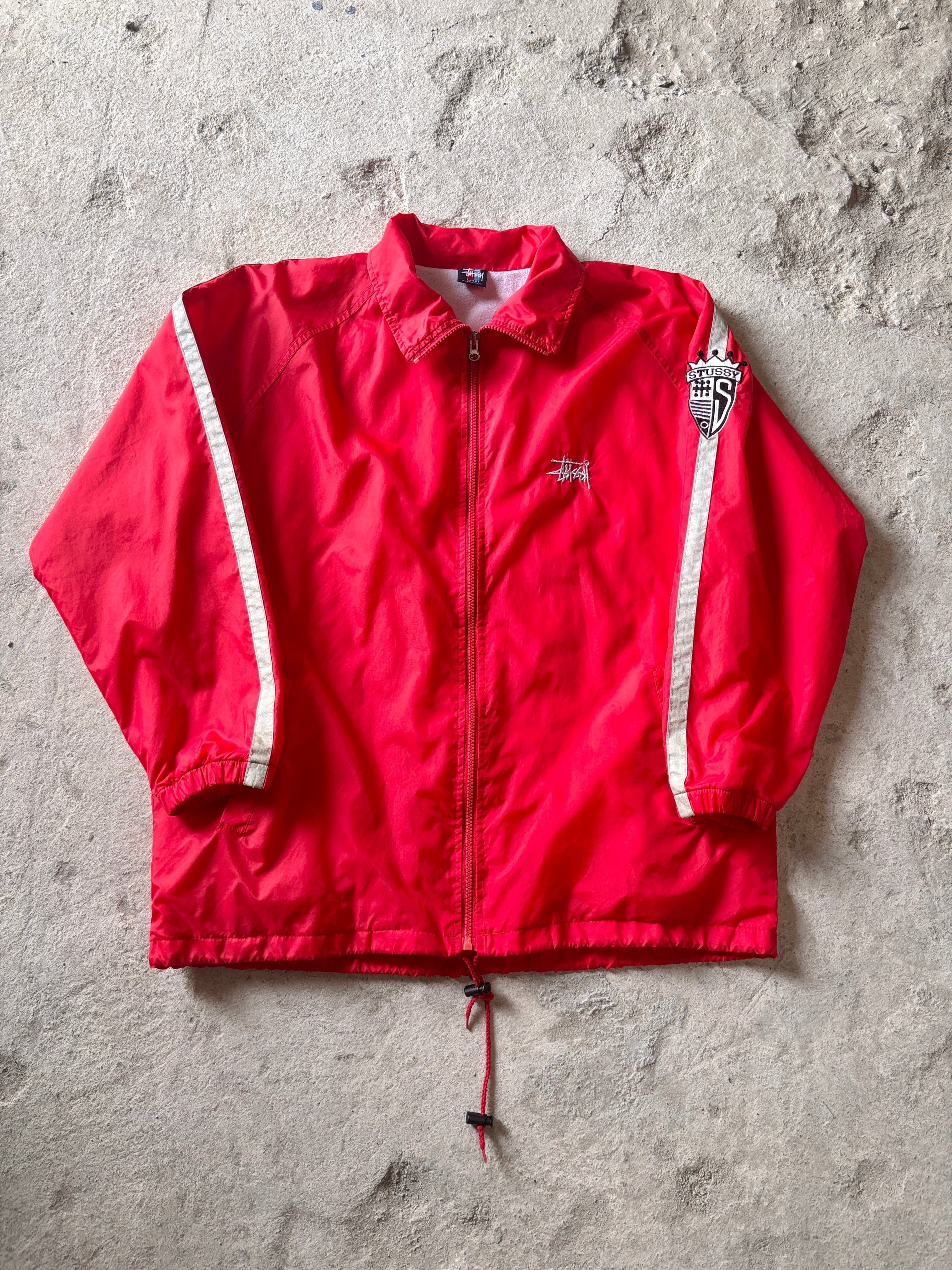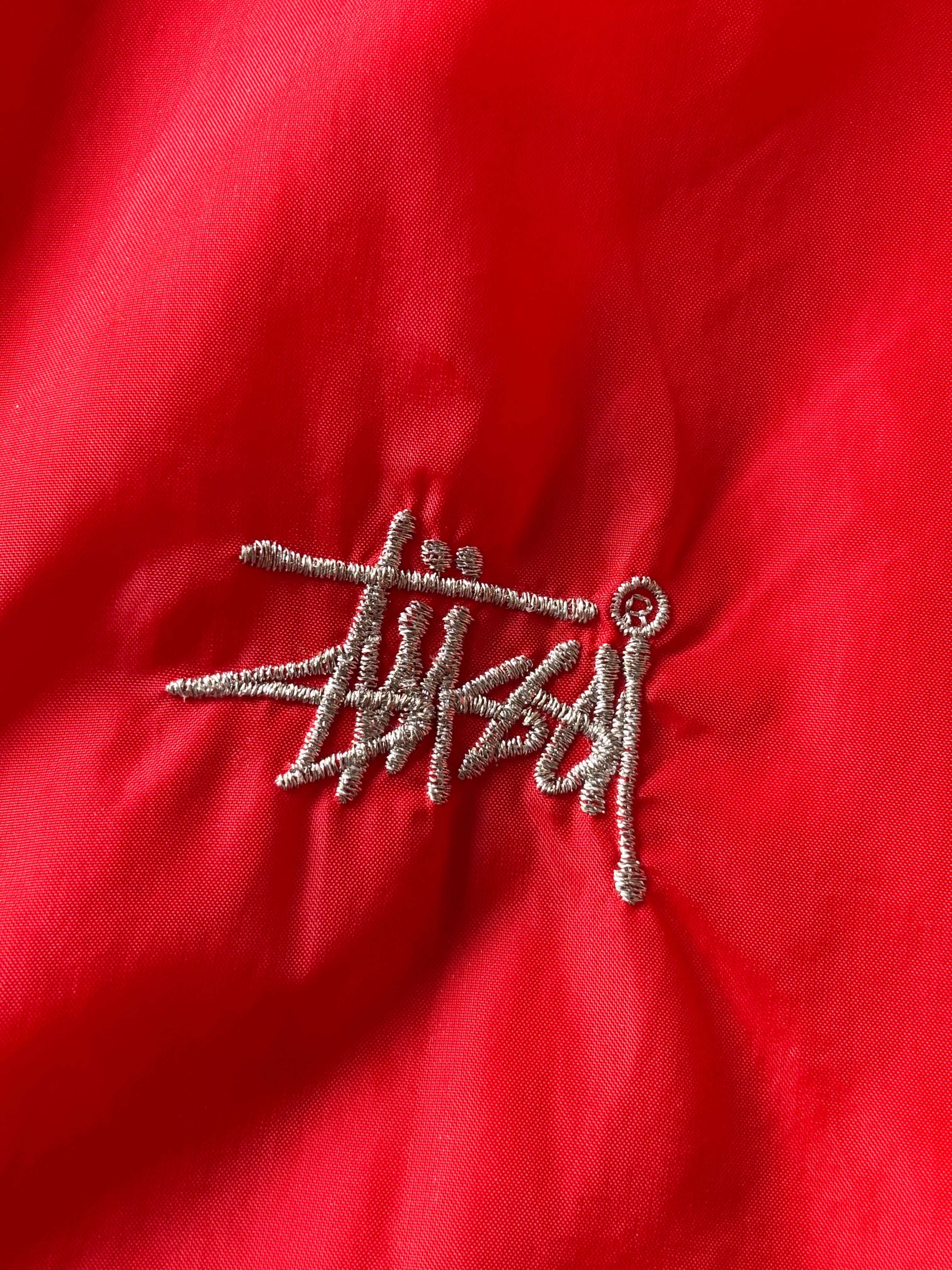 90~00s Bootleg STUSSY/Nylon Jacket/USA製/赤青タグ/L/ナイロンジャケット/ストックロゴ/刺繍ロゴ/レッド/ステュ-シ-