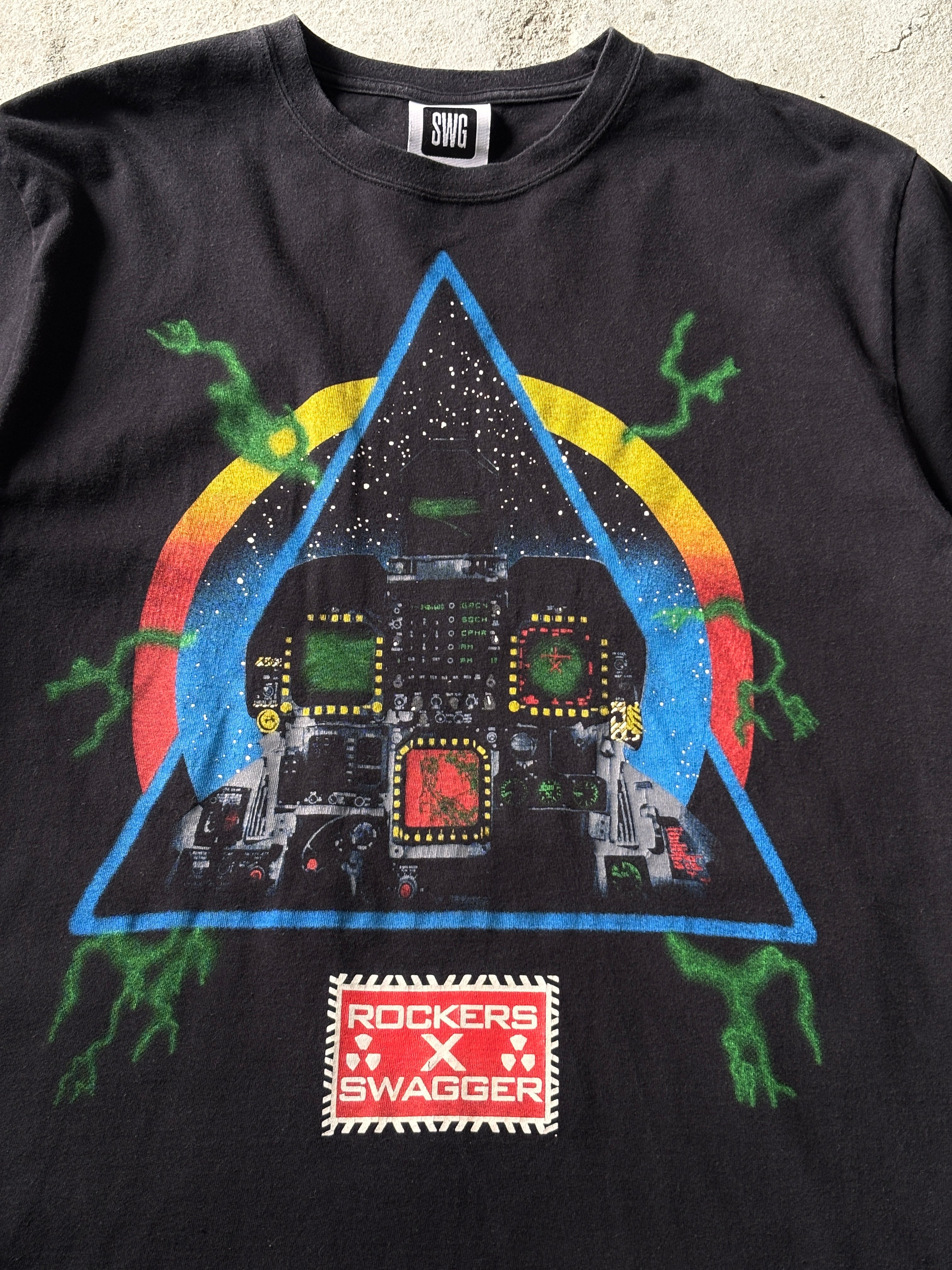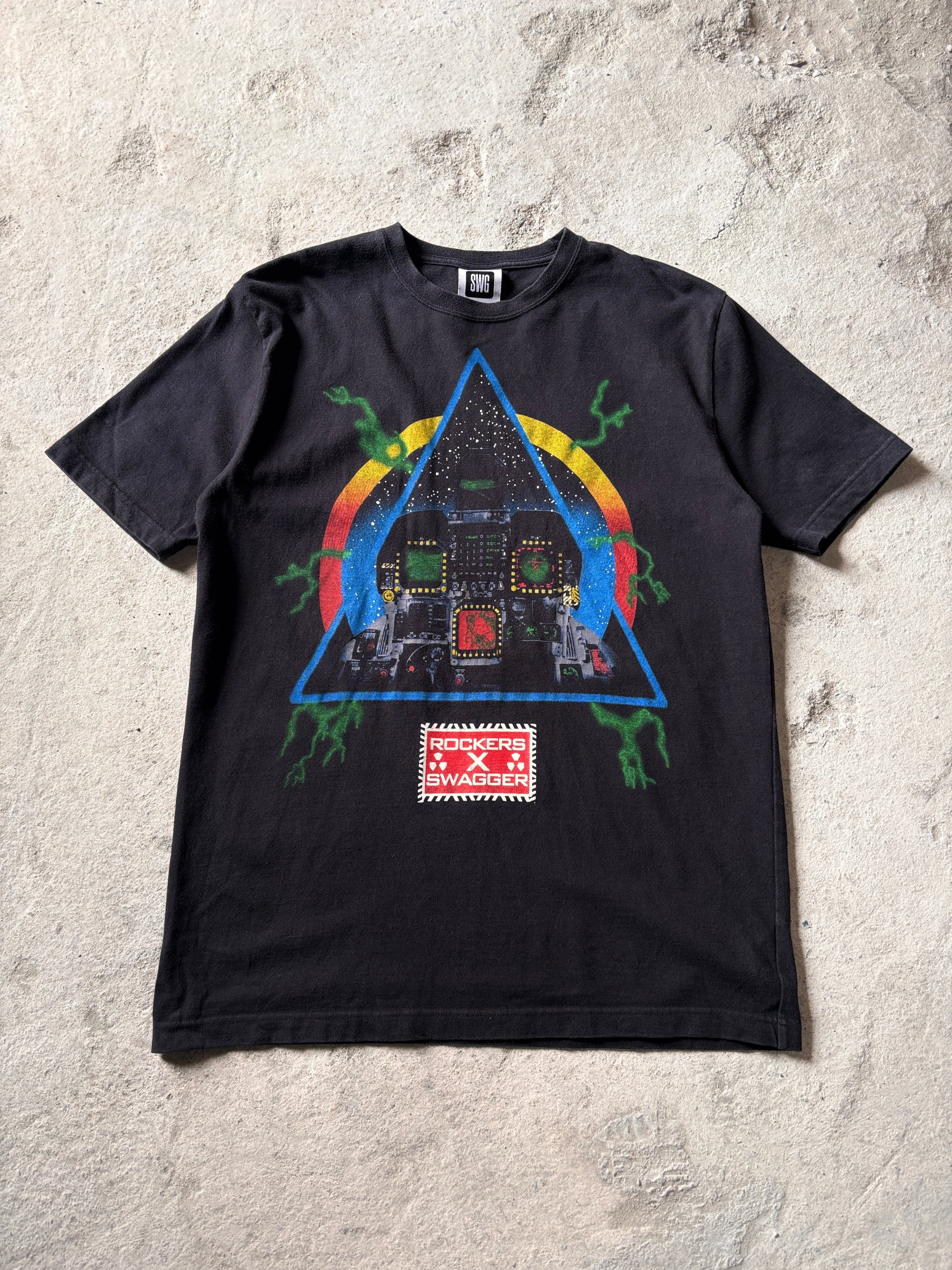 00〜10s SWAGGER × ROCKERS/10th Anniversary/Graphic print Tee/L/グラフィックプリントTシャツ/ブラック/ロゴプリント/ロッカ-ズコラボ/スワッガー/古着/ア―カイブ