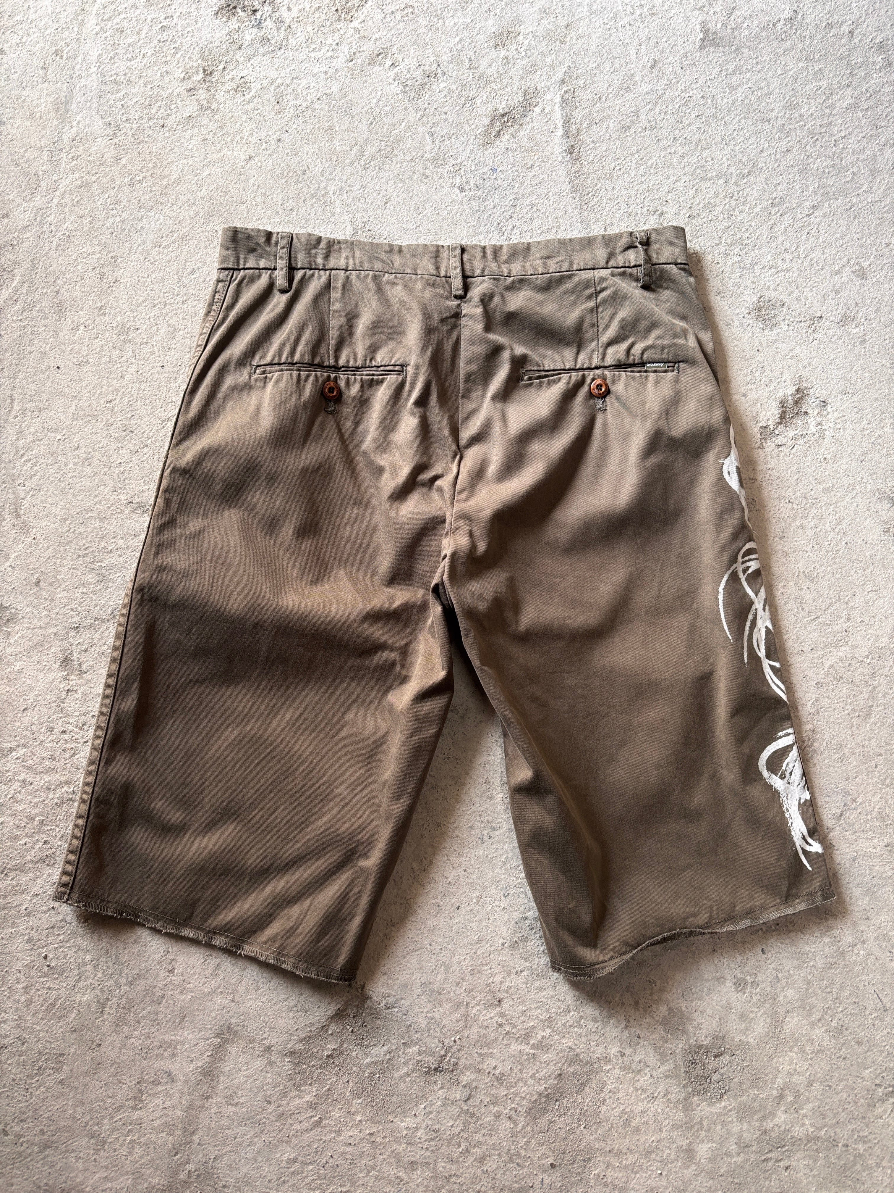 00〜10s STUSSY × FUTURA/Atomic print Shorts/W30/アトミックプリントショ-ツ/ショ-トパンツ/カ-キ/フュ-チュラコラボ/ステュ-シ-/古着/ア―カイブ