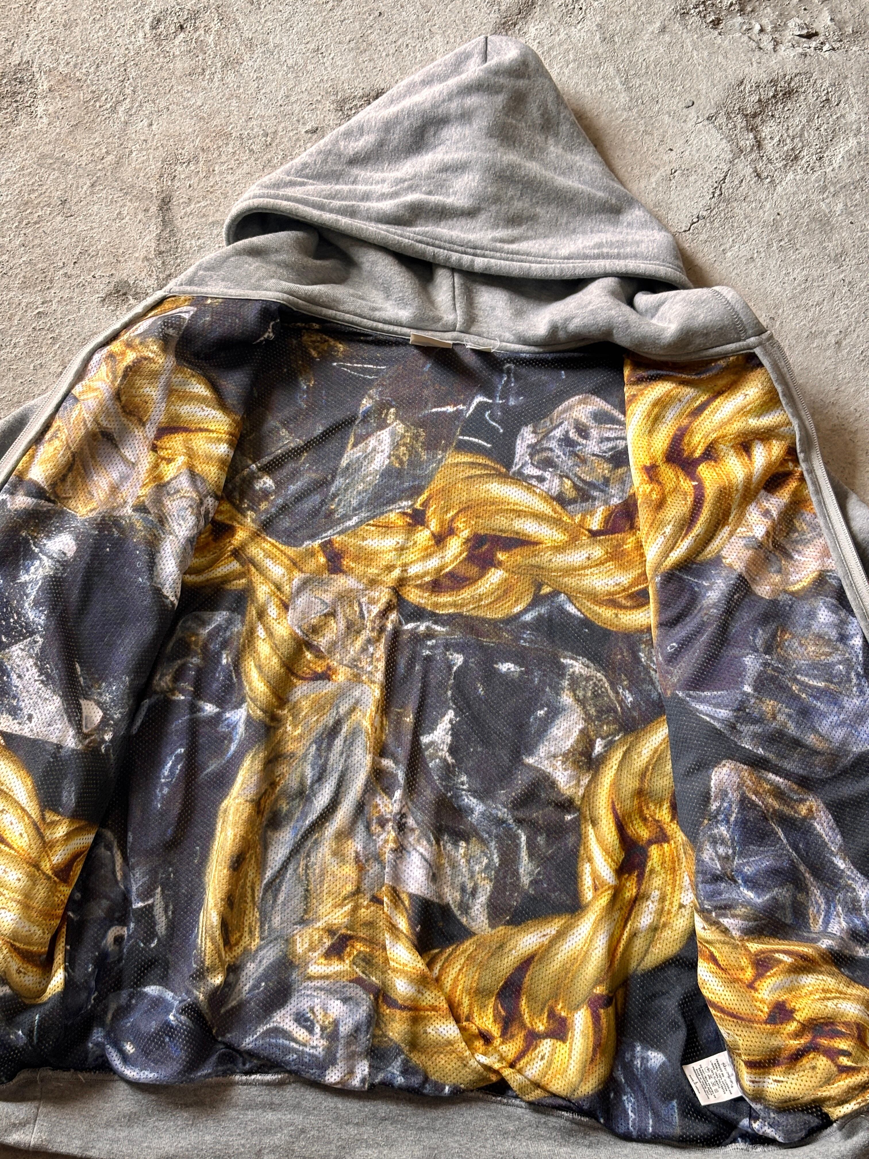 00~10s PHENOMENON/Blank zip Hoodie/L/ジップパ-カ-/フ-ディ-/チェ-ンプリント/グレ-/フェノメノン/古着/ア―カイブ