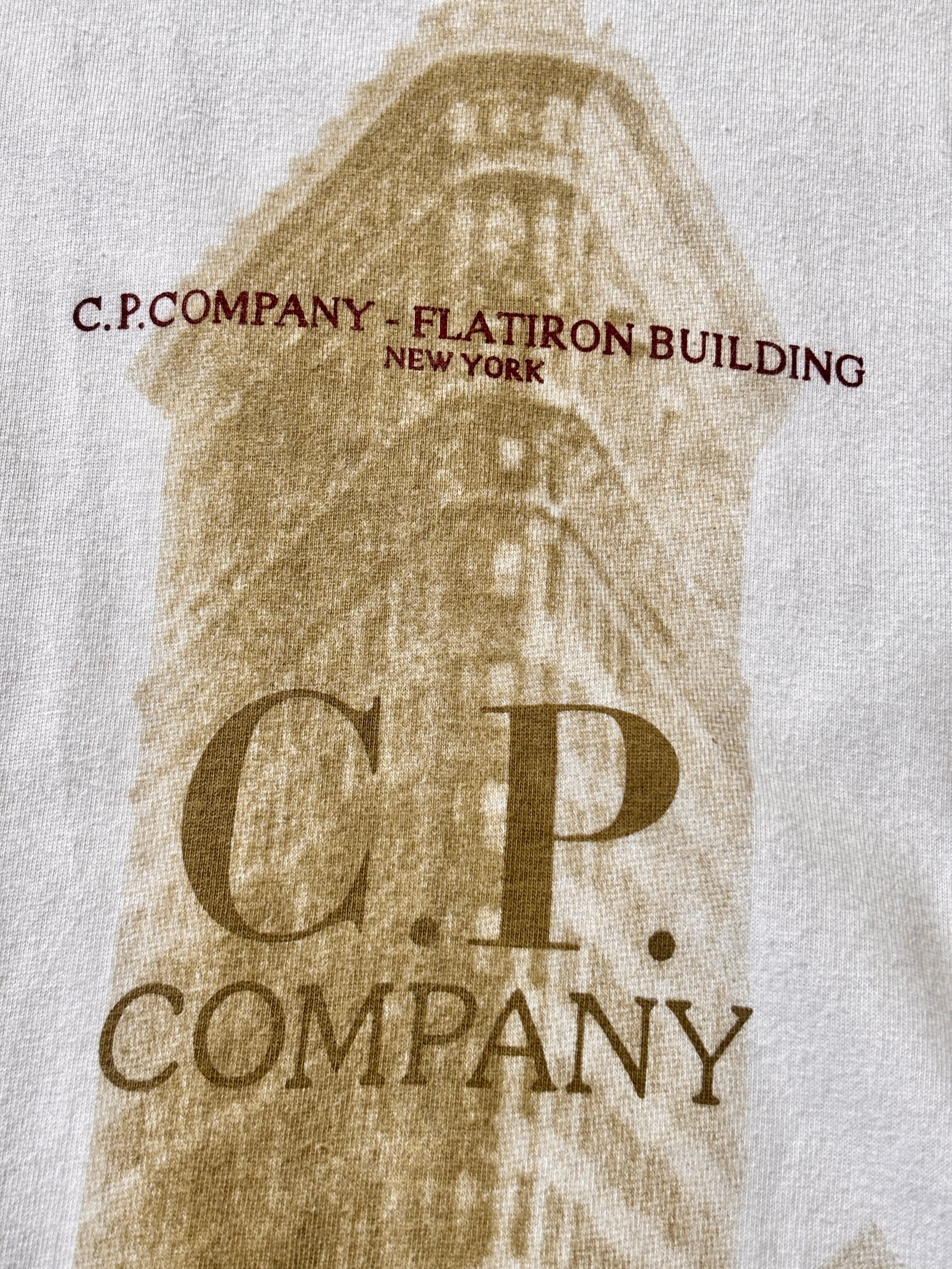 90s C.P.Company/Flatiron Building Tee/4/フラットアイアンビルディングプリントTシャツ/オ-バ-プリント/ロゴプリント/シ-ピ-カンパニ-/古着/ア―カイブ