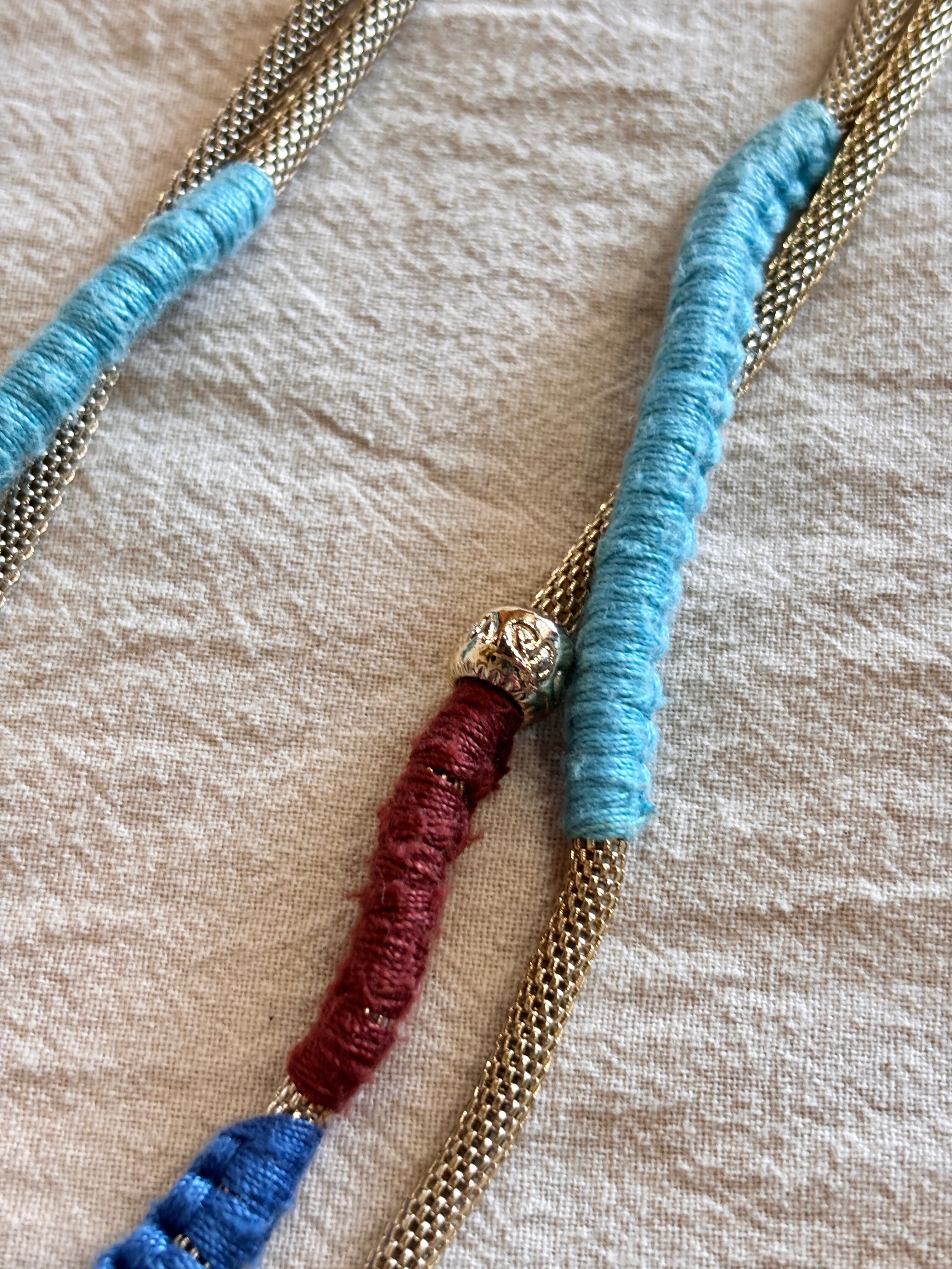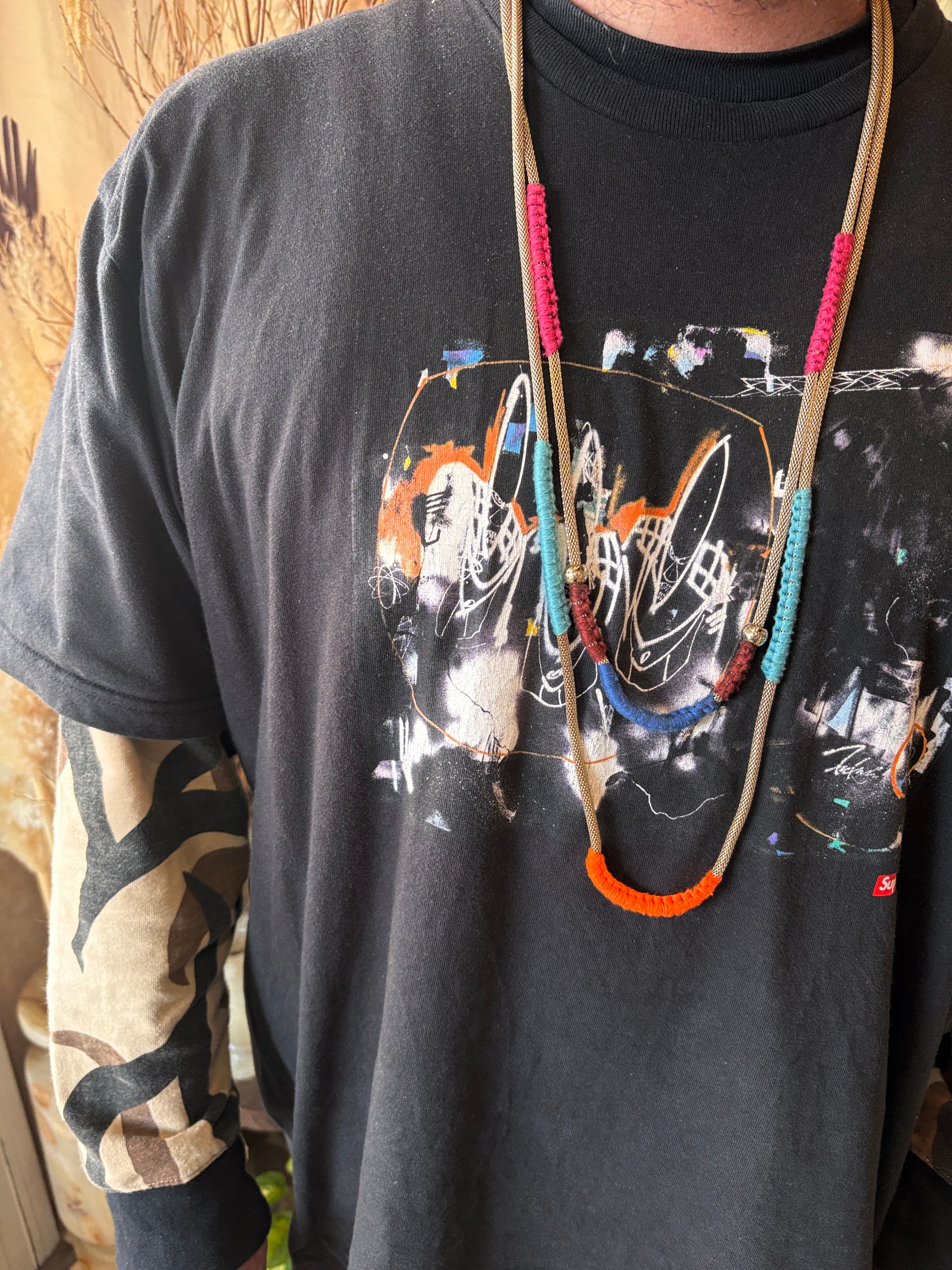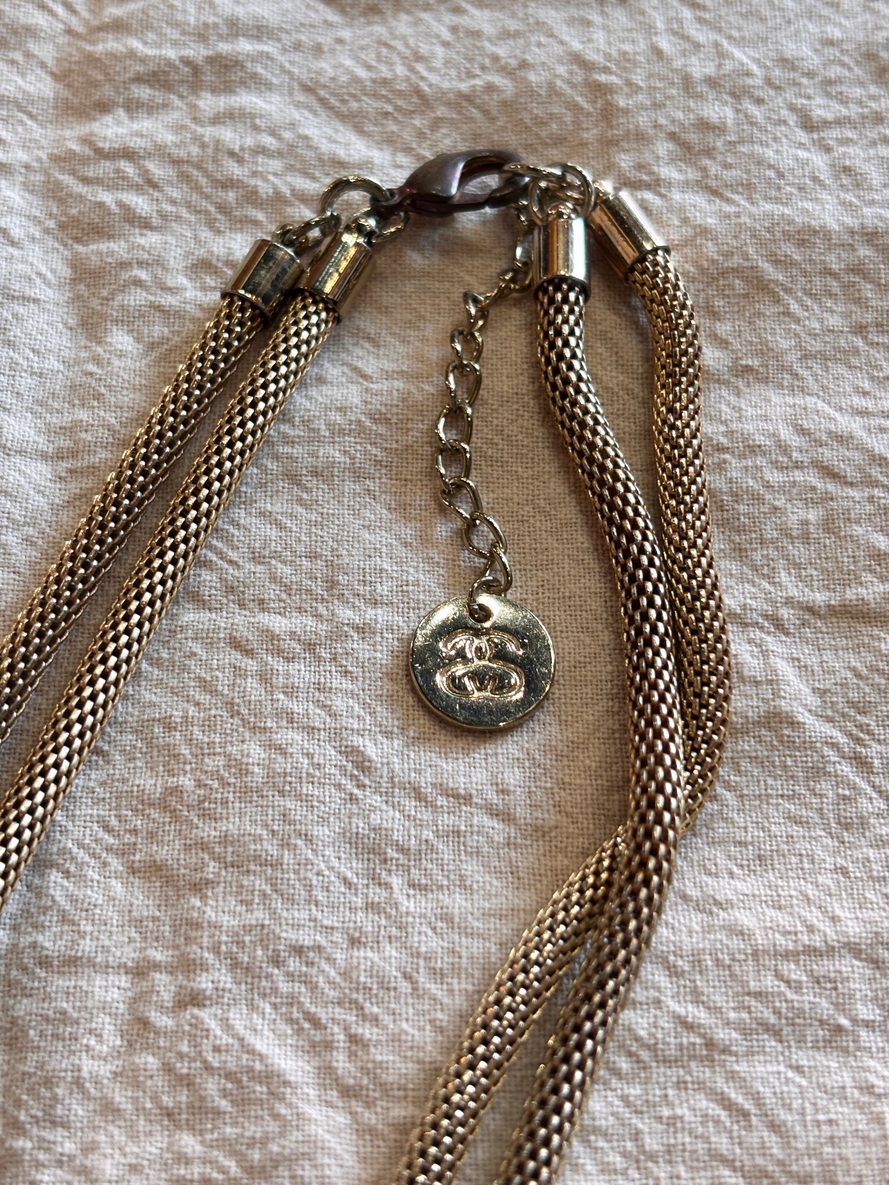 00~10s STUSSY/Necklace/ネックレス/編み込み/毛糸/ゴ-ルド/ロゴ刻印ビ-ズ/SSリンクロゴ/ステュ-シ-