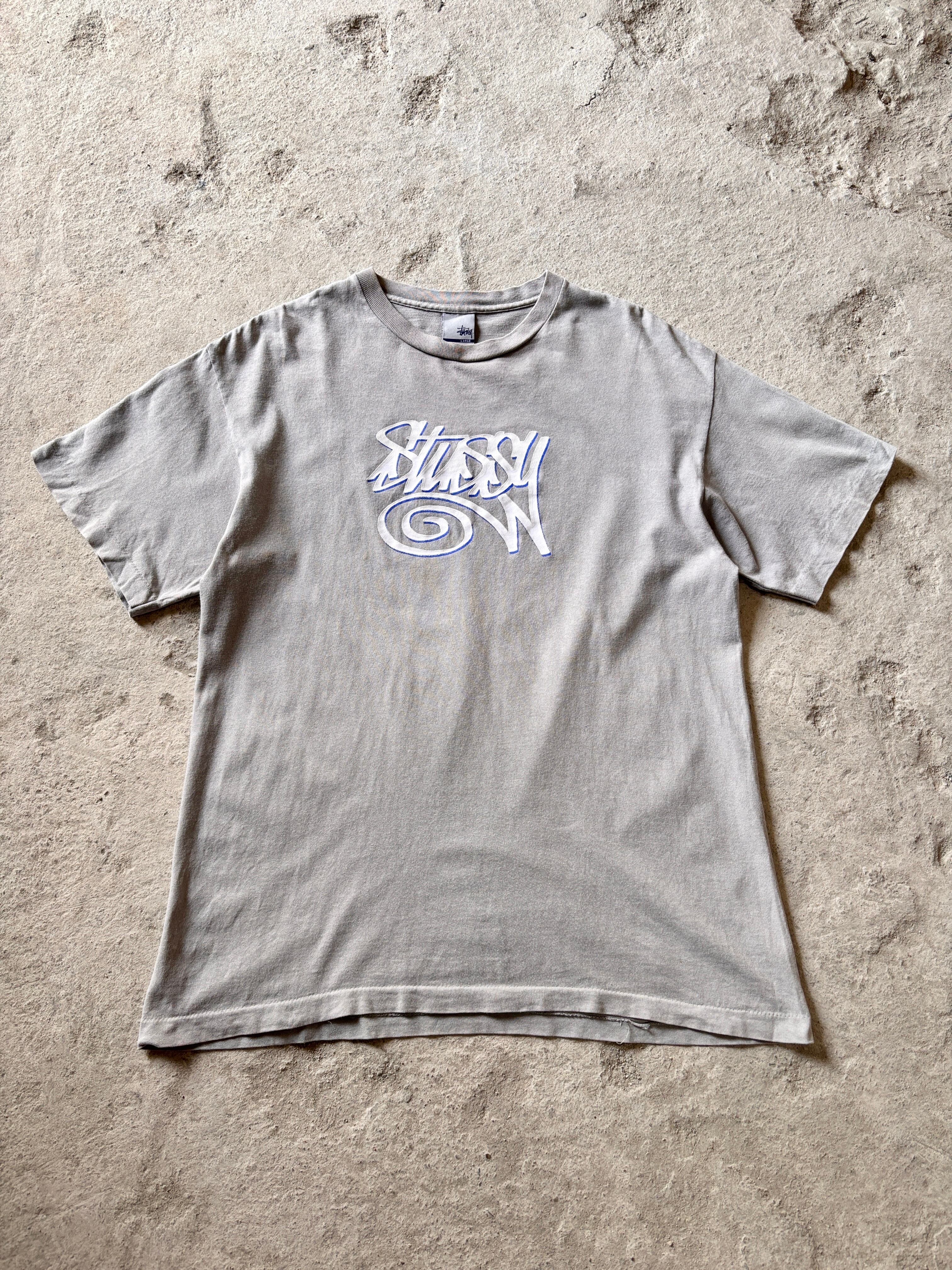 00s OLD STUSSY/Eric Haze Design Logo Tee/USA製/銀タグ/L/エリックヘイズコラボ/ロゴプリントTシャツ/グレ-/ステュ-シ-/オ-ルドステューシー/古着/ア―カイブ