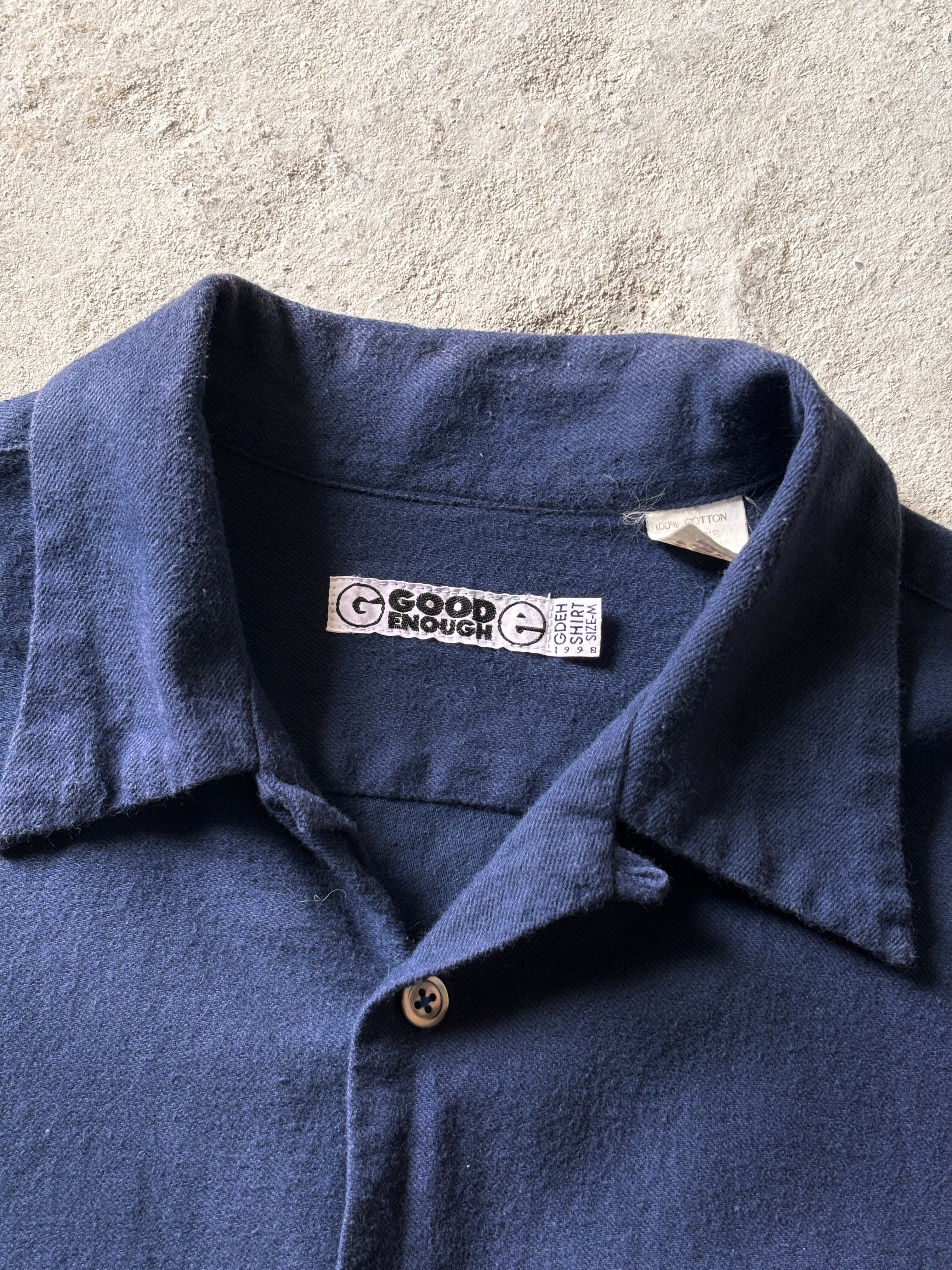 90s GOODENOUGH/Open collar Shirt/1998年製/L/オープンカラ-シャツ/長袖シャツ/赤耳/GDEH/ネイビ-/グッドイナフ