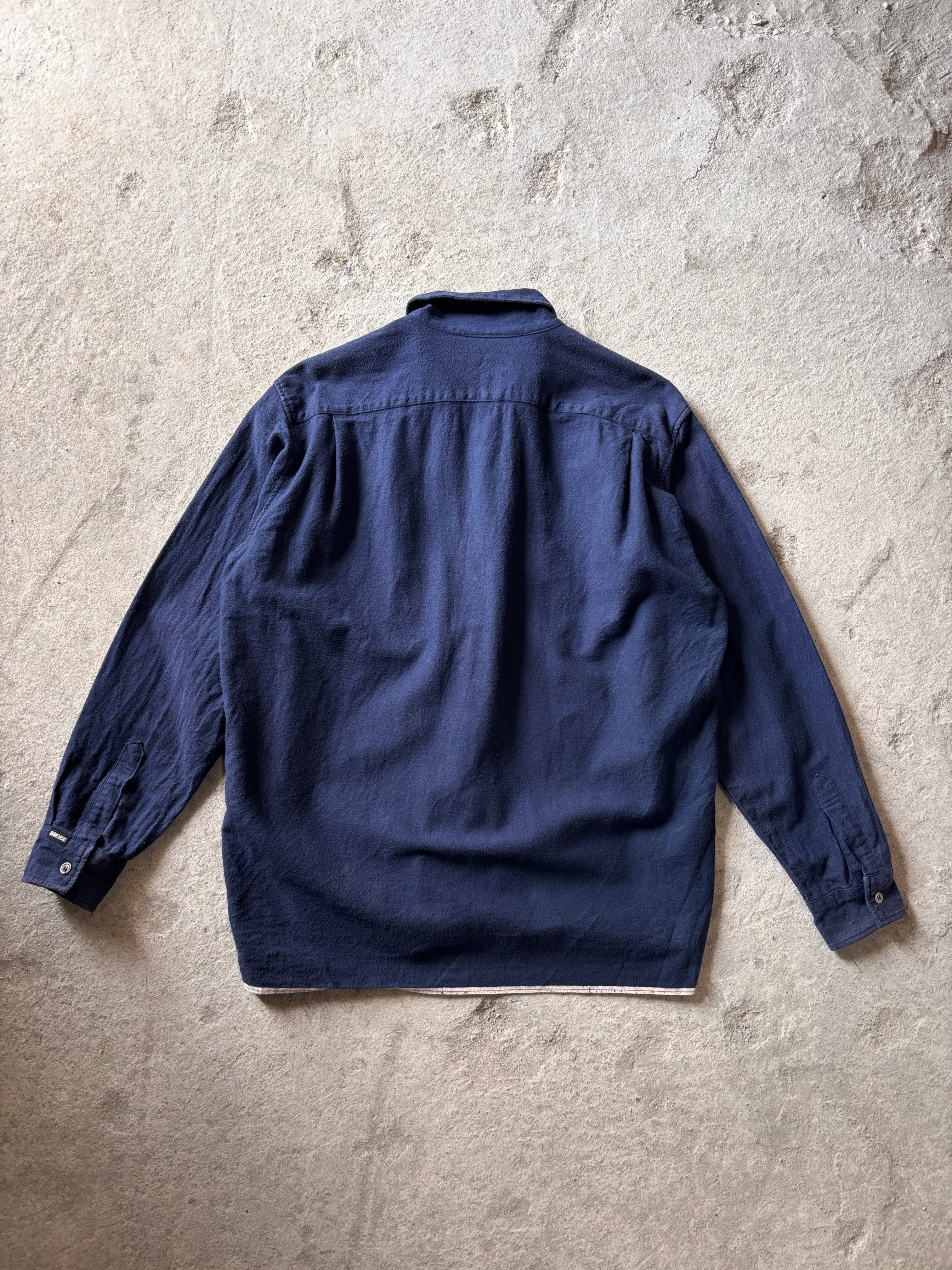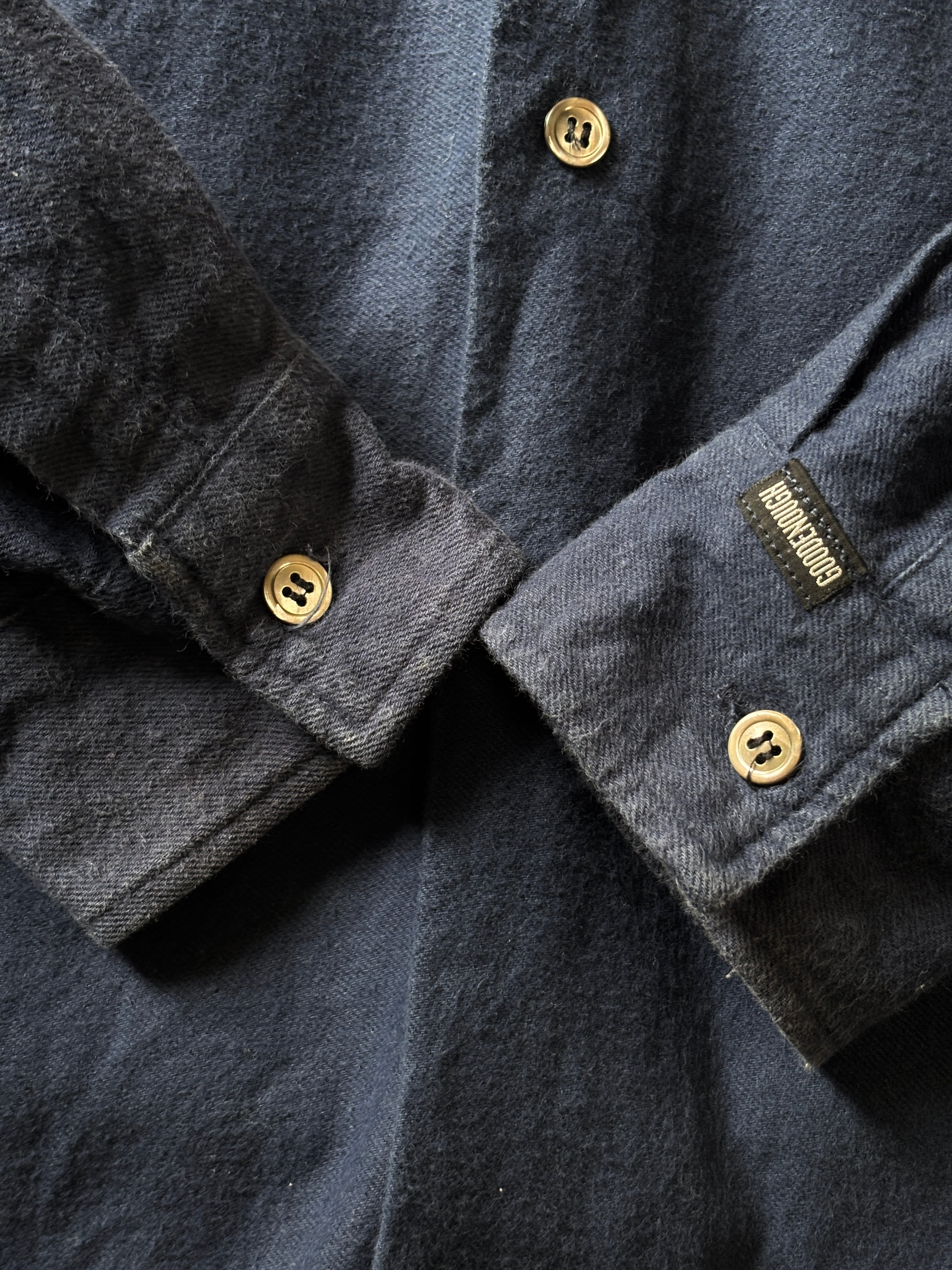 90s GOODENOUGH/Open collar Shirt/1998年製/L/オープンカラ-シャツ/長袖シャツ/赤耳/GDEH/ネイビ-/グッドイナフ/裏原/古着/ア―カイブ