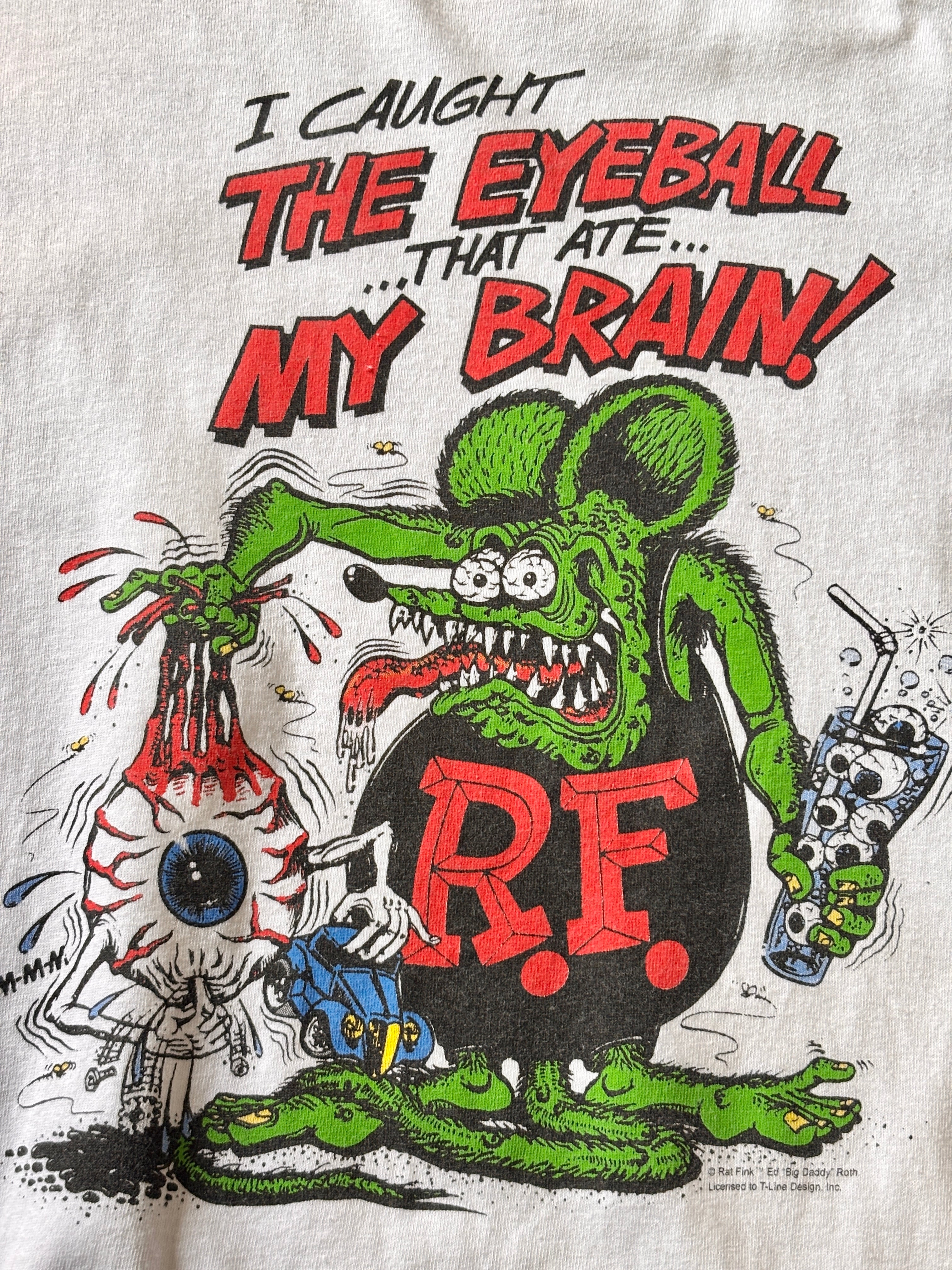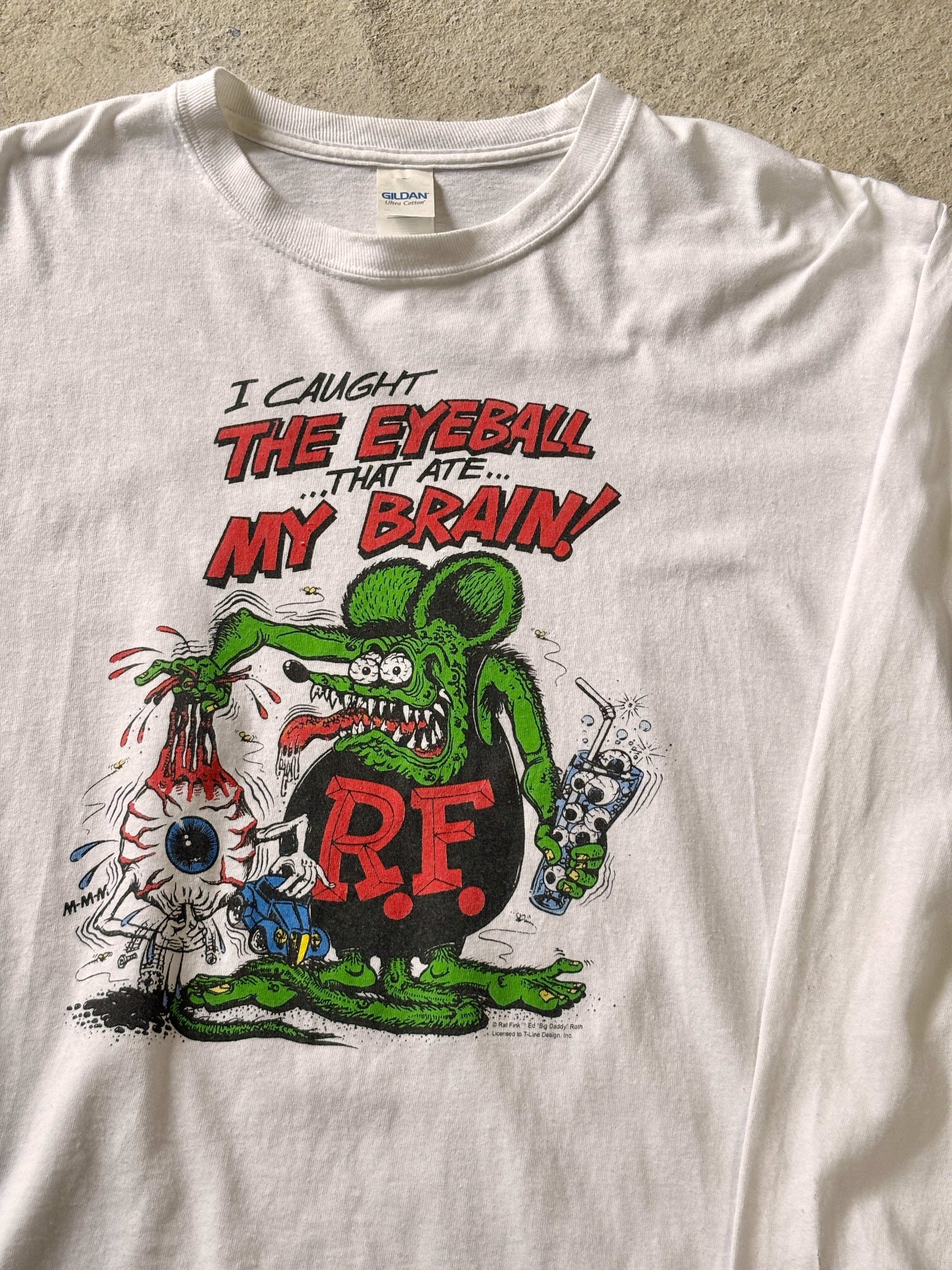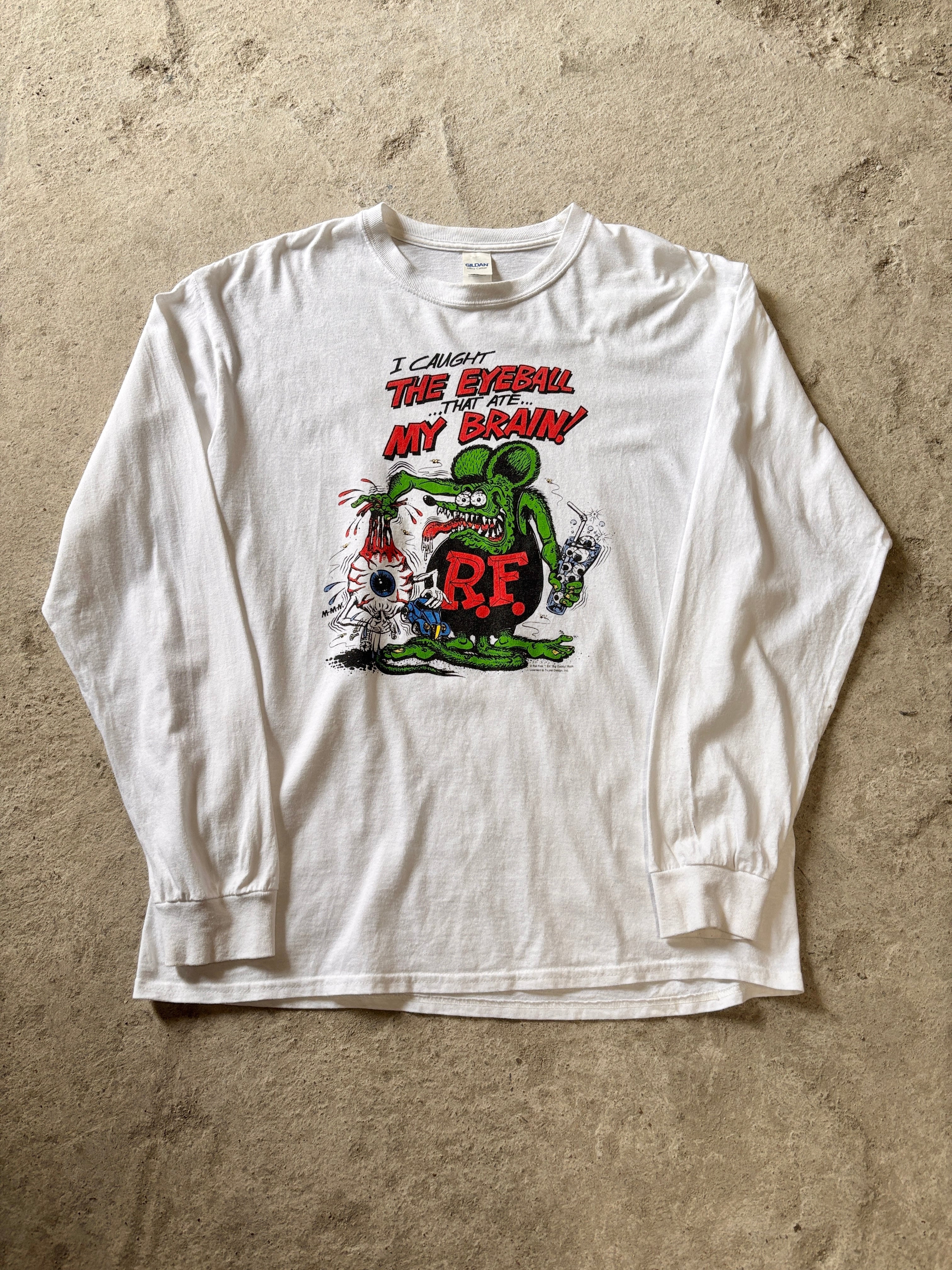 RAT FINK/THE EYEBALL print L/S Tee/L/キャラクタープリントロンT/長袖Tシャツ/ホワイト/ラットフィンク/古着