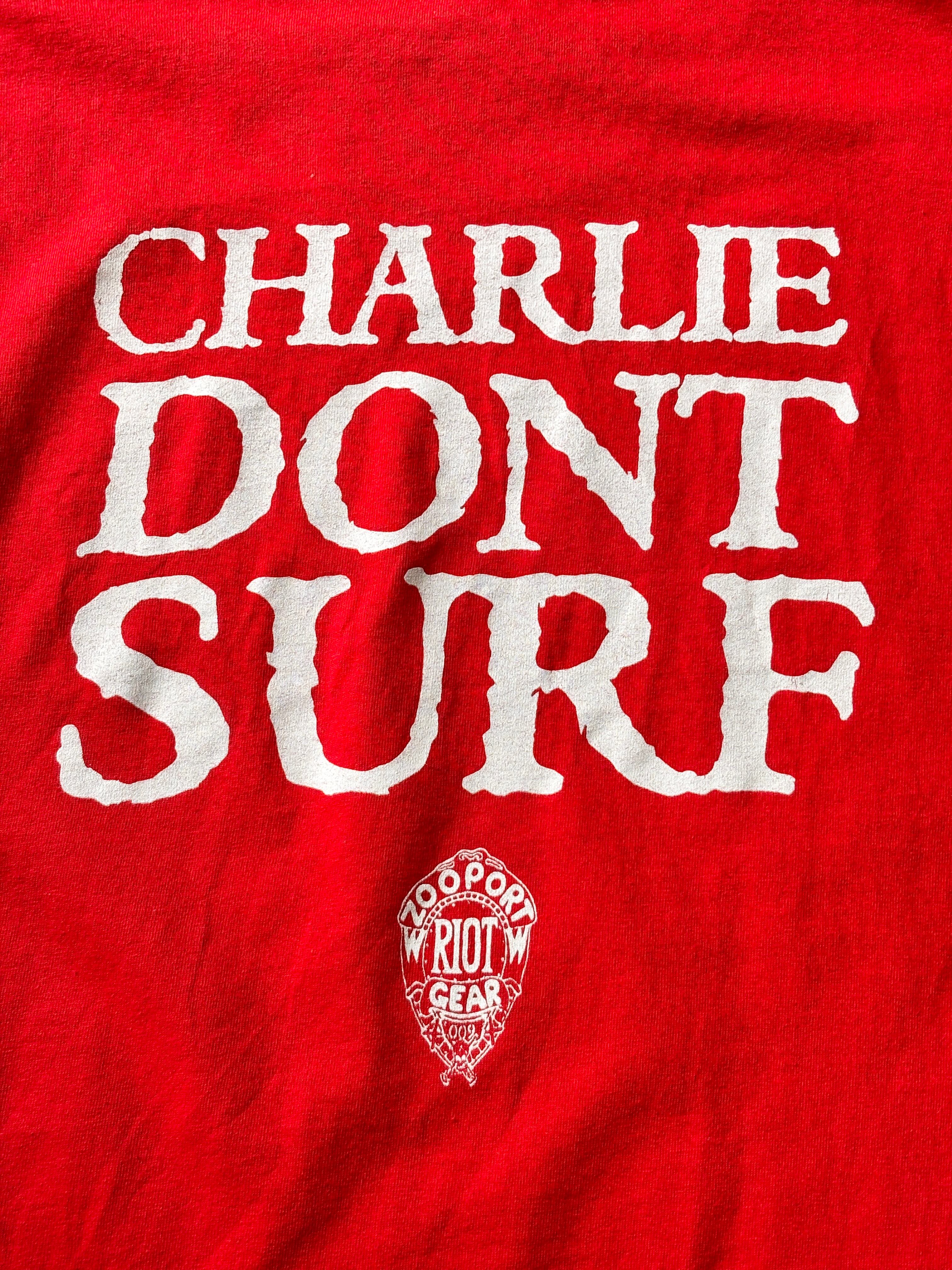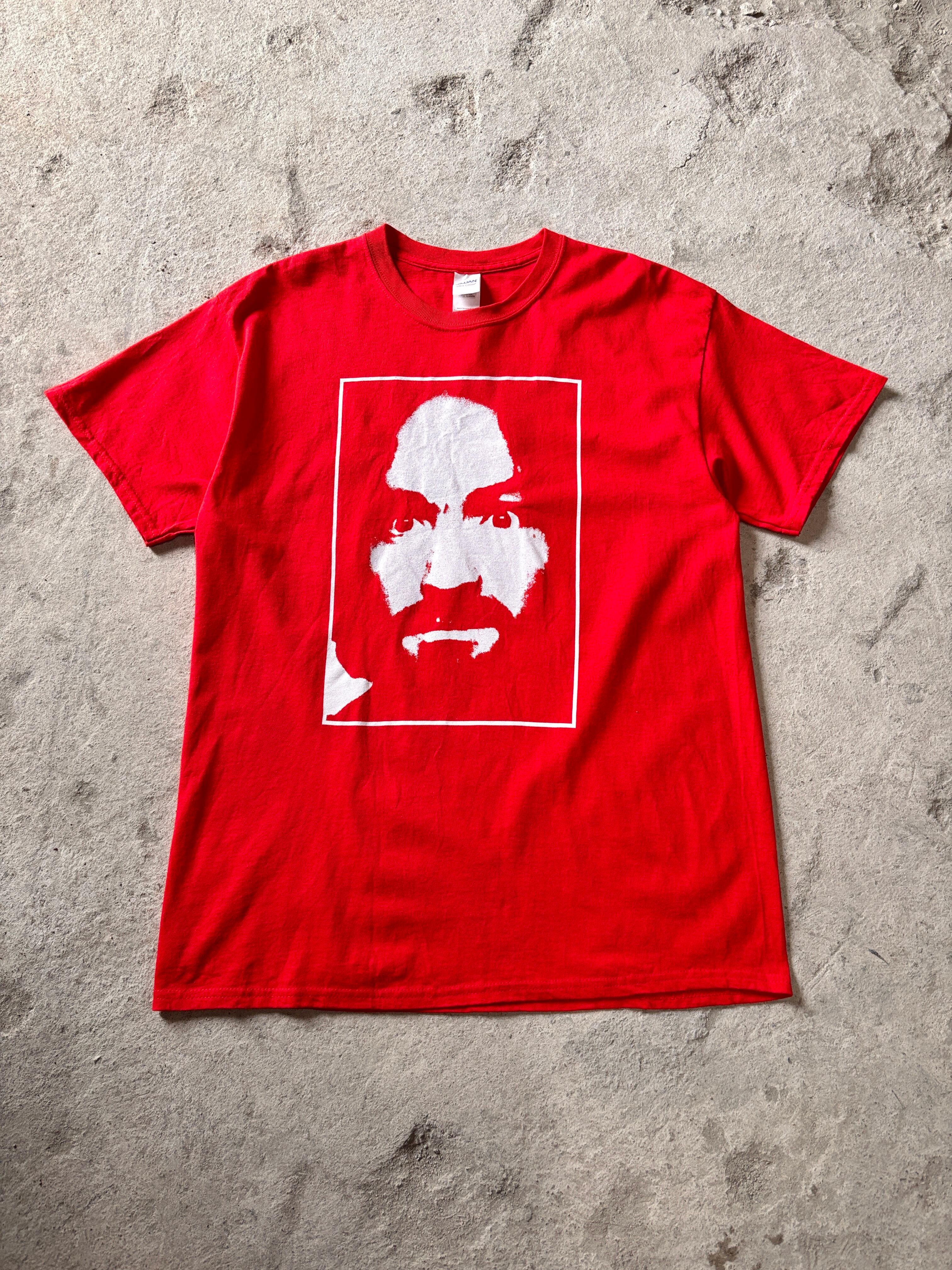 Charles manson Tee/L/GILDAN/チャ-ルズマンソンプリントTシャツ/CHARLIE DONT SURF/Zooport Riot Gear/レッド/古着