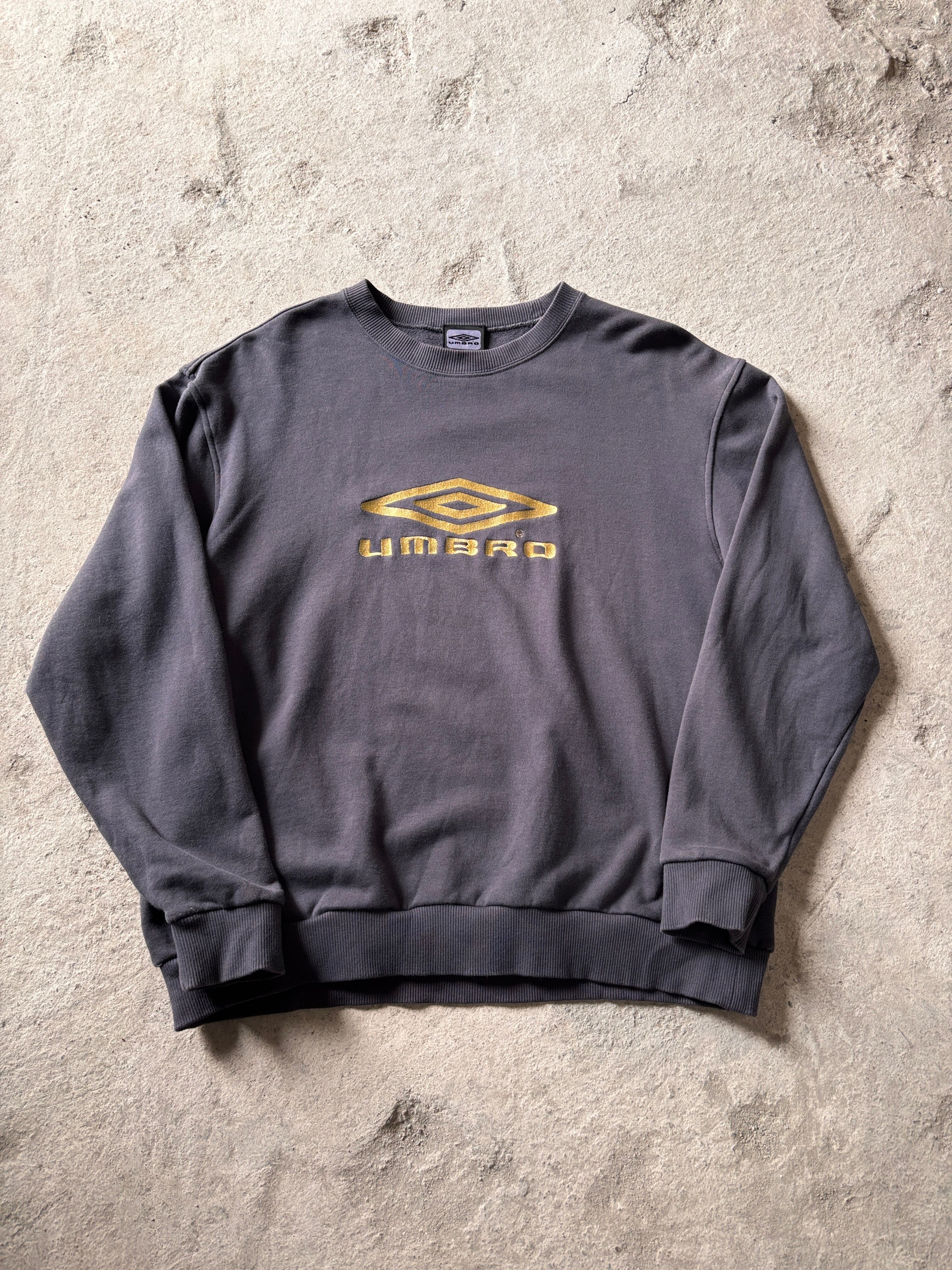 UMBRO/Logo embroidery Sweat/L/刺繍ロゴスウェット/デサント/グレ-/ゴ-ルド/アンブロ/古着