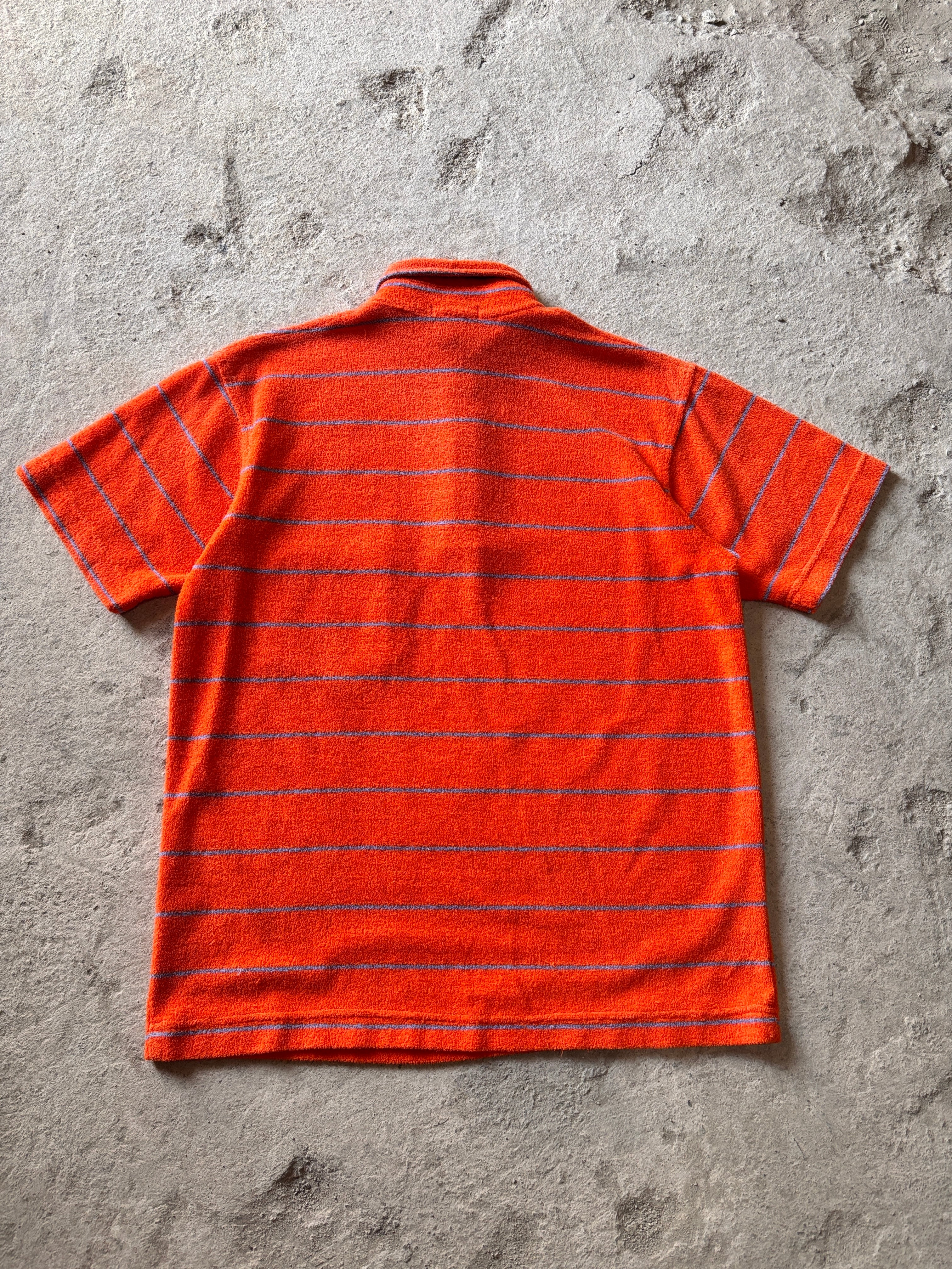 90~00s OLD STUSSY/Logo embroidery Polo Shirt/USA製/紺タグ/S (M相当)/刺繍ロゴポロシャツ/ボ-ダ-/パイル地/オレンジ/ステュ-シ-/オ-ルドステューシー