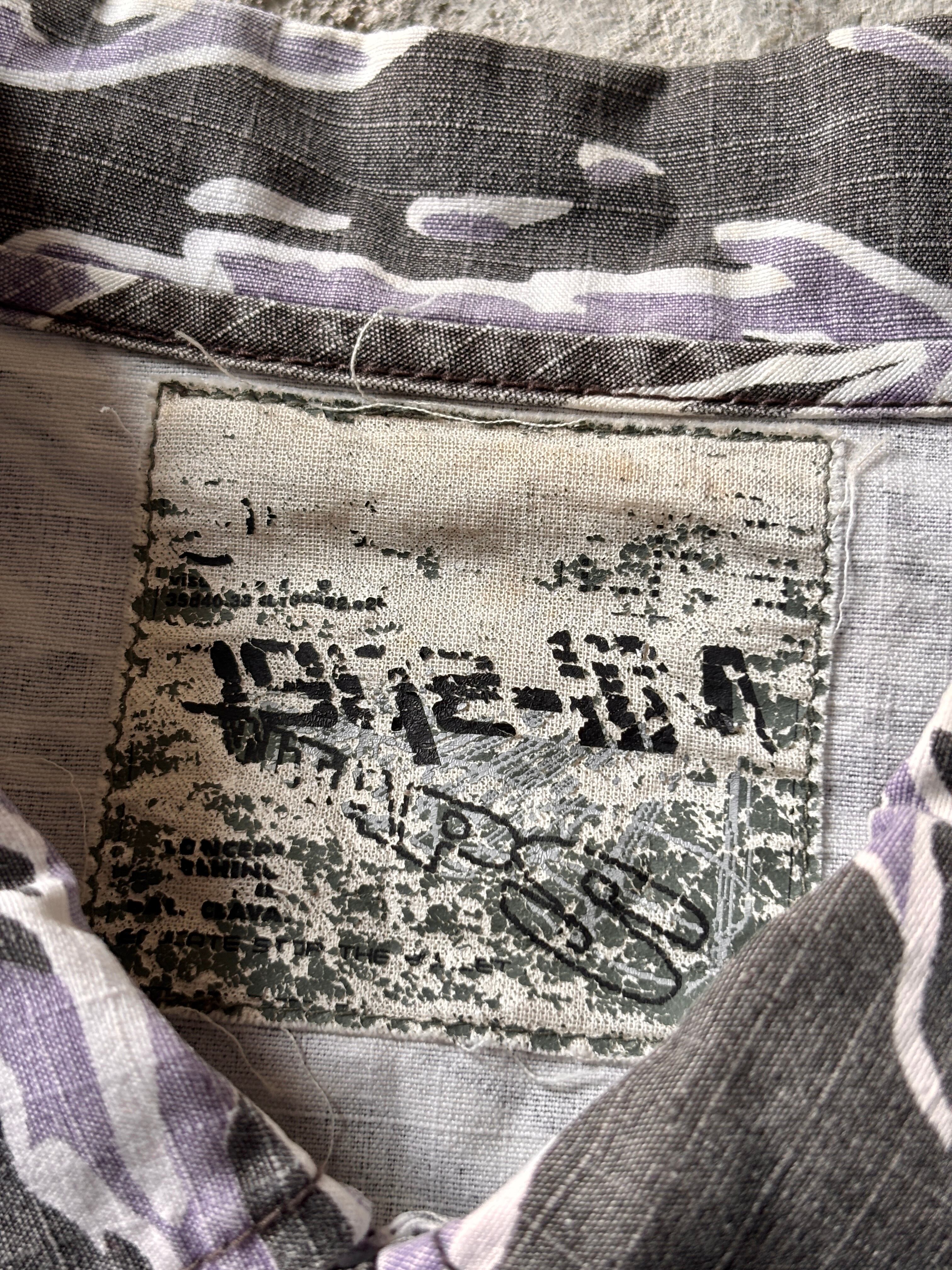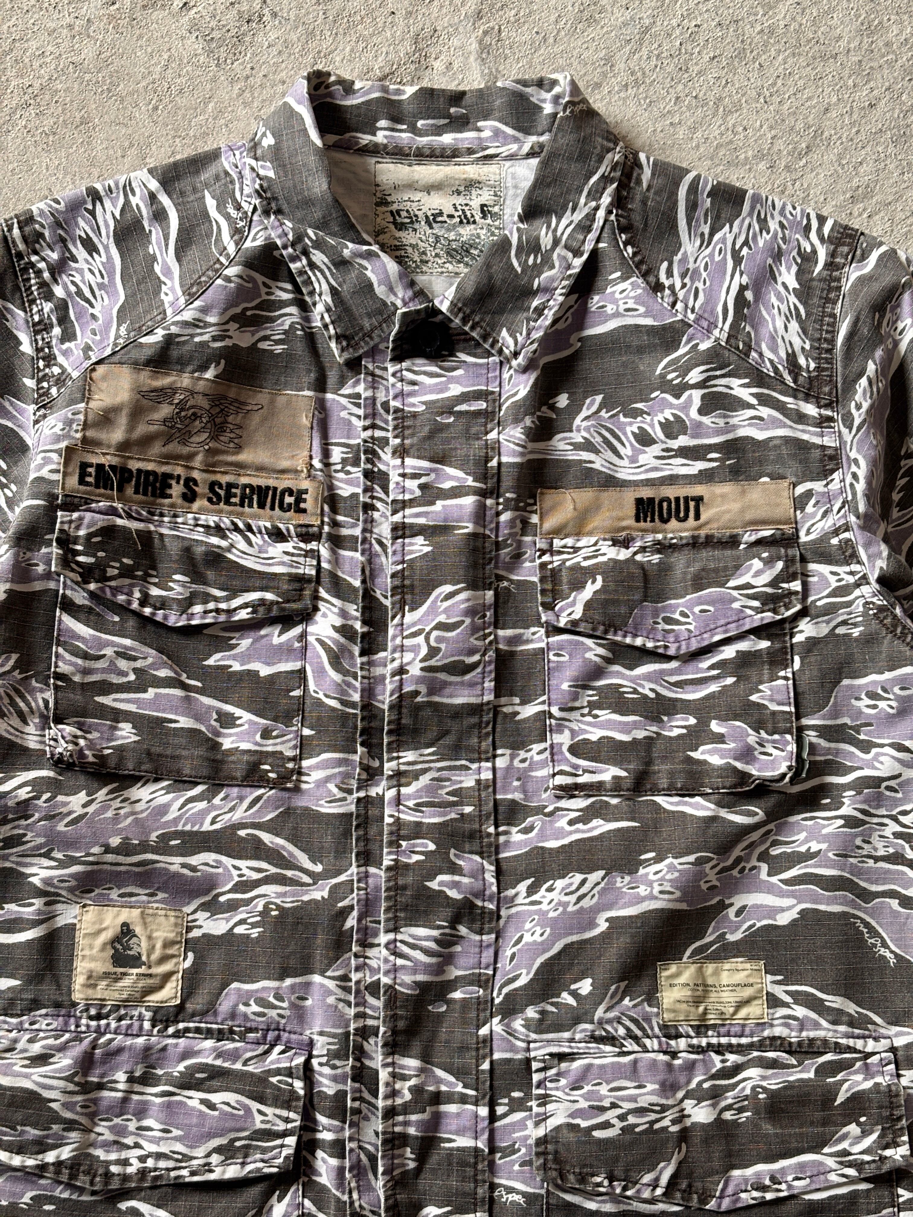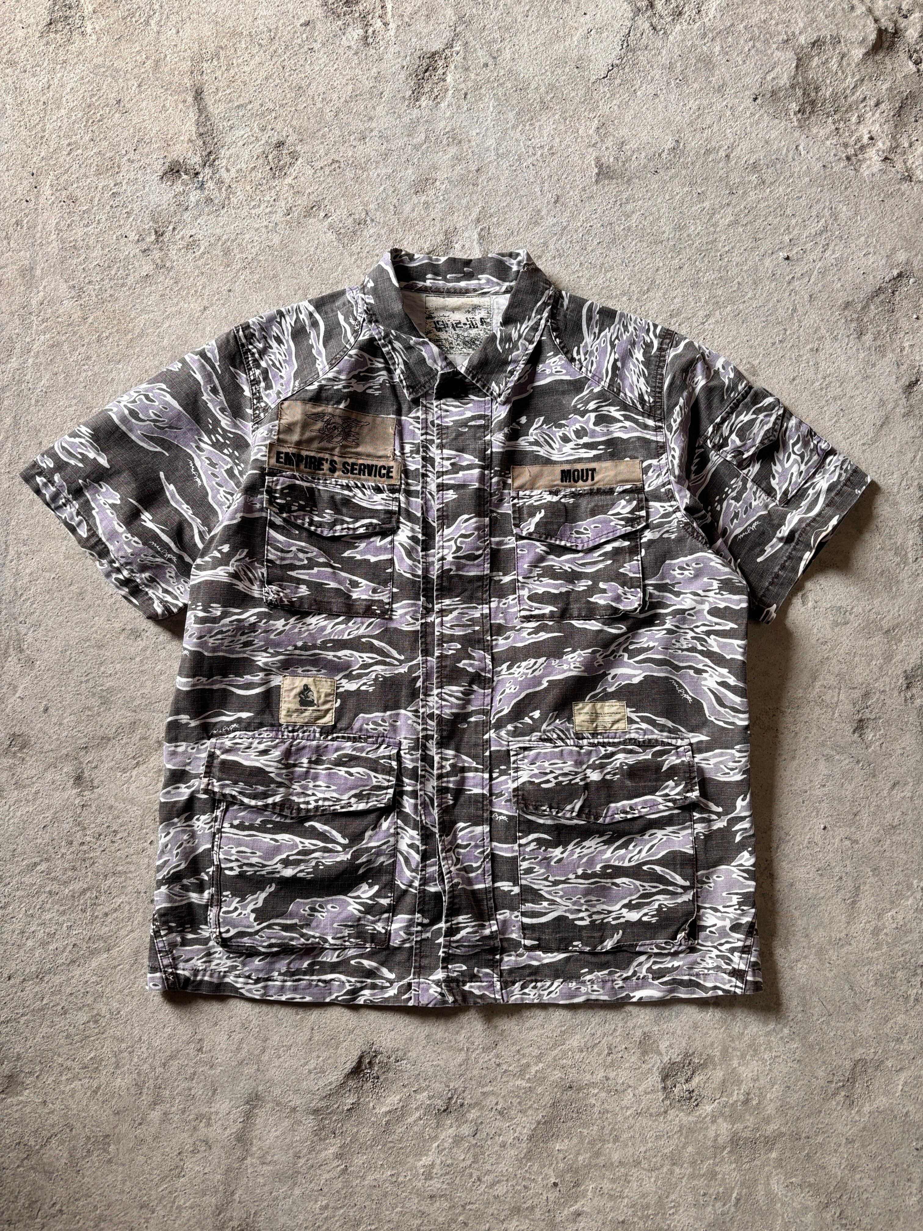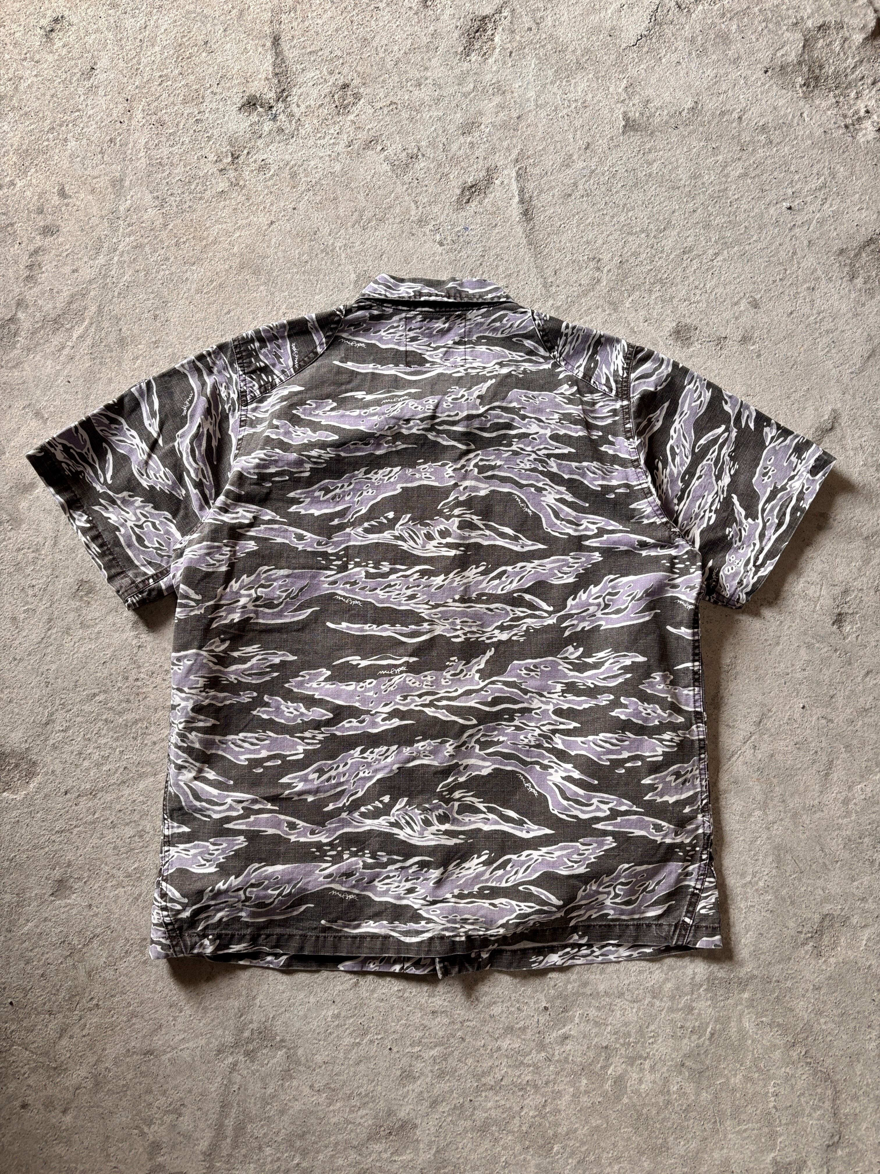 00s WTAPS/Tiger camo Military S/S Shirt/L相当/タイガ-カモ/ミリタリ-シャツ/半袖シャツ/カモフラ/ブラック/パ-プル/ダブルタップス/裏原/古着/ア―カイブ