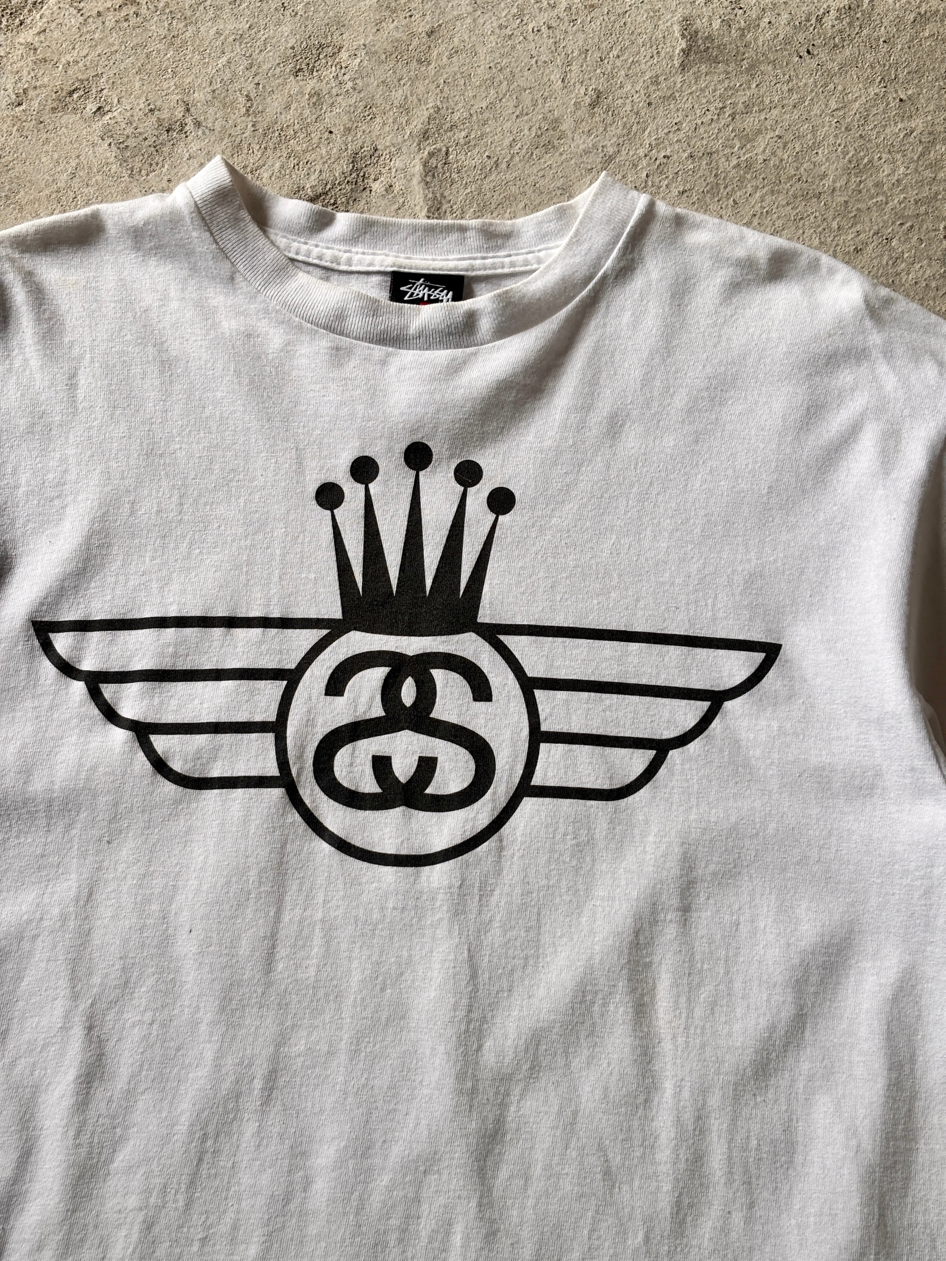 00~10s STUSSY/Crown Wing Logo Tee/L/クラウンウイングロゴプリントTシャツ/SSリンクロゴ/NYLTLA/ホワイト/ステューシー