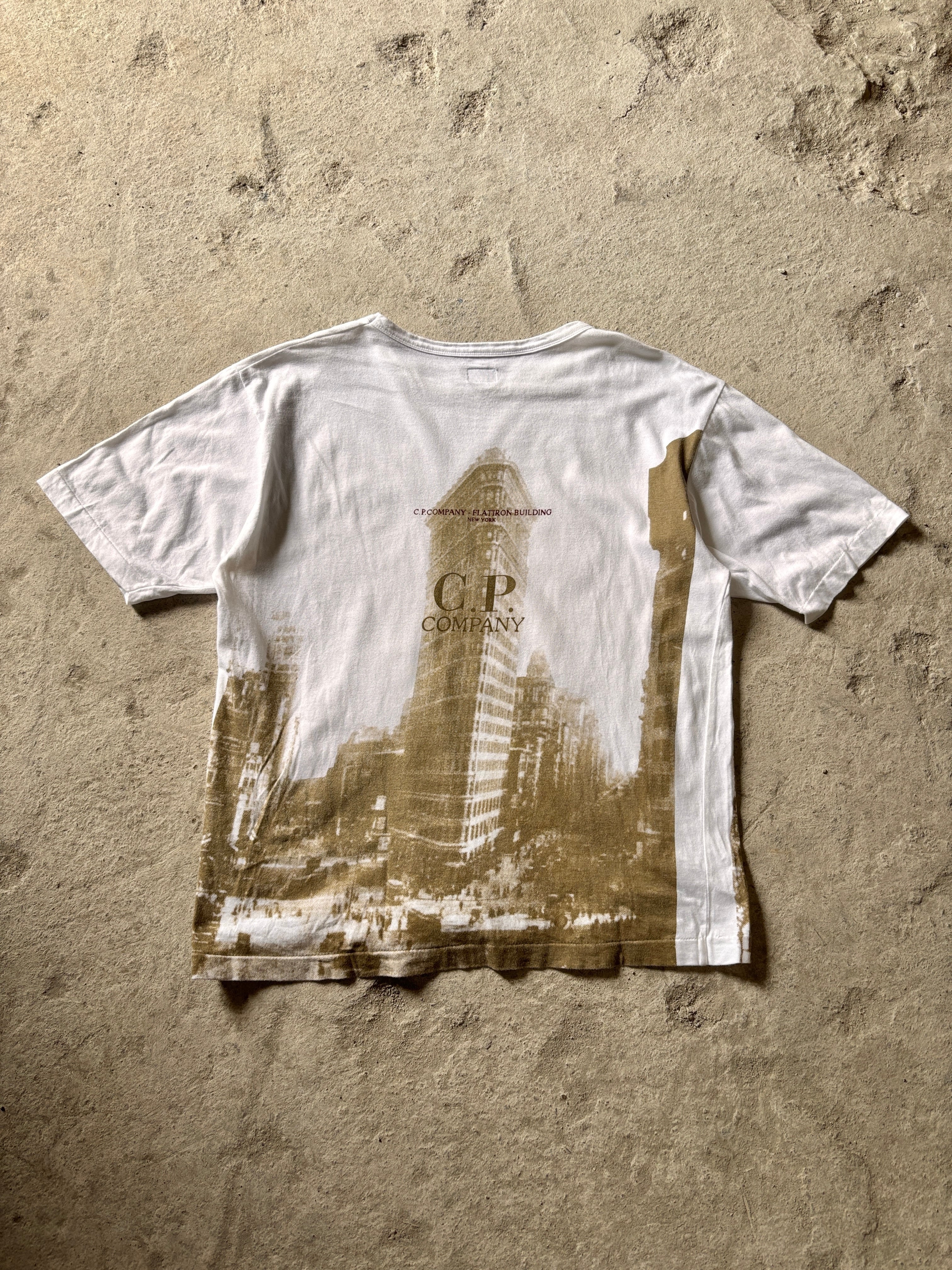 90s C.P.Company/Flatiron Building Tee/4/フラットアイアンビルディングプリントTシャツ/オ-バ-プリント/ロゴプリント/シ-ピ-カンパニ-/古着/ア―カイブ