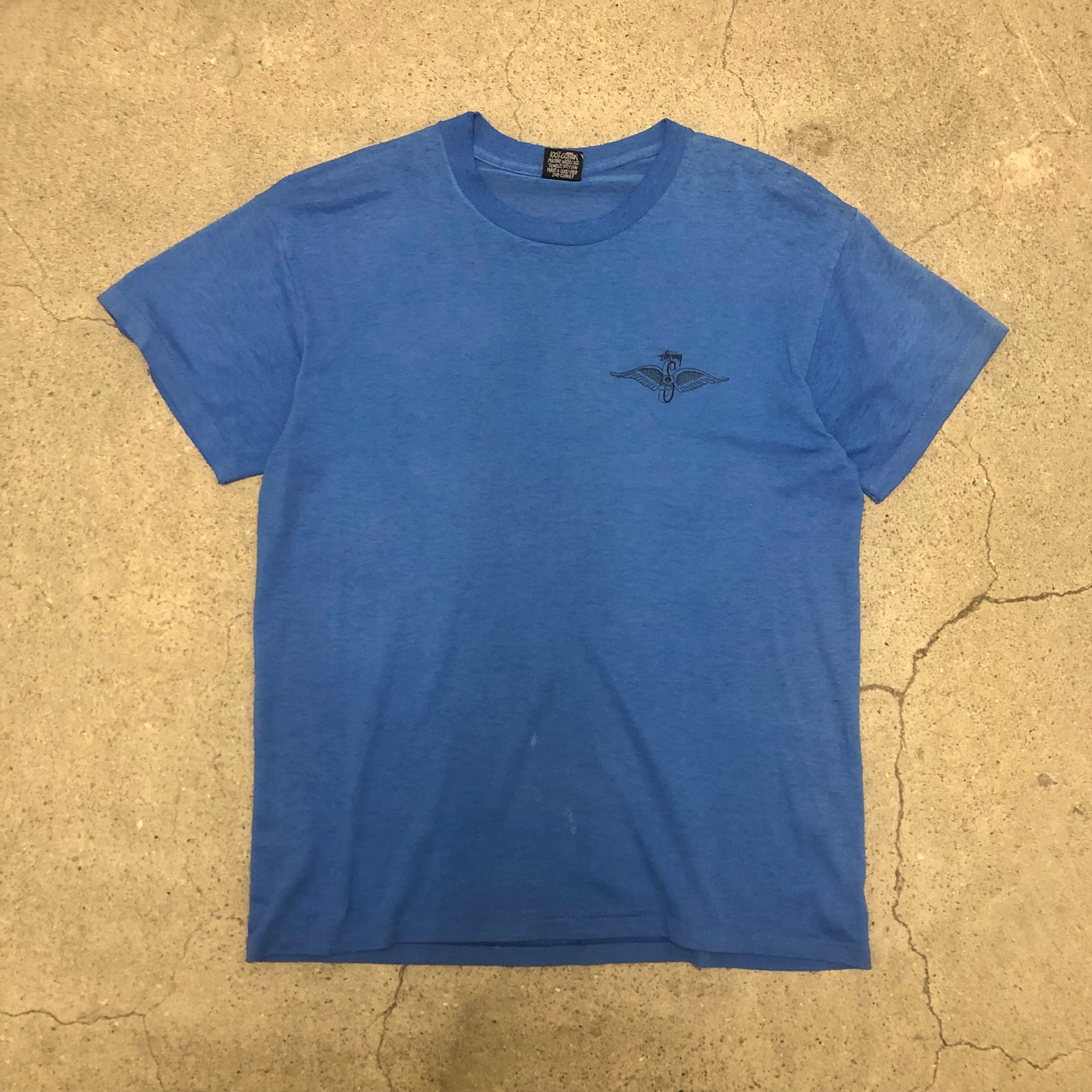 80s OLD STUSSY/Skull wing tee/USA製/黒タグ/M/スカルウイング/Tシャツ/ブルー/ステューシー/オールドステューシー/古着/ヴィンテージ