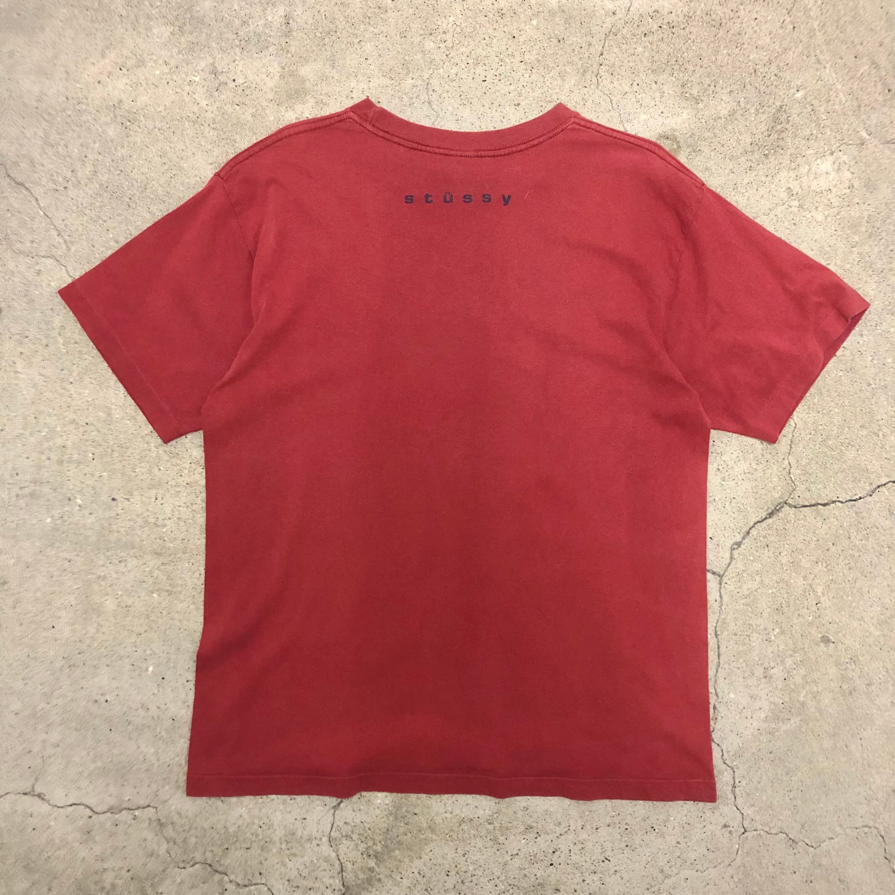 90s OLD STUSSY/SS ring Logo Tee/USA製/L/SSリングロゴ/Tシャツ/レッド/ステューシ/オールドステューシー/古着/ヴィンテージ