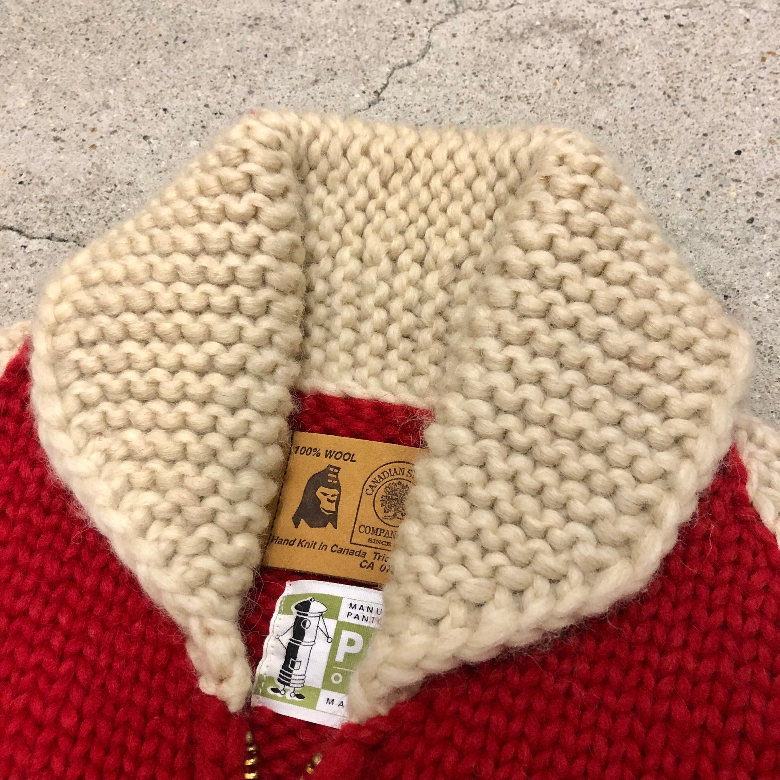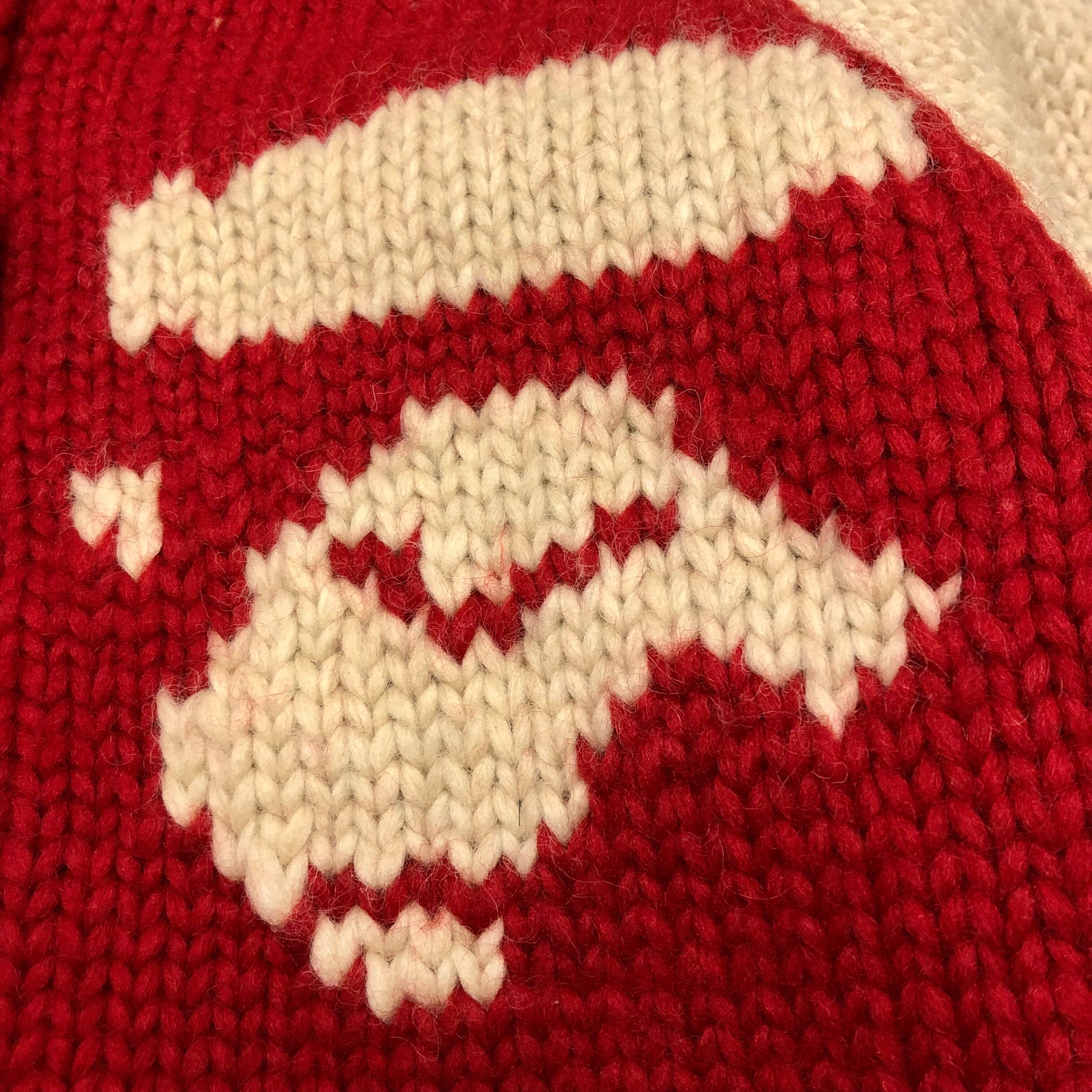 90~00s A BATHING APE/×POST OVERALLS×CANADIANSWEATER/Cowichan cardigan/Free/カウチンカーディガン/レッド/クリーム/アベイシングエイプ/ポストオーバーオールズ/カナディアンセーター/古着/裏原/裏原宿/アーカイブ