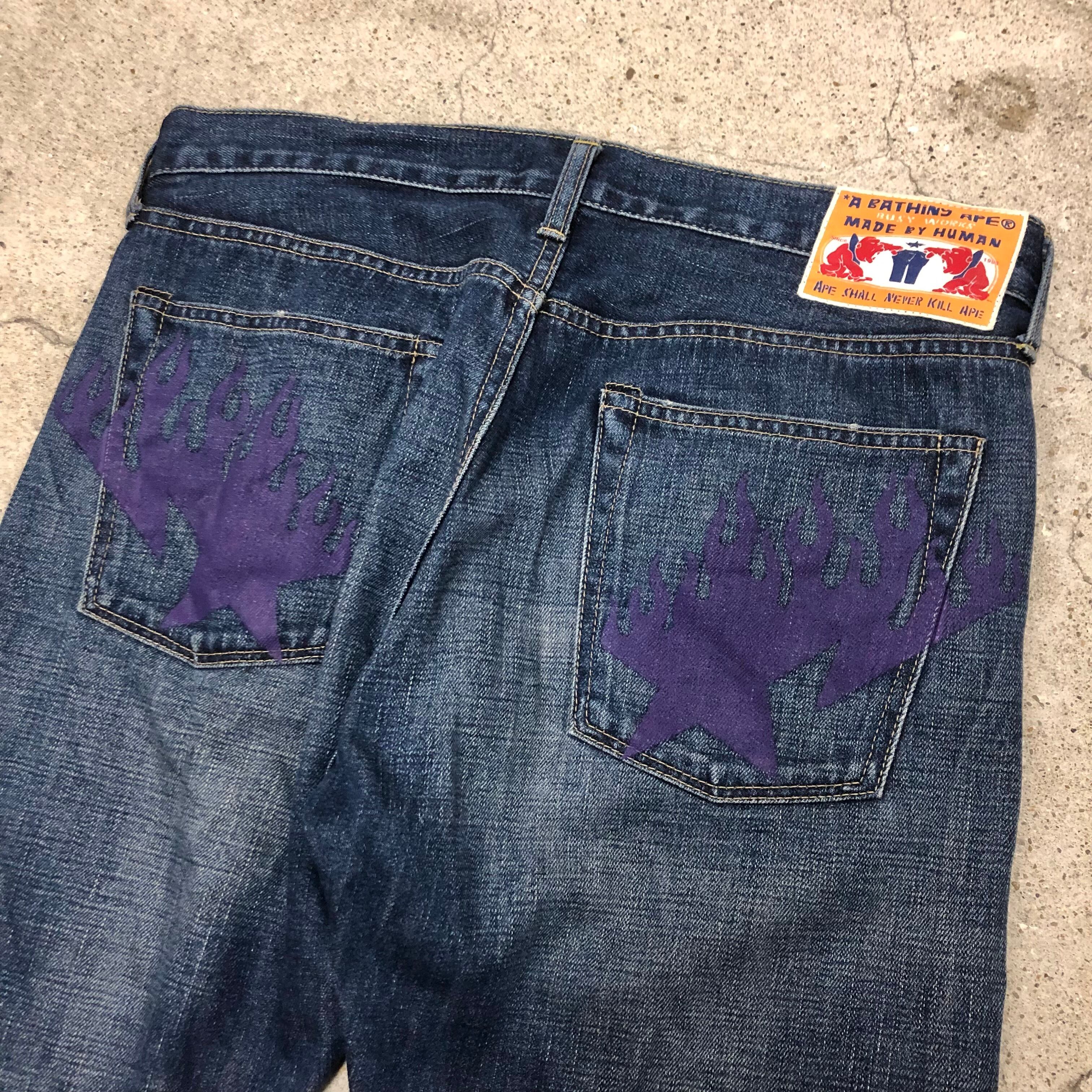 A BATHING APE/BAPESTA print/Denim pants/S/ベイプスタプリント/デニムパンツ/インディゴ/アベイシングエイプ