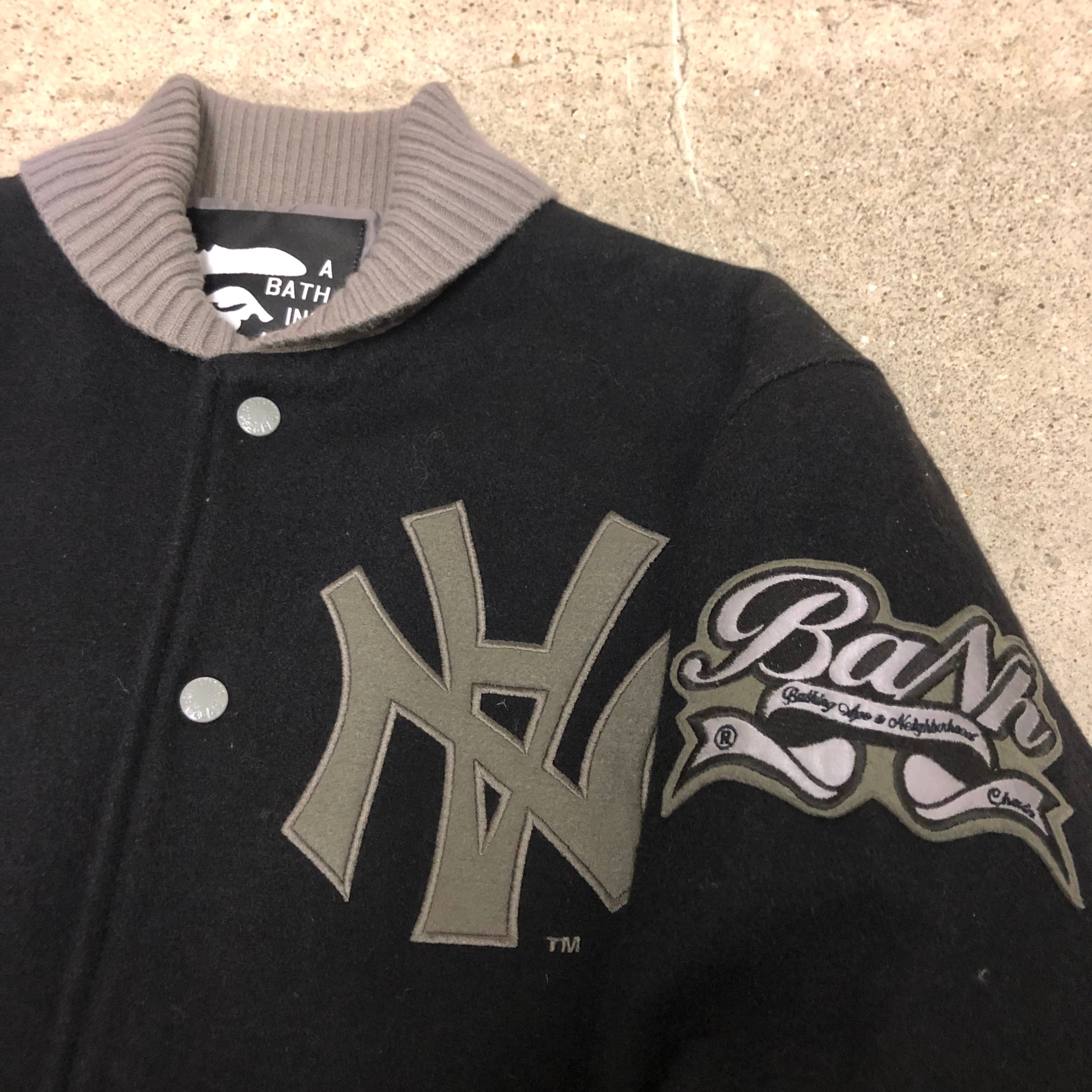 00s A BATHING APE×neighborhood/brother hood stadium jacket/M/初期タグ/ウールスタジャン/ブラック/アベイシングエイプ/ネイバーフッド/コラボアイテム/ブラザーフッド/裏原/裏原宿
