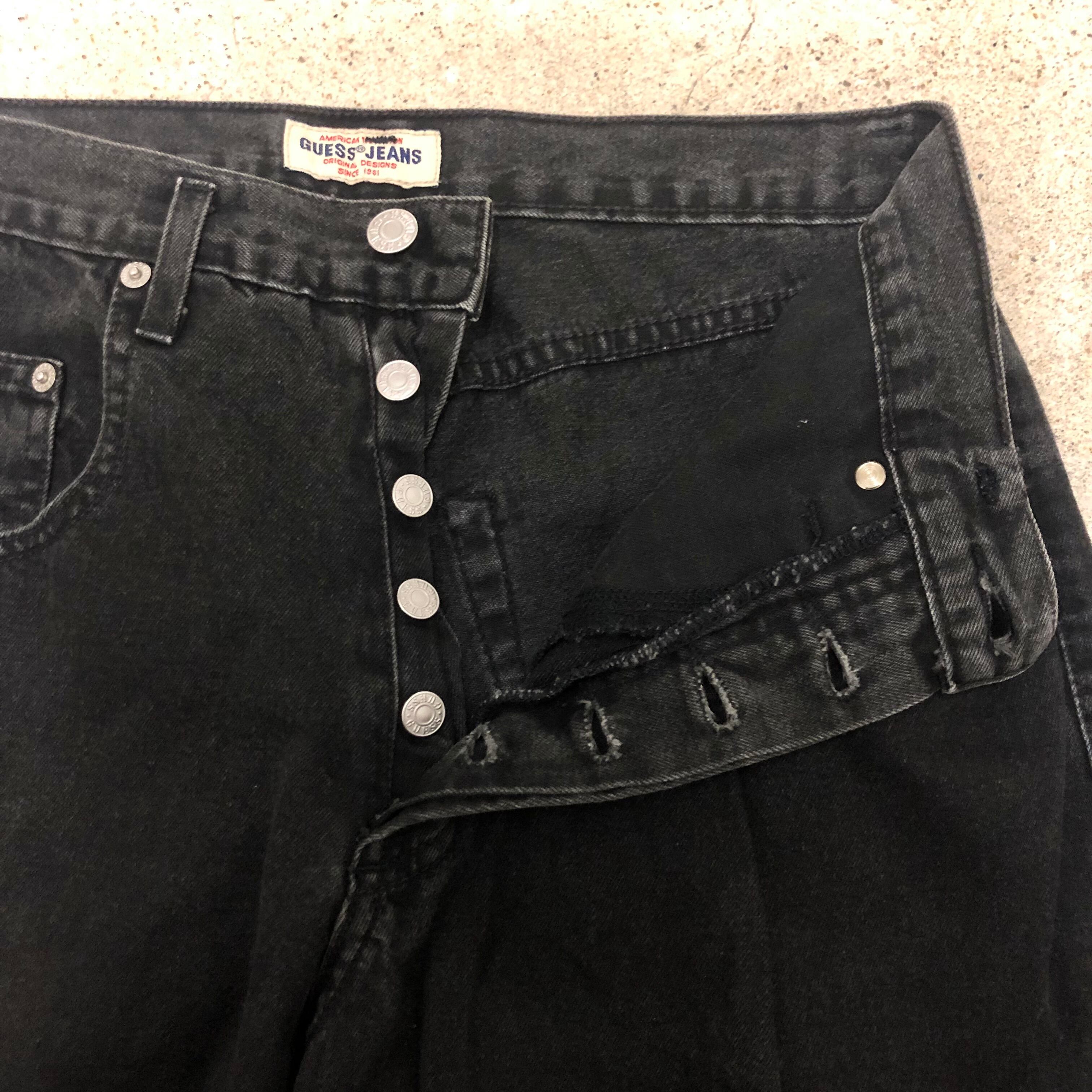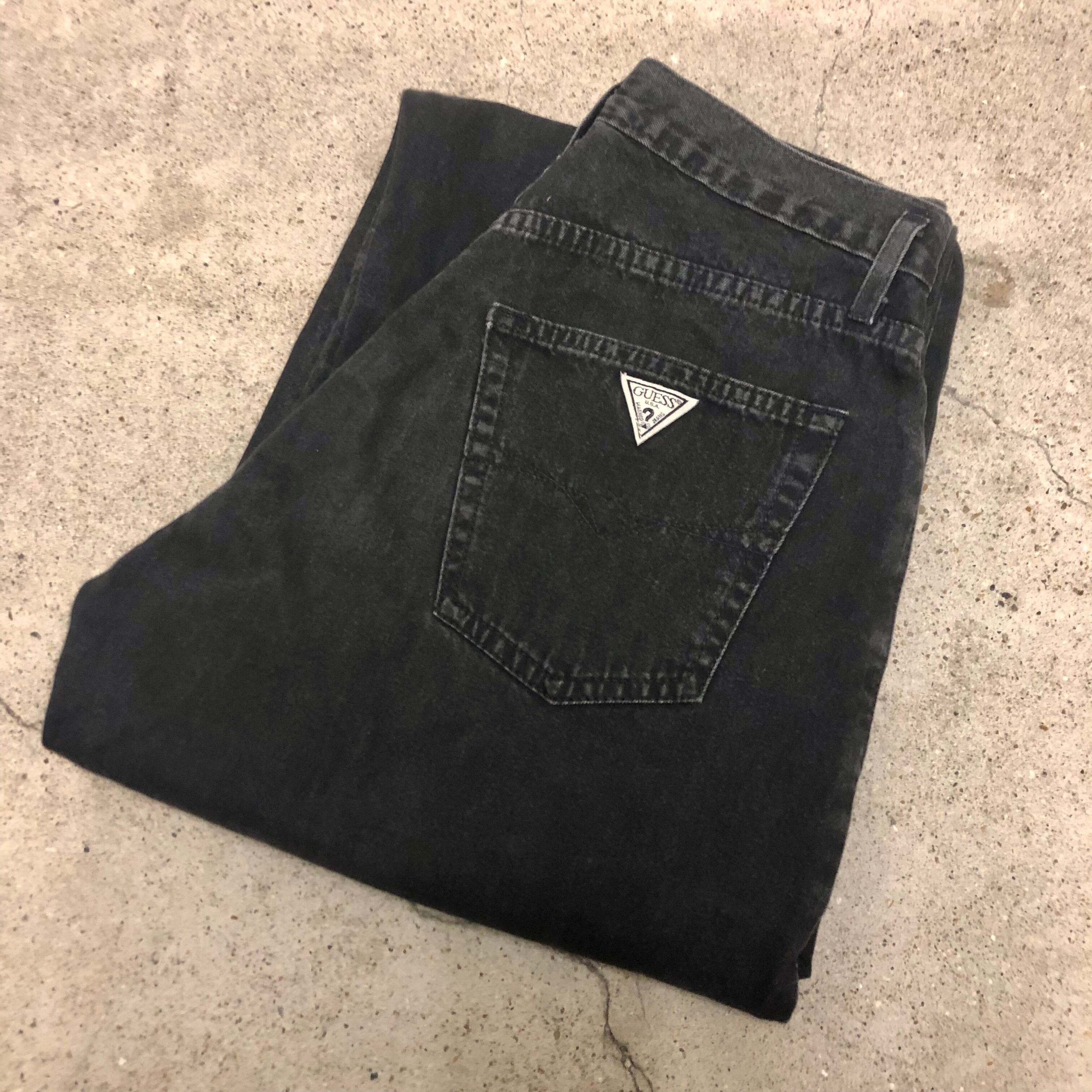 90s GUESS/Wide Black denim/USA製/W29/ワイドブラックデニム/バギーパンツ/ゲス/古着/ヴィンテージ