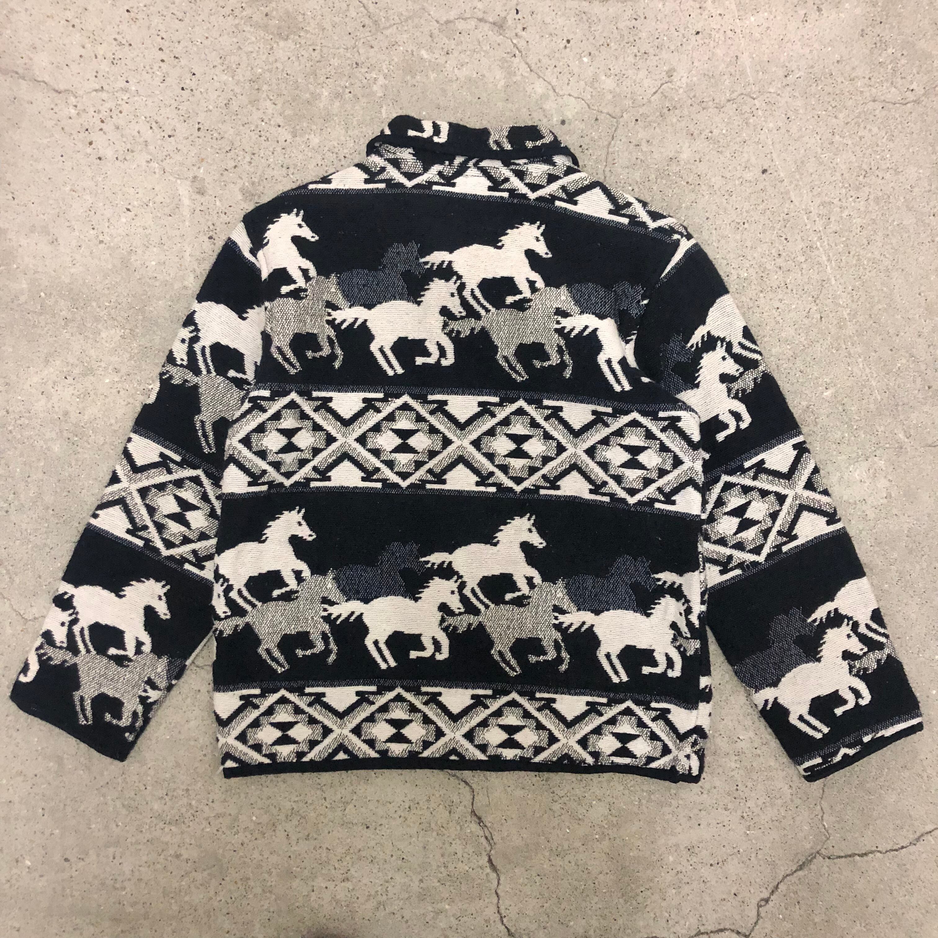 janeashley/gobelin weave jacket/M/ゴブラン織りジャケット/馬柄/ブラック/ホワイト/古着/レディース/コンチョボタン/INDIA製