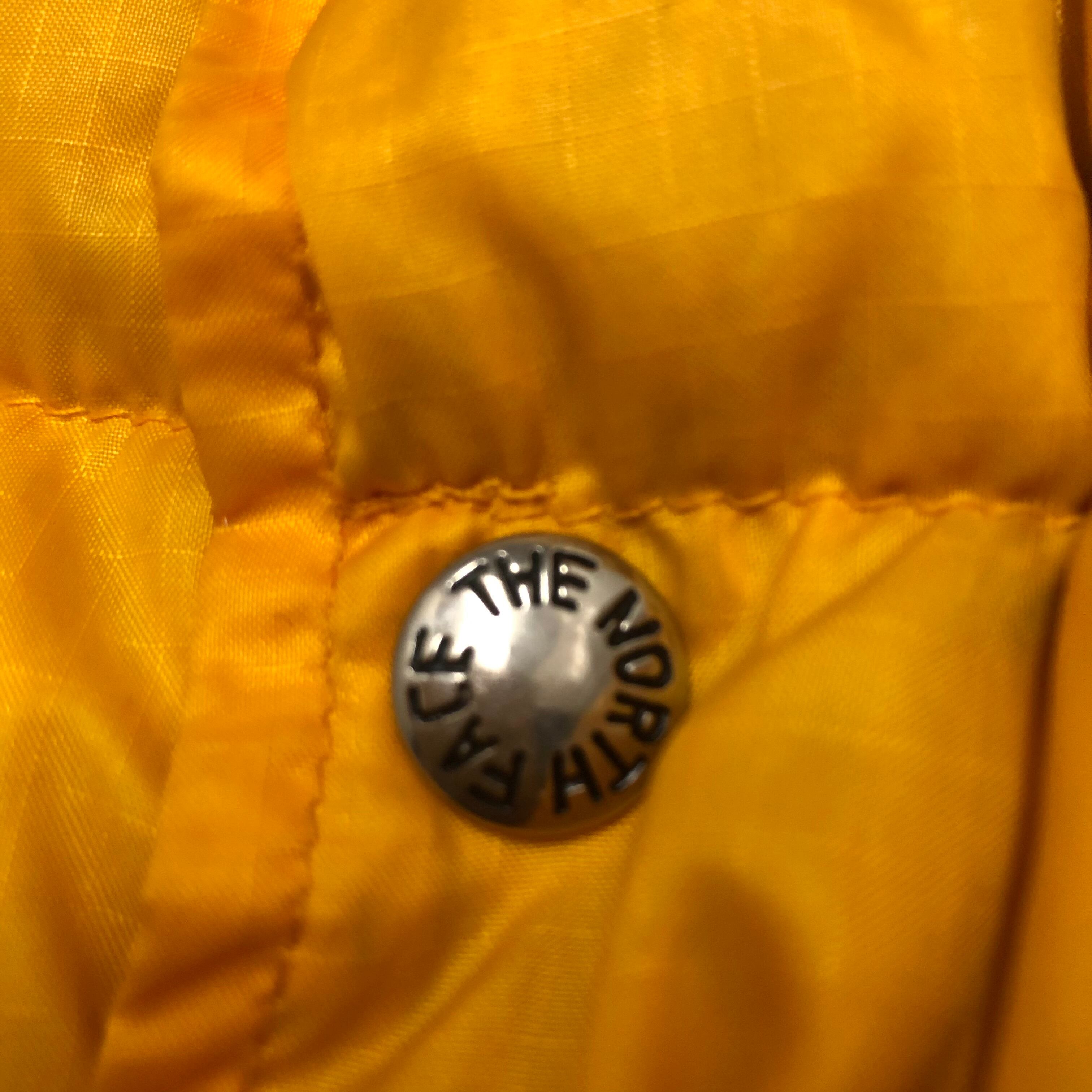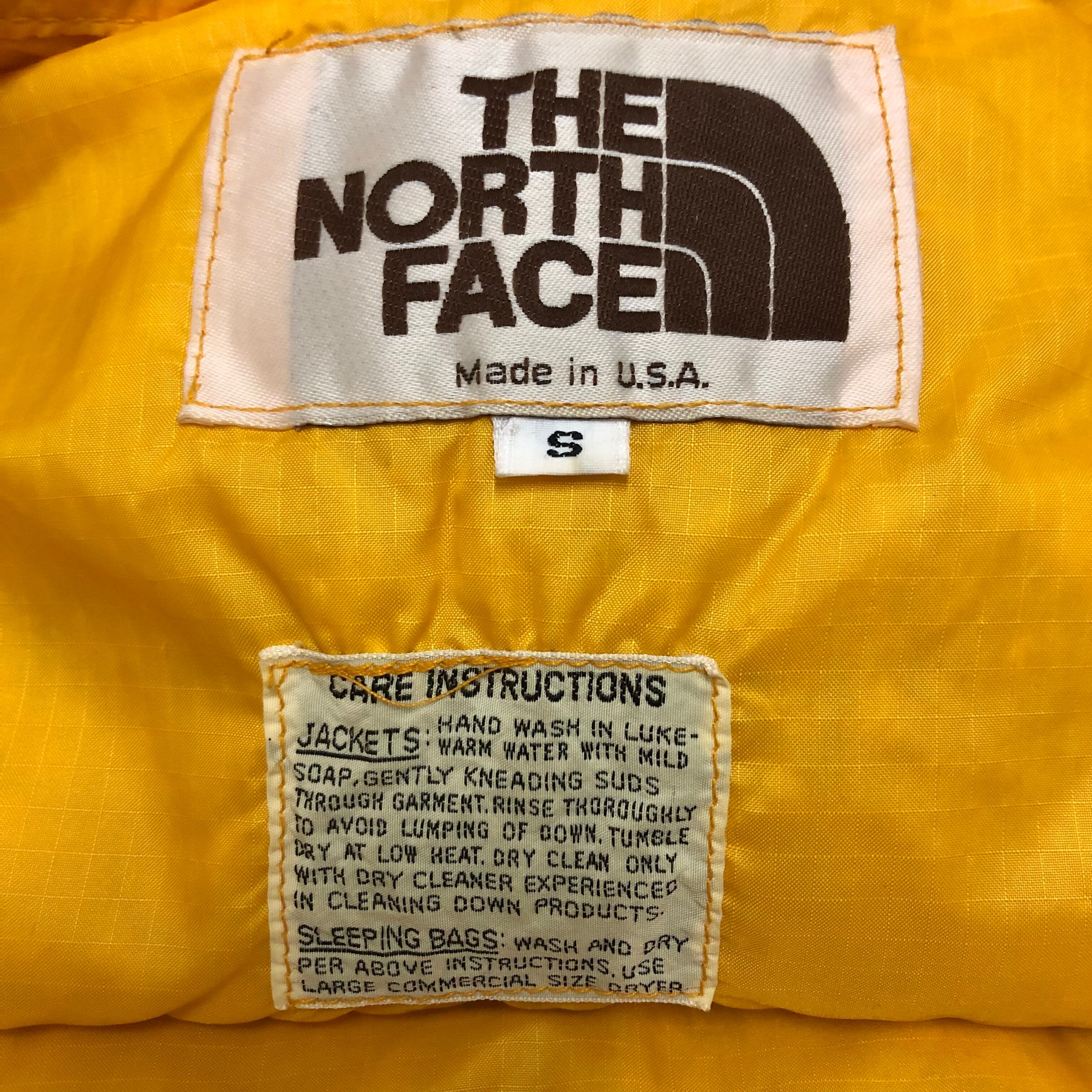 70~80s THE NORTH FACE/Down Vest/茶タグ/USA製/S/ダウンベスト/イエロー/ノースフェイス