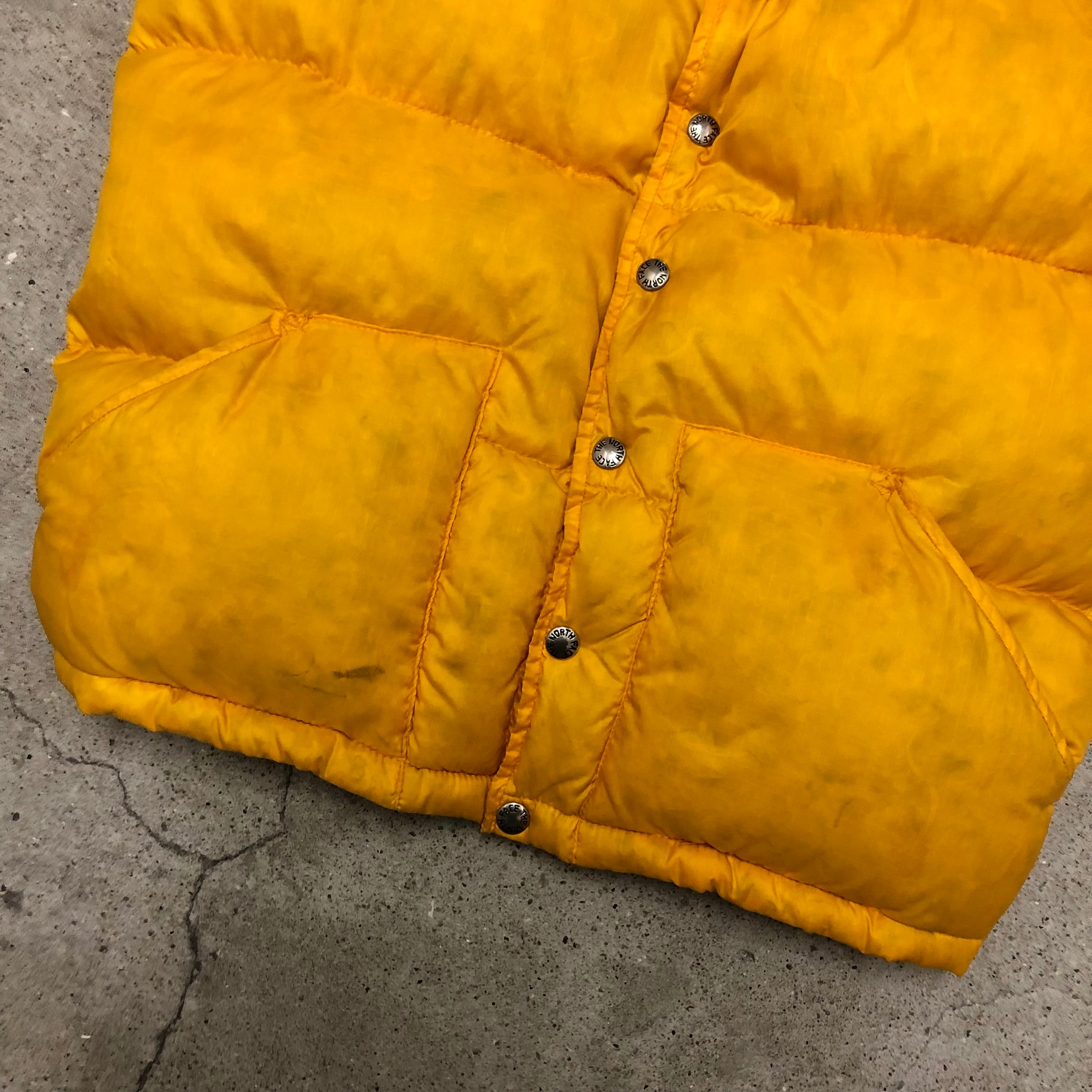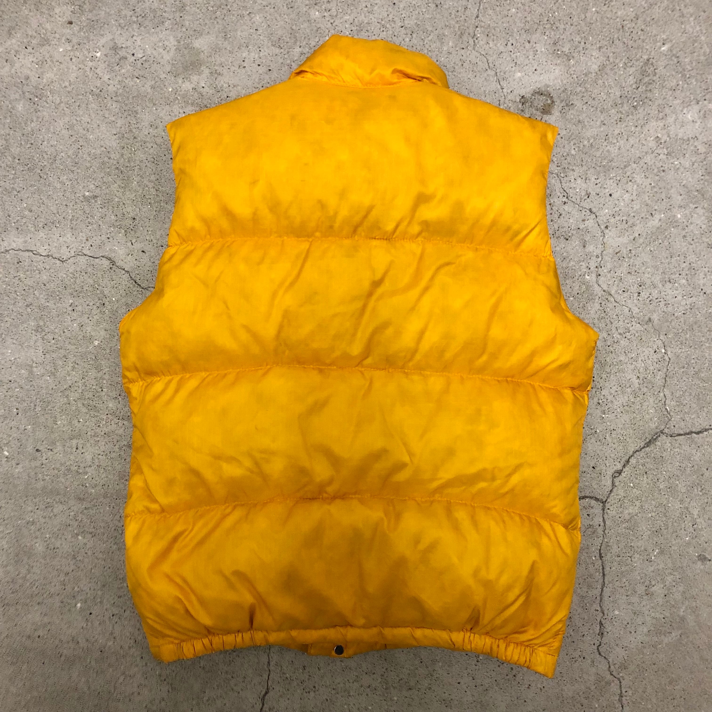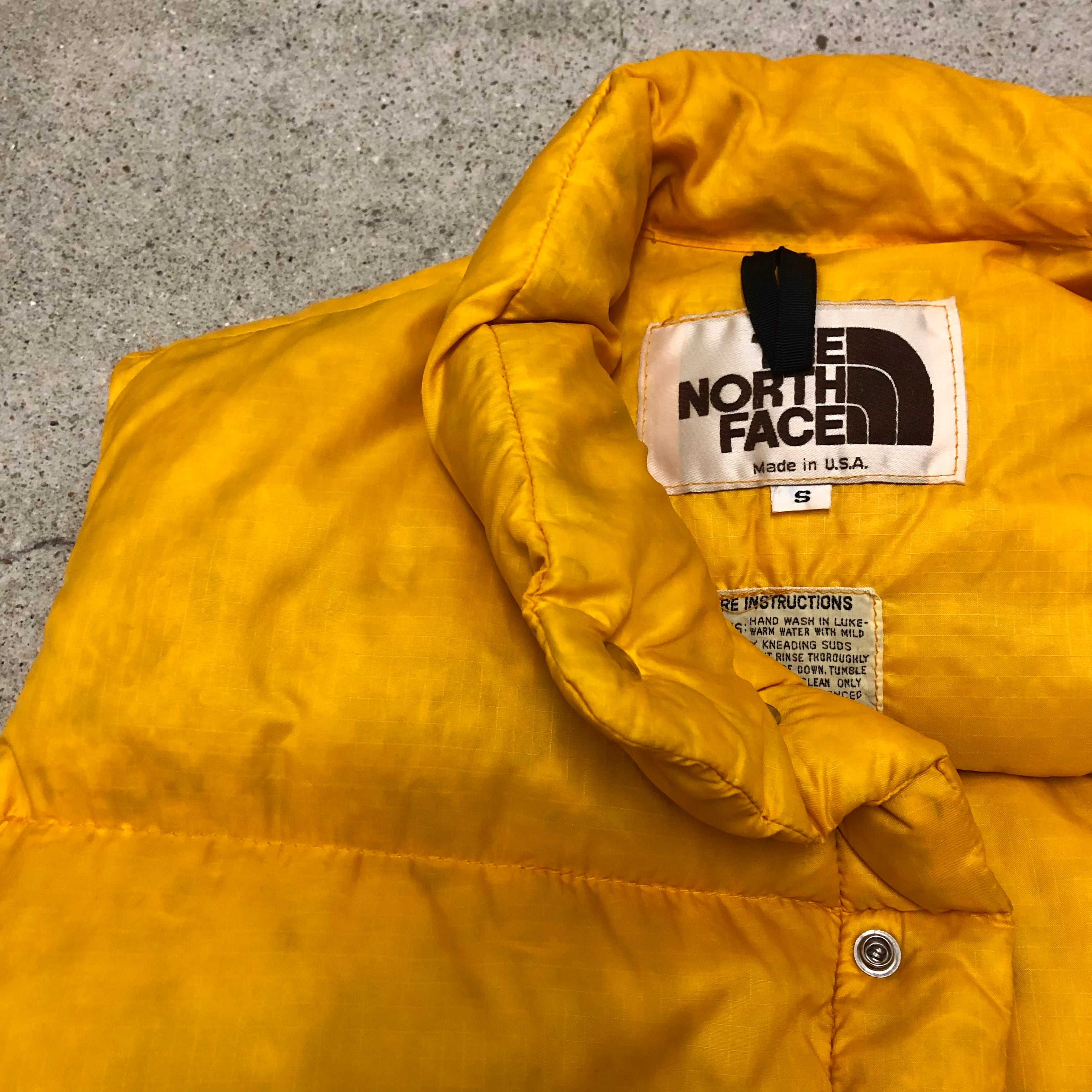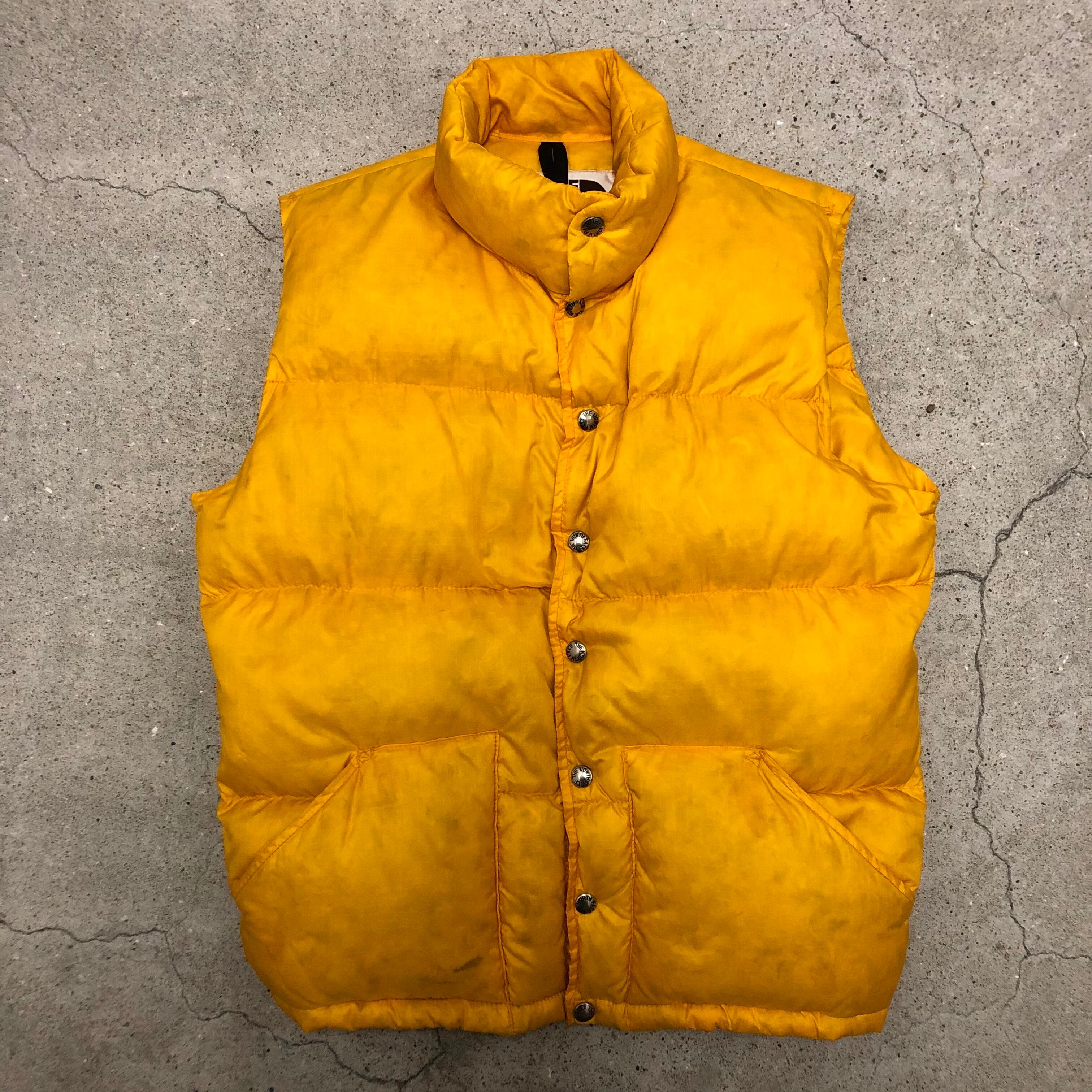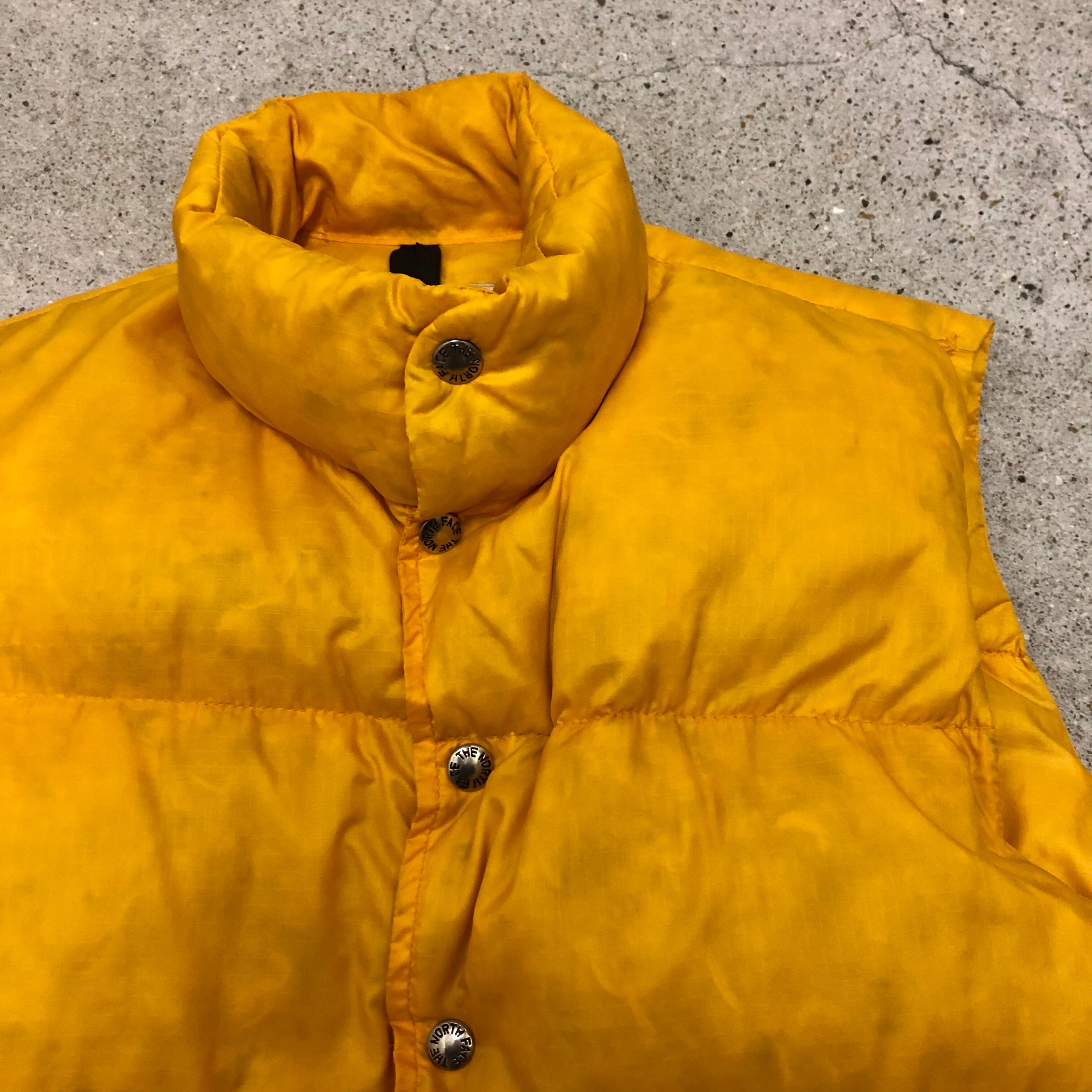 70~80s THE NORTH FACE/Down Vest/茶タグ/USA製/S/ダウンベスト/イエロー/ノースフェイス/アウトドア/古着/ヴィンテージ