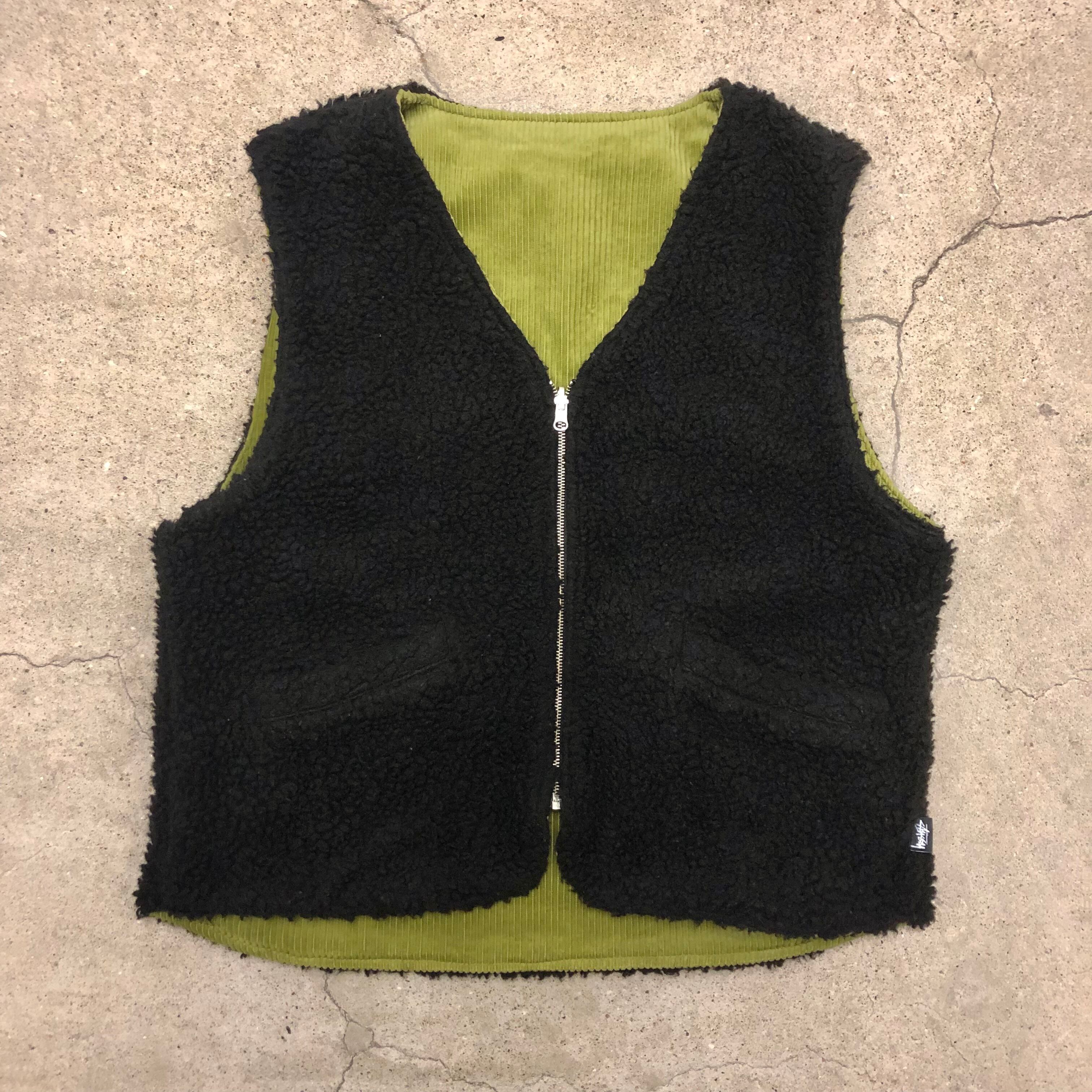STUSSY/20AW/Wide Wale Reversible vest/M/リバーシブルベスト/コーデュロイ/ボア/グリーン/ステューシー