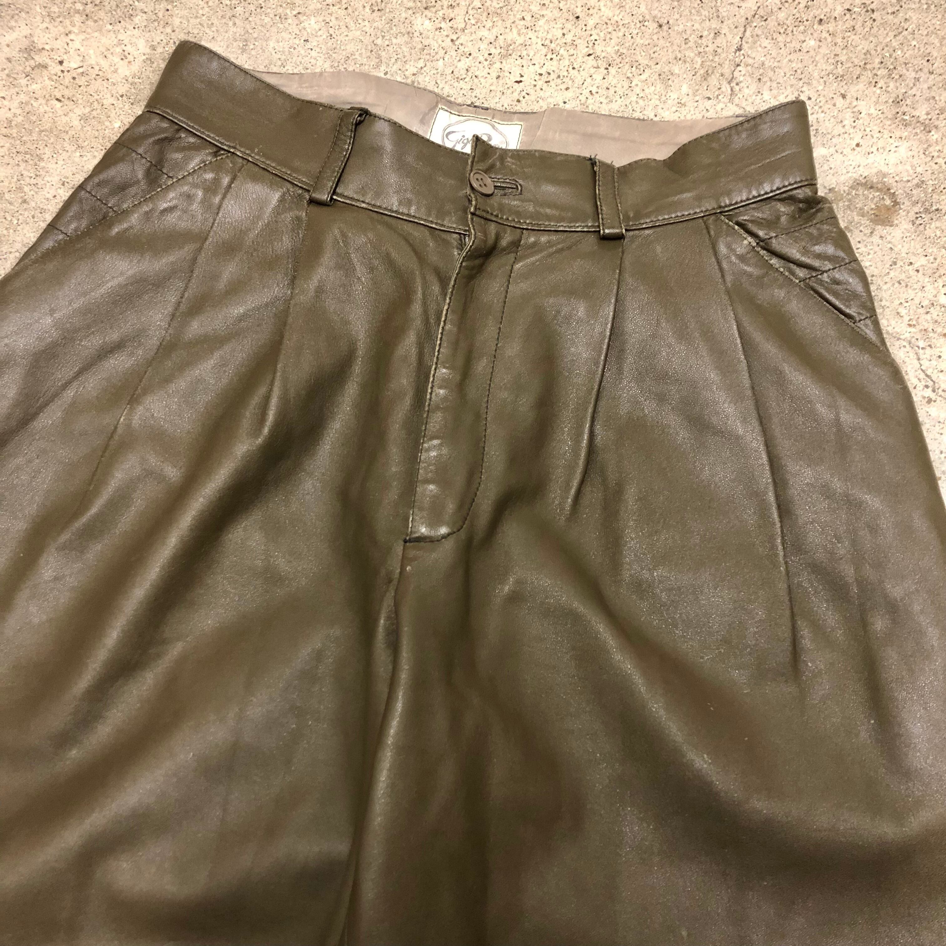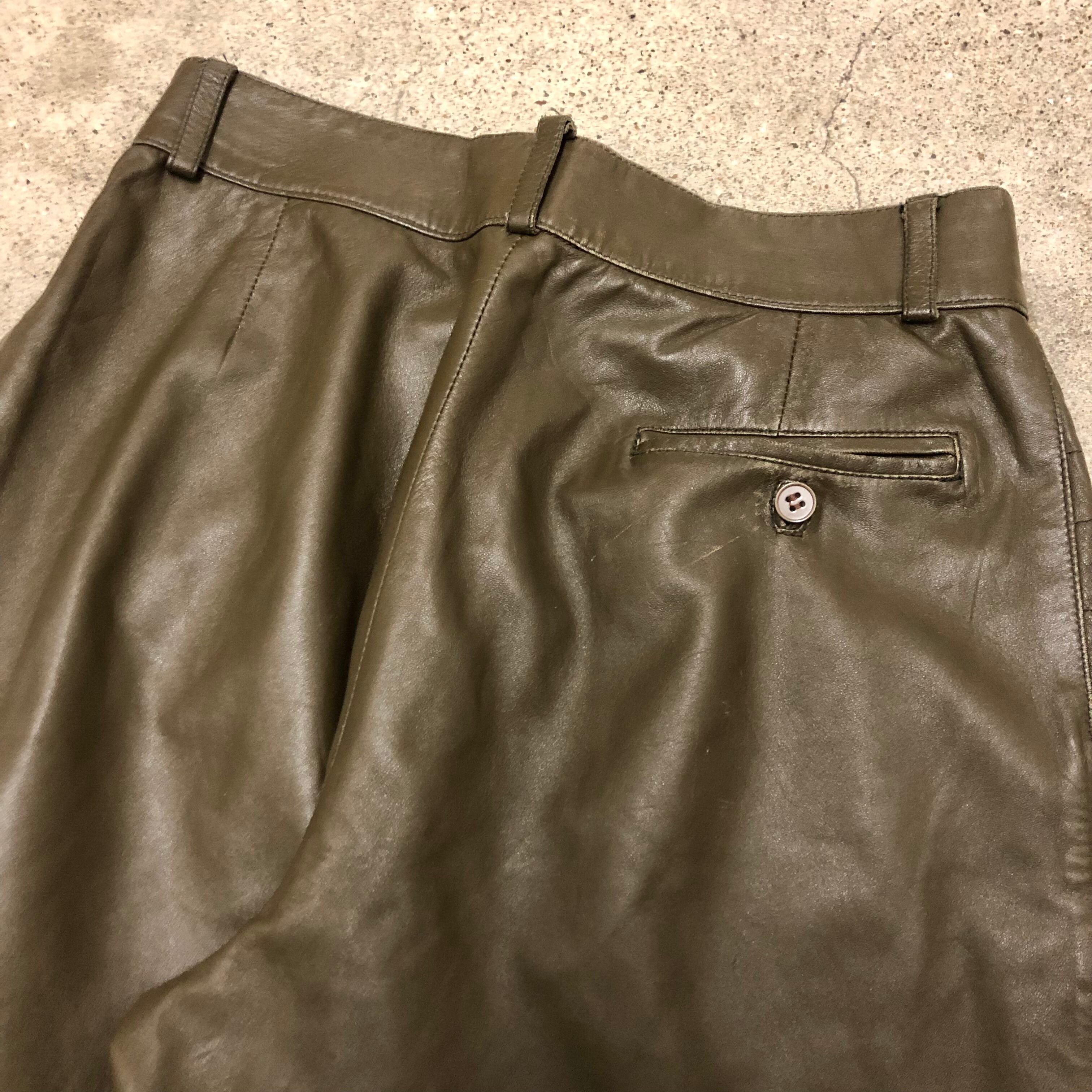 80s~ 2tac Leather pants/46/2タック入レザーパンツ/カーキ/Lampoジップ/レザパン/古着/スラックス/ボトム/ヴィンテージ