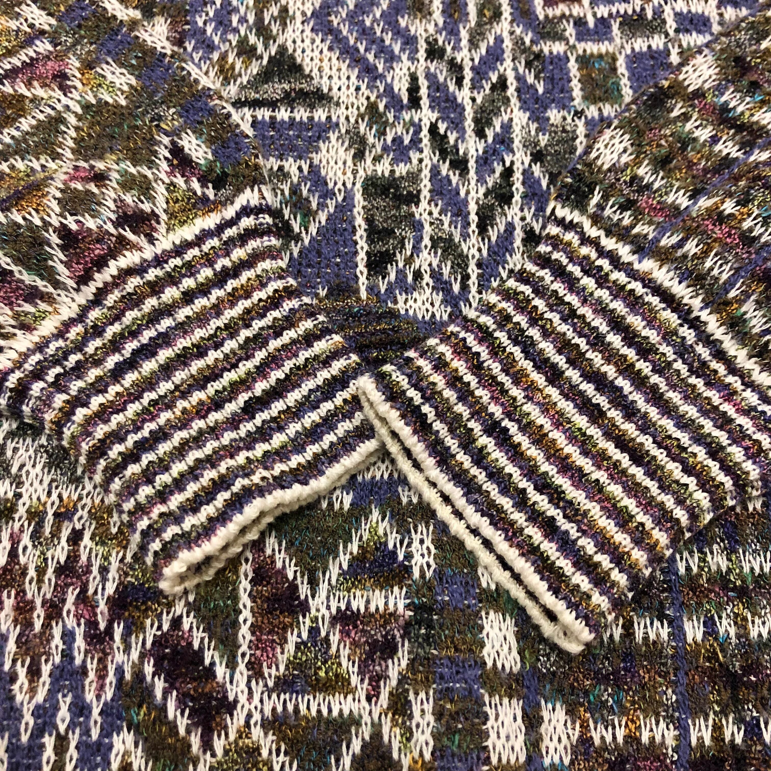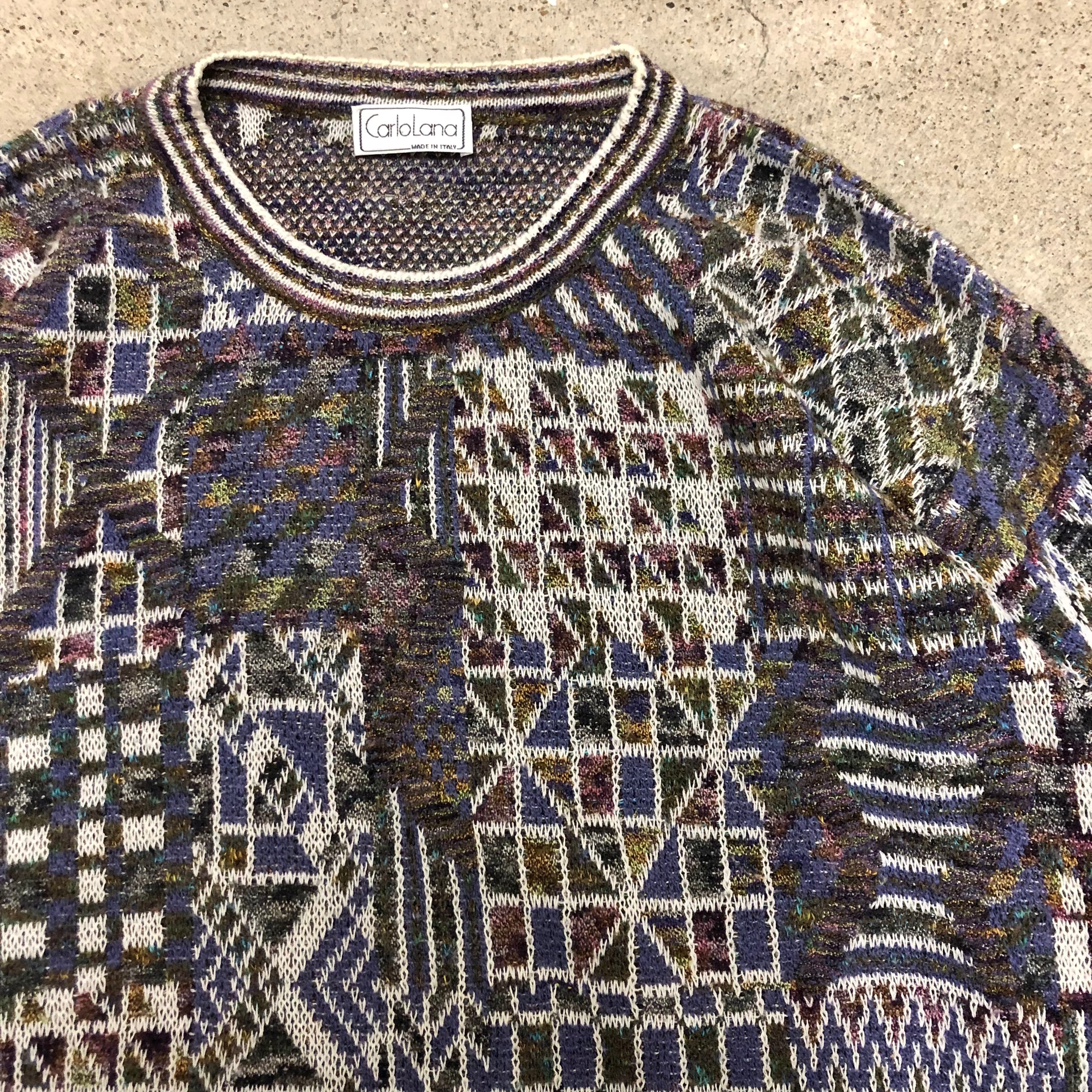eurovintage/Design Knit ITALY製/XL相当/デザインニット/グレー/パープル/総柄/古着/ヴィンテージ/ユーロヴィンテージ