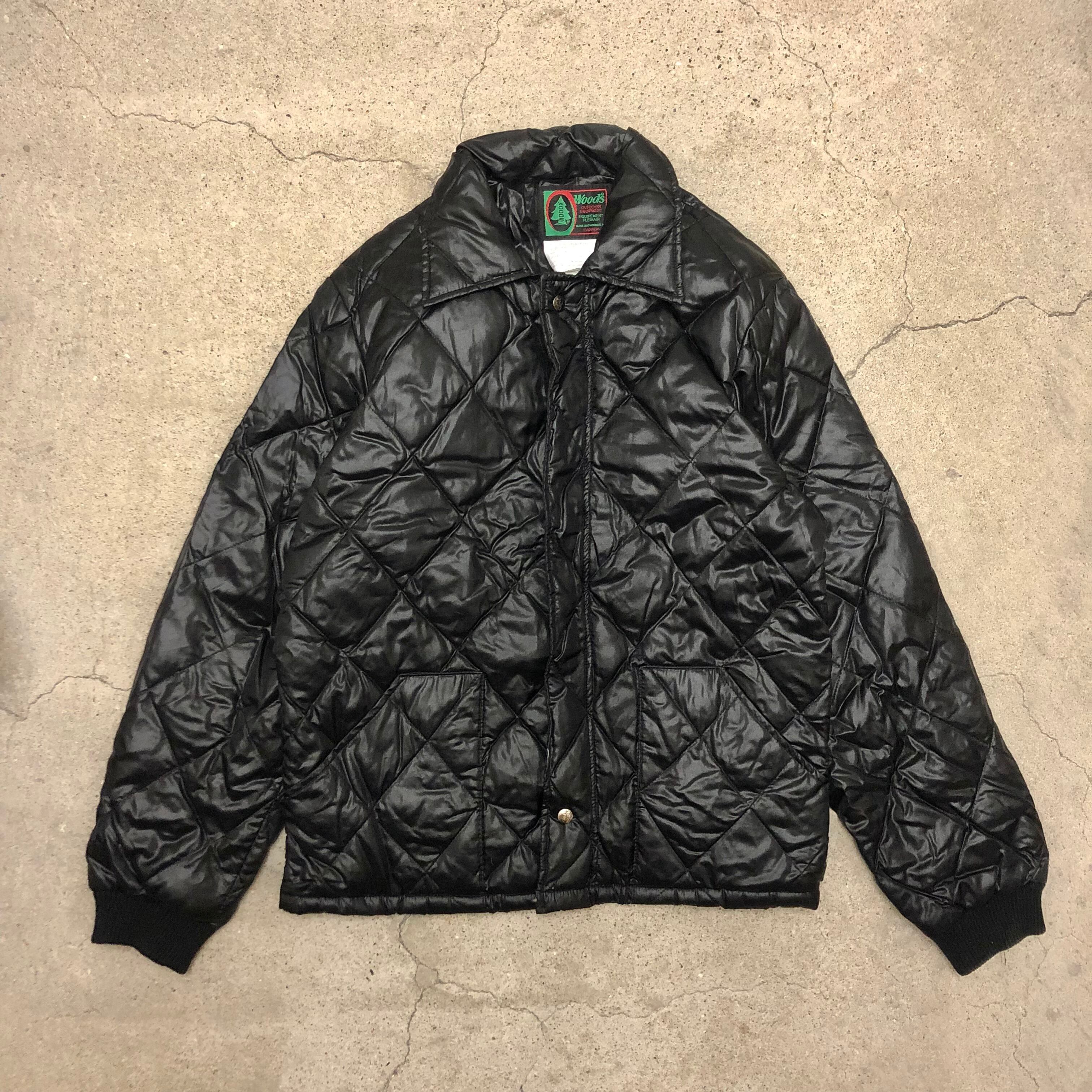90s WOODS/Quilting Down Jacket/L/Canada製/キルティングダウンジャケット/ブラック/ウッズ/OUTDOOR/アウトドア/古着