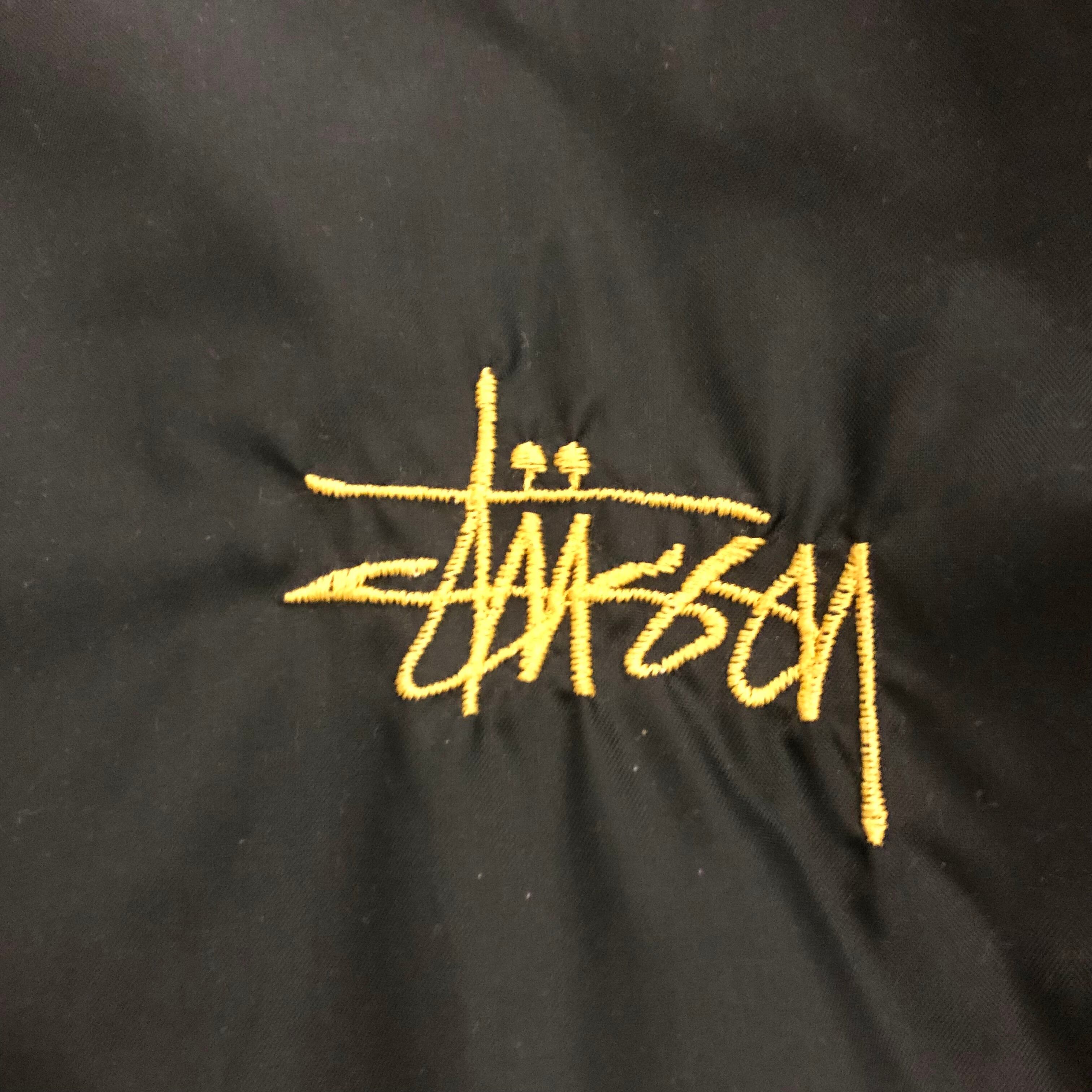 90s OLD STUSSY/Nylon Jacket/紺タグ/L/ナイロンジャケット/ブラック/イエロー/サイドライン/刺繍ロゴ/ステューシー/オールドステューシー/古着/ヴィンテージ