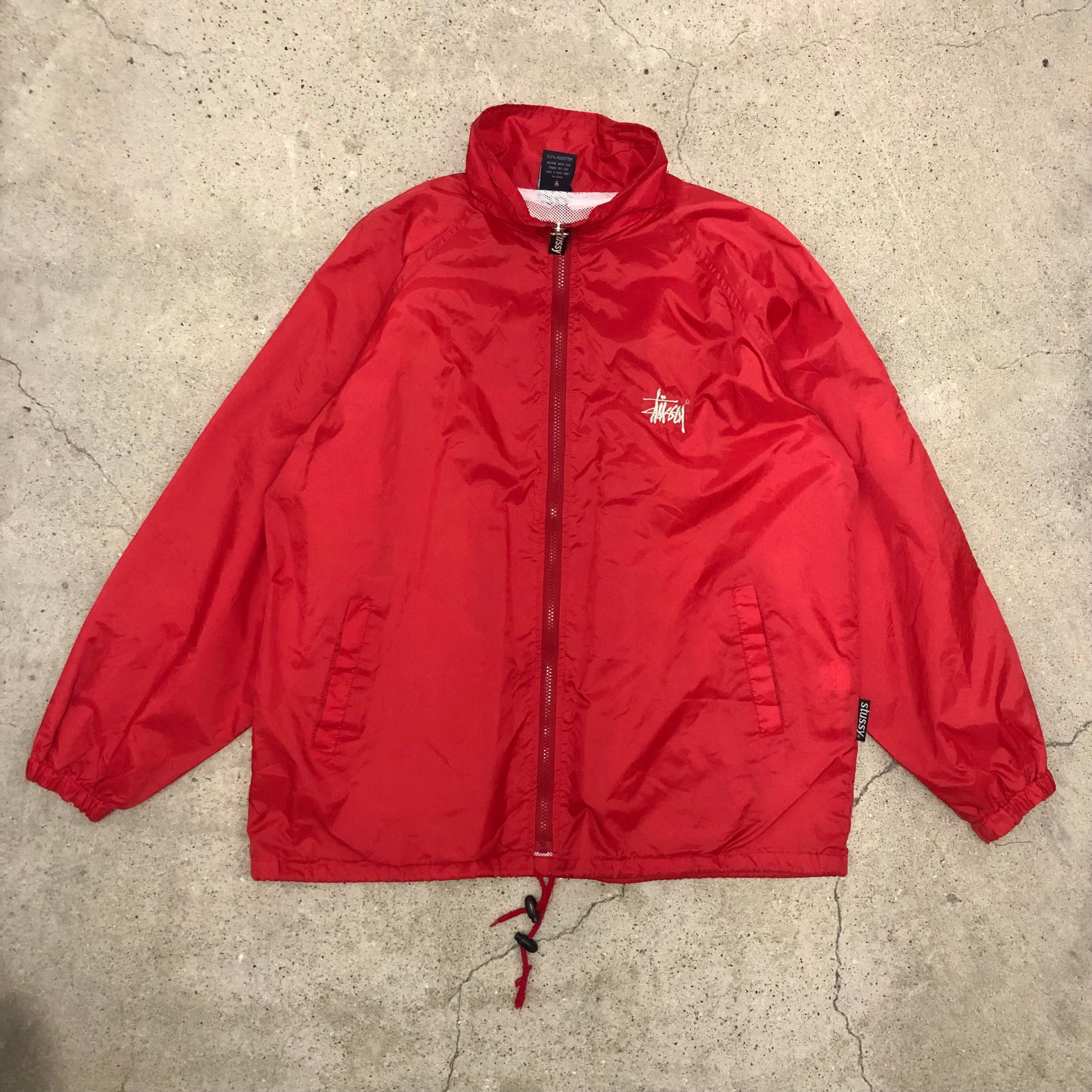 90s OLD STUSSY/Nylon Jacket/赤青タグ/L/Designed in USA/ナイロンジャケット/レッド/刺繍ロゴ/ステューシー/オールドステューシー/古着/ヴィンテージ