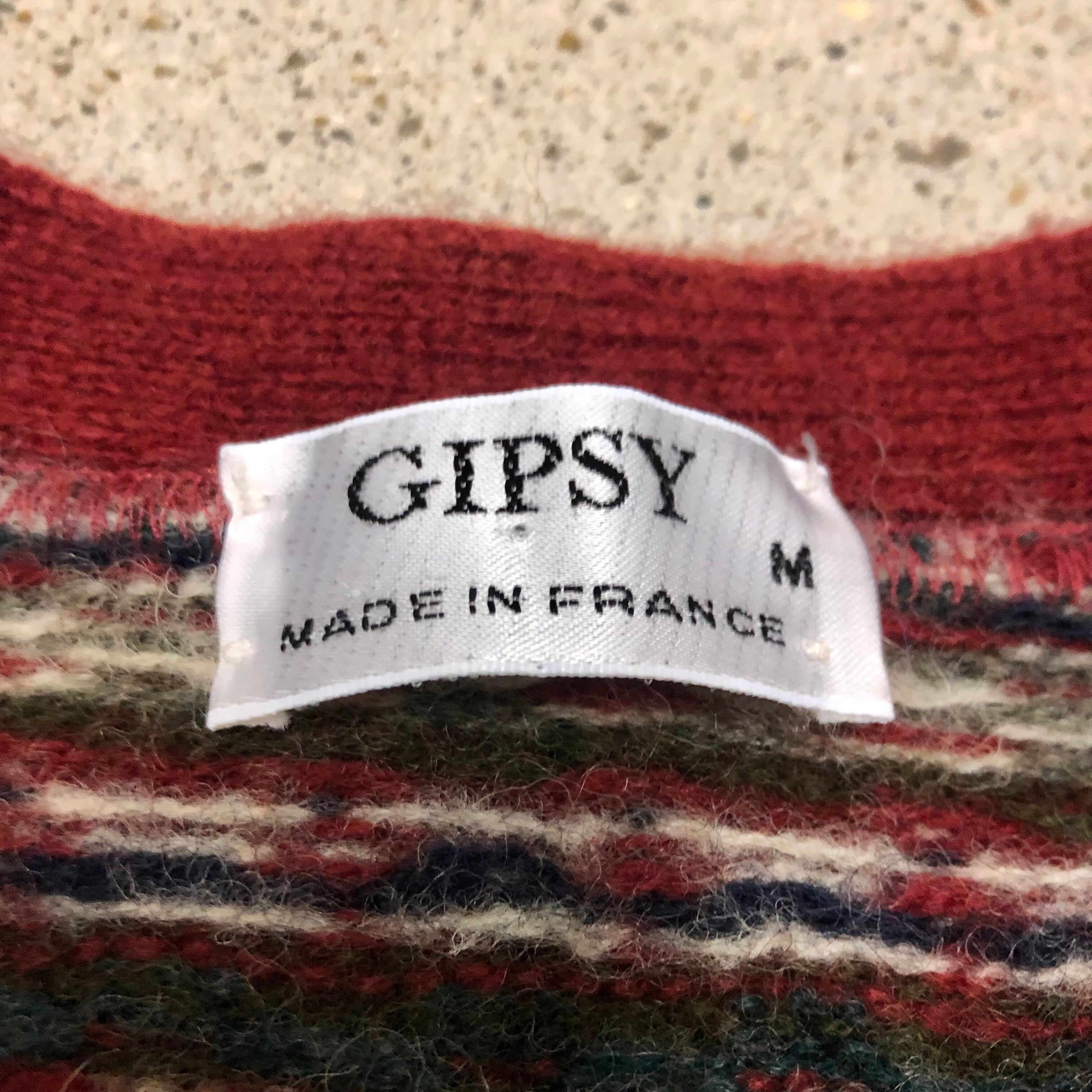 90s GIPSY/Nordic cardigan/France製/M/ノルディック柄カーディガン/レッド/総柄/古着