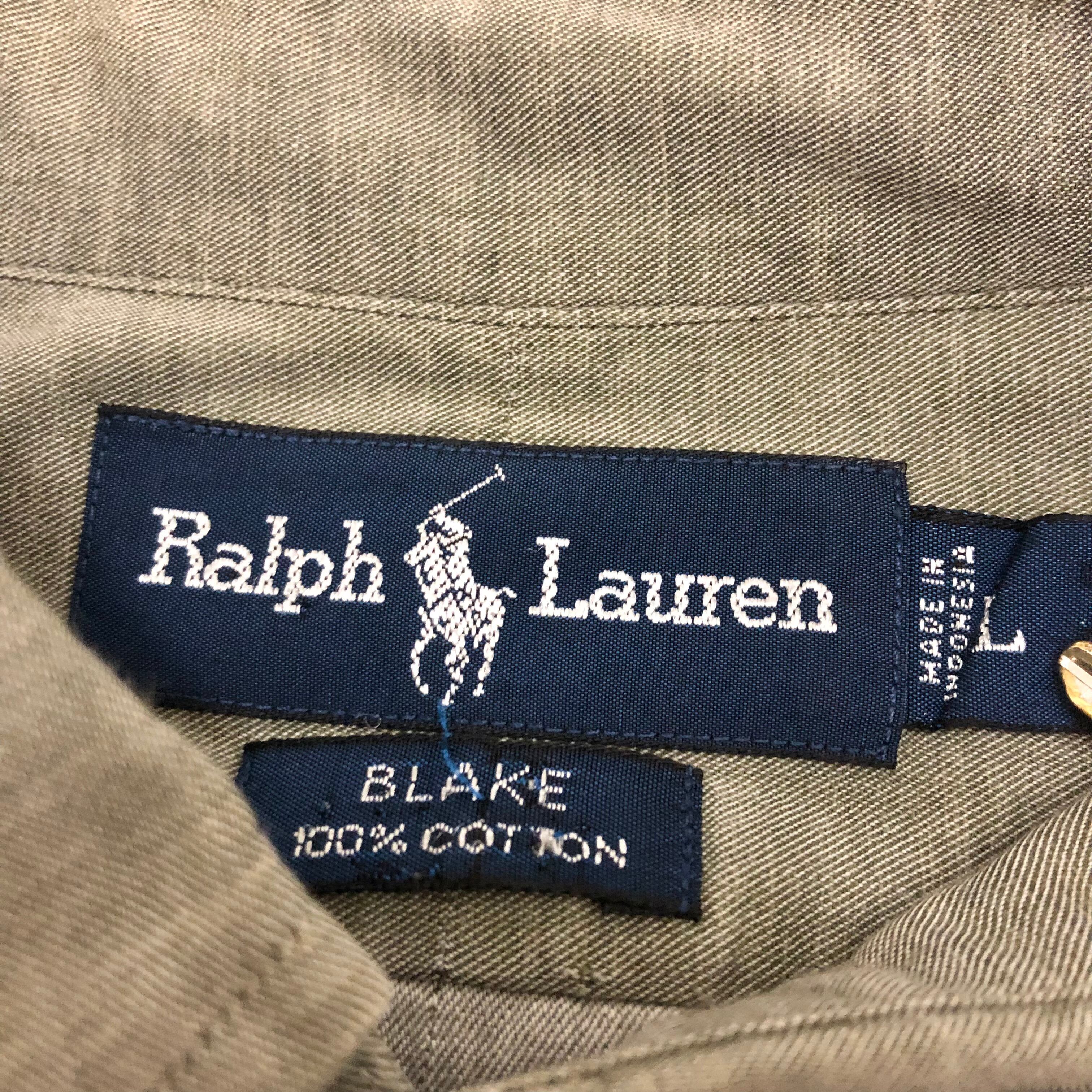 90s POLO RALPH LAUREM/BLAKE/BD L/S shirt/L/ボタンダウンシャツ/グレー/ポロラルフローレン/長袖シャツ/ポニーロゴ/刺繍ロゴ/古着/ヴィンテージ