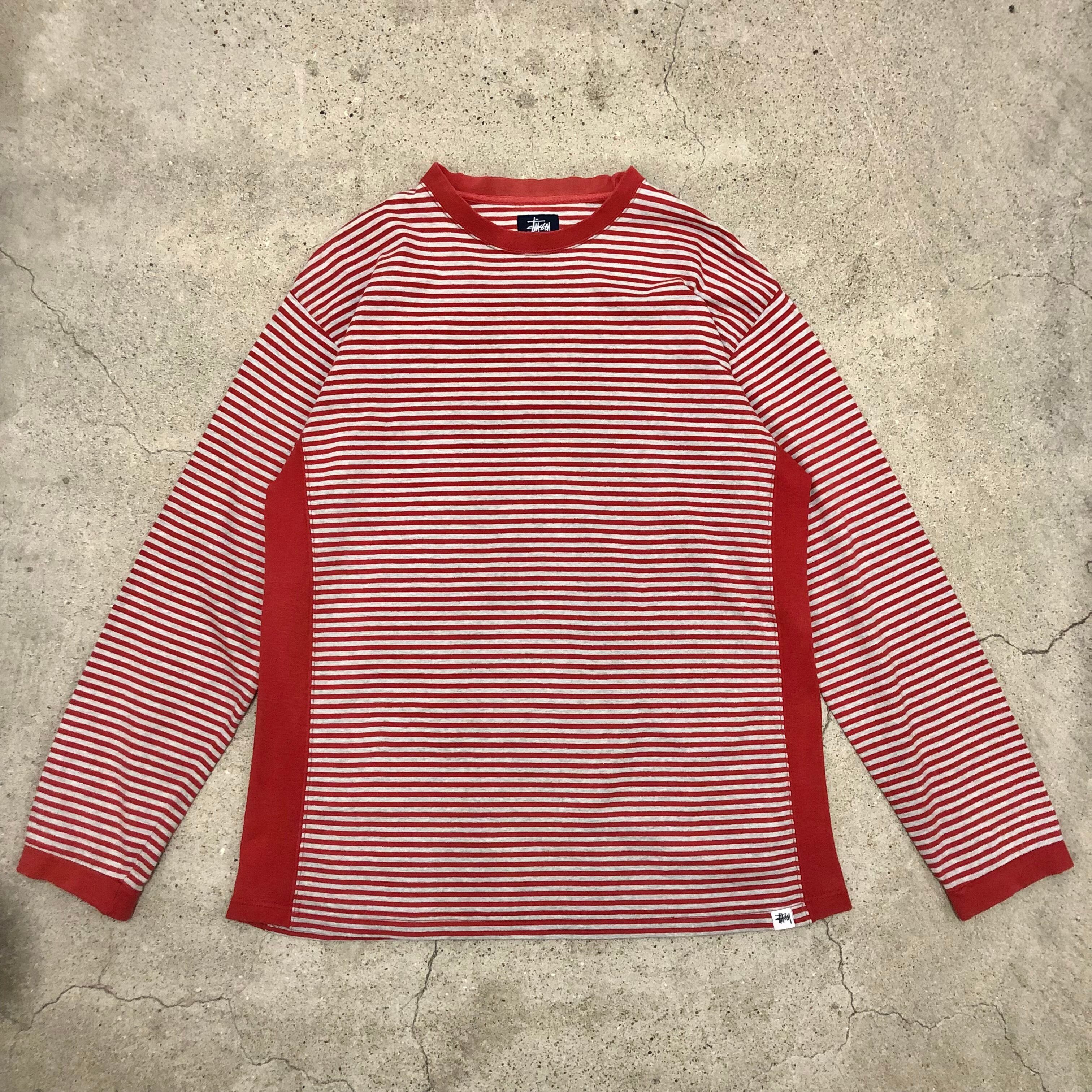 90~00s OLD STUSSY/Border L/S Tee/紺タグ/Pakistan製/L/ボーダーロンT/レッド/グレー/ステューシー
