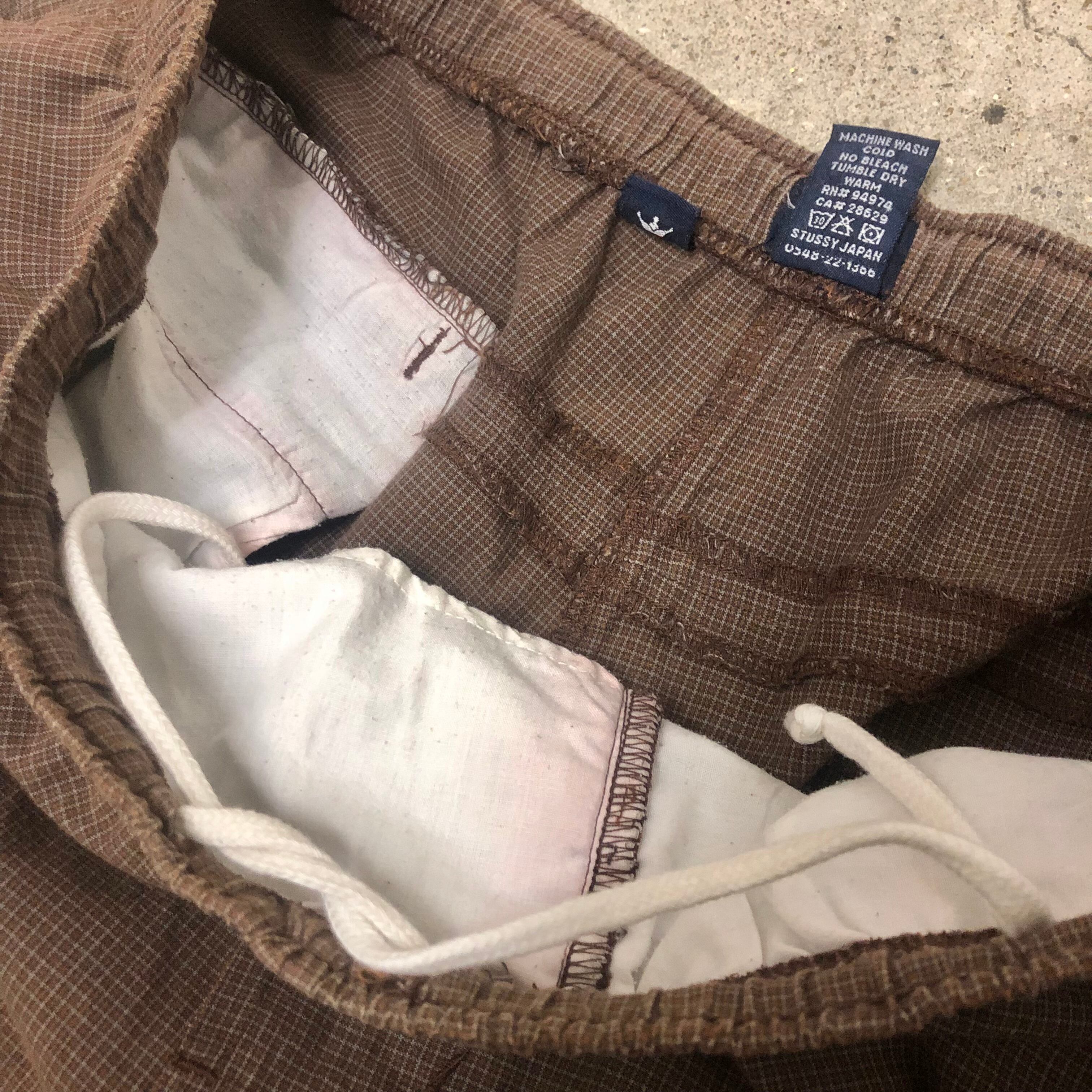 90~00s OLD STUSSY/Side zip Easy pants/紺タグ/XL/サイドジップ付きイージーパンツ/チェック柄/ブラウン/ステューシー/オールドステューシー/古着/ヴィンテー