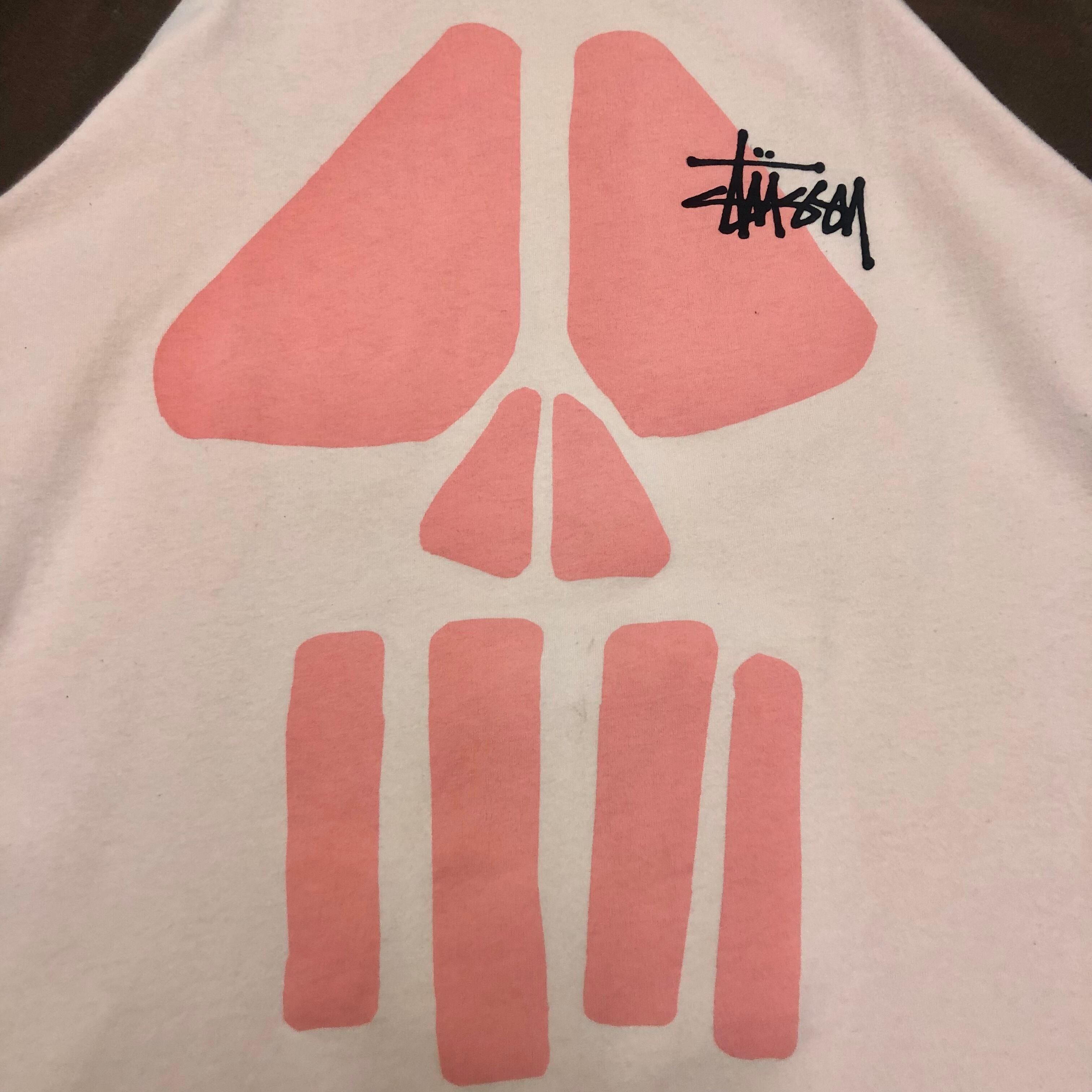 00s~STUSSY/Skull print raglan Tee/USA製/M/スカルプリント/ラグランT/ピンク/ブラウン/ステューシー/7分袖/オールドステューシー/古着/ヴィンテージ