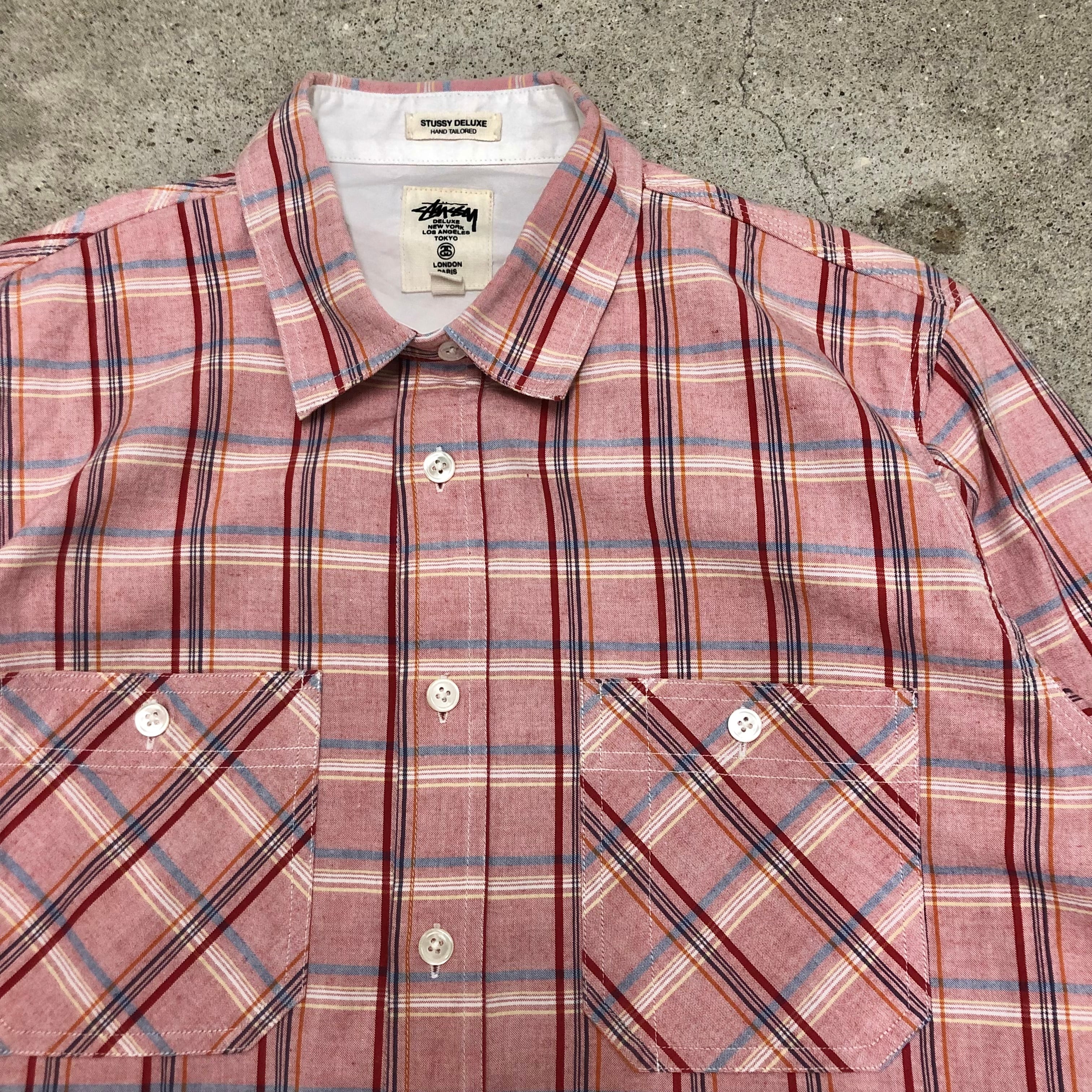STUSSY DELUXE/Check L/S Shirt/M/チェック柄/長袖シャツ/ピンク/ステューシーデラックス/ステューシー/HAND TAILORED