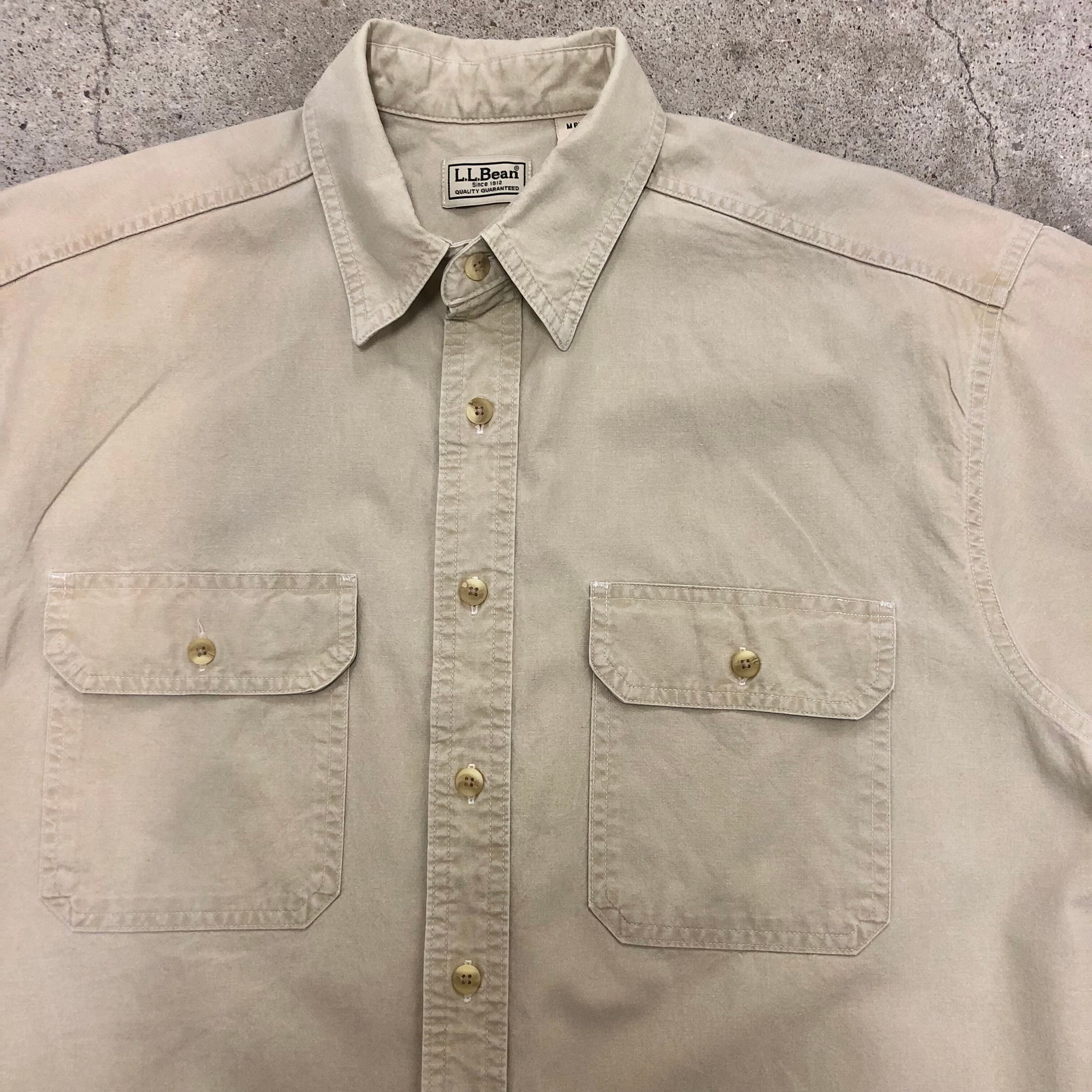 80~90s L.L.Bean/ S/S cotton shirt/Canada製/M/半袖シャツ/ベージュ/フラップポケット/エルエルビーン/OUTDOOR/アウトドア/古着