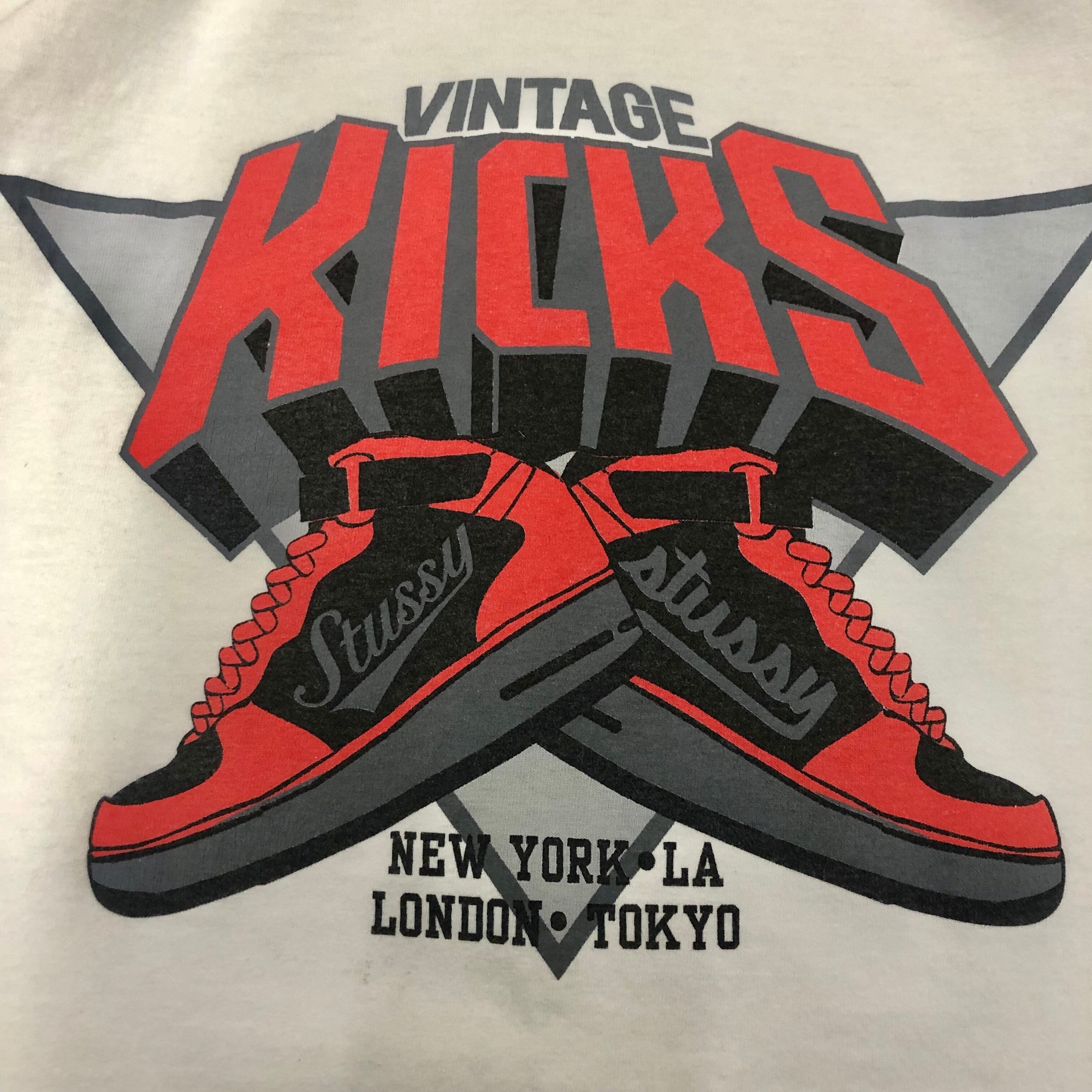 00s STUSSY/Vintage KICKS L/S Tee/M/ロンT/長袖/Tシャツ/ホワイト/ステューシー