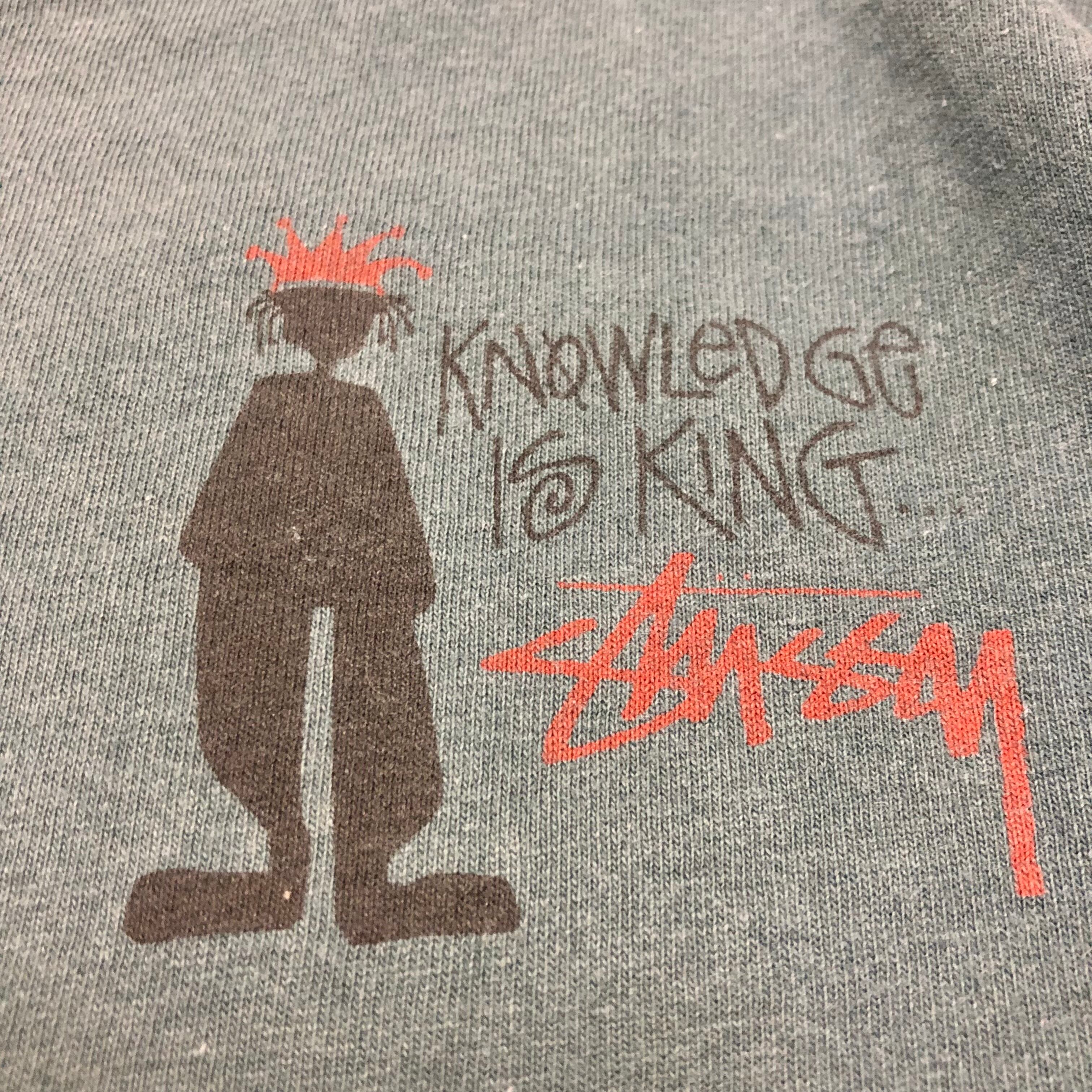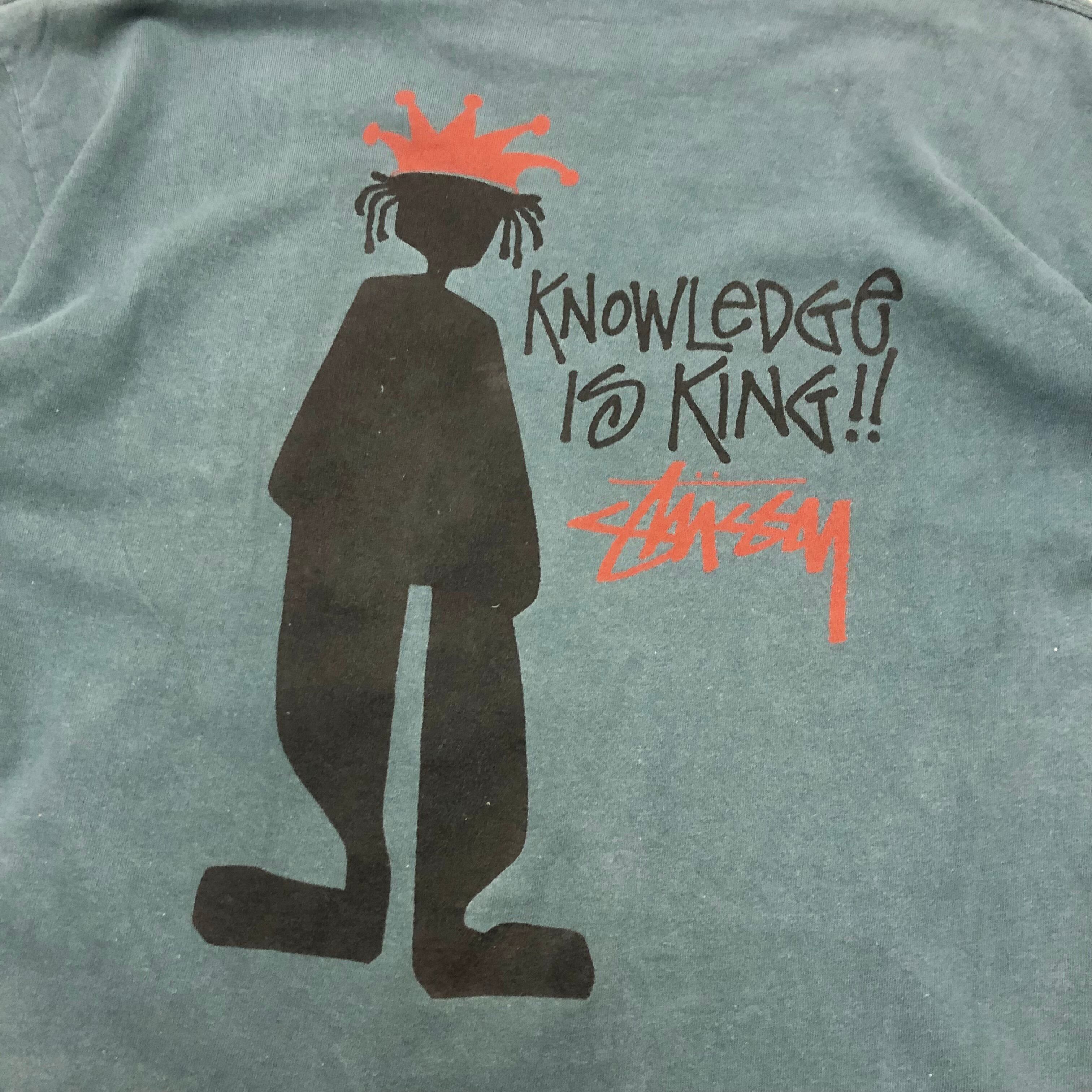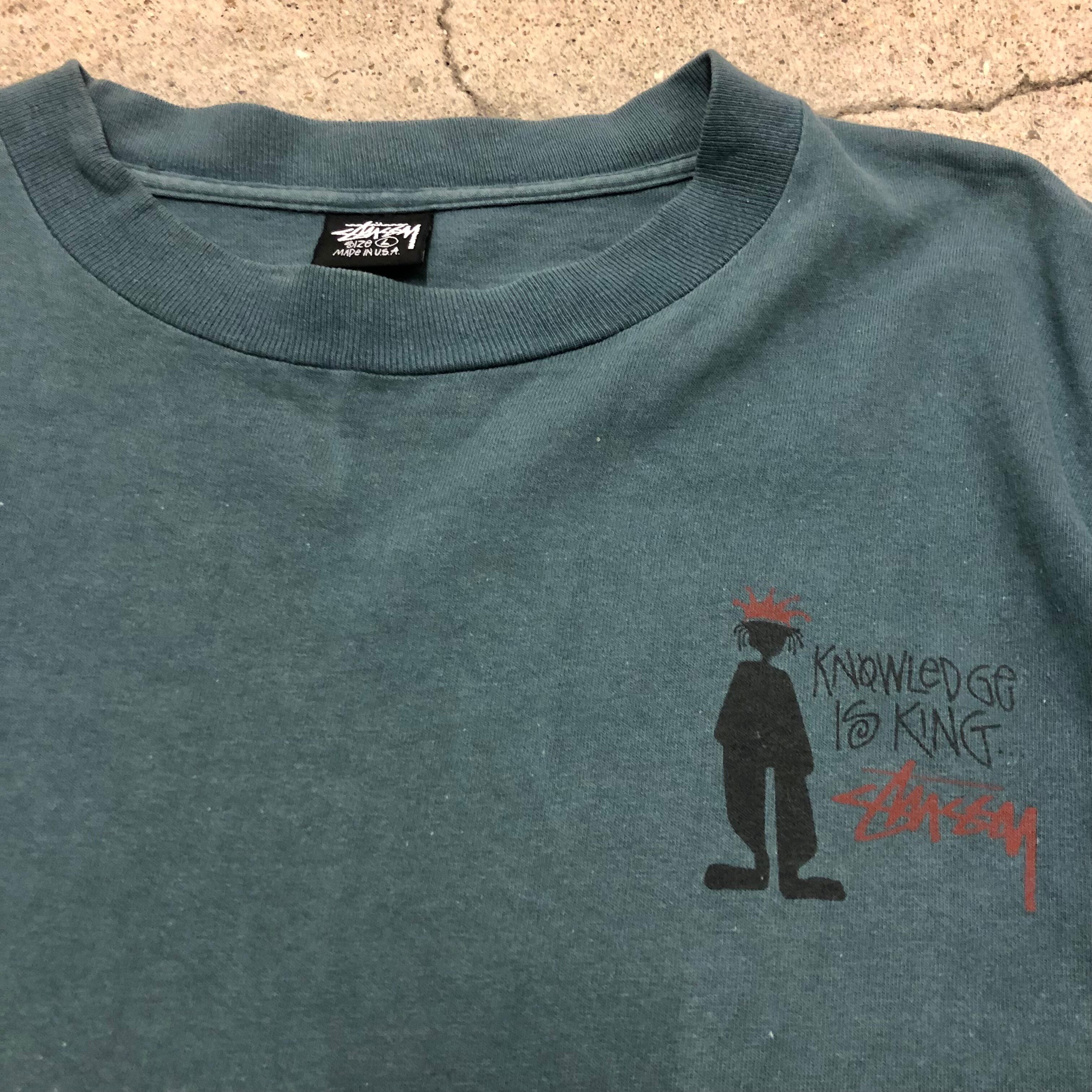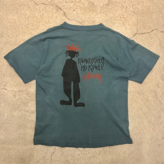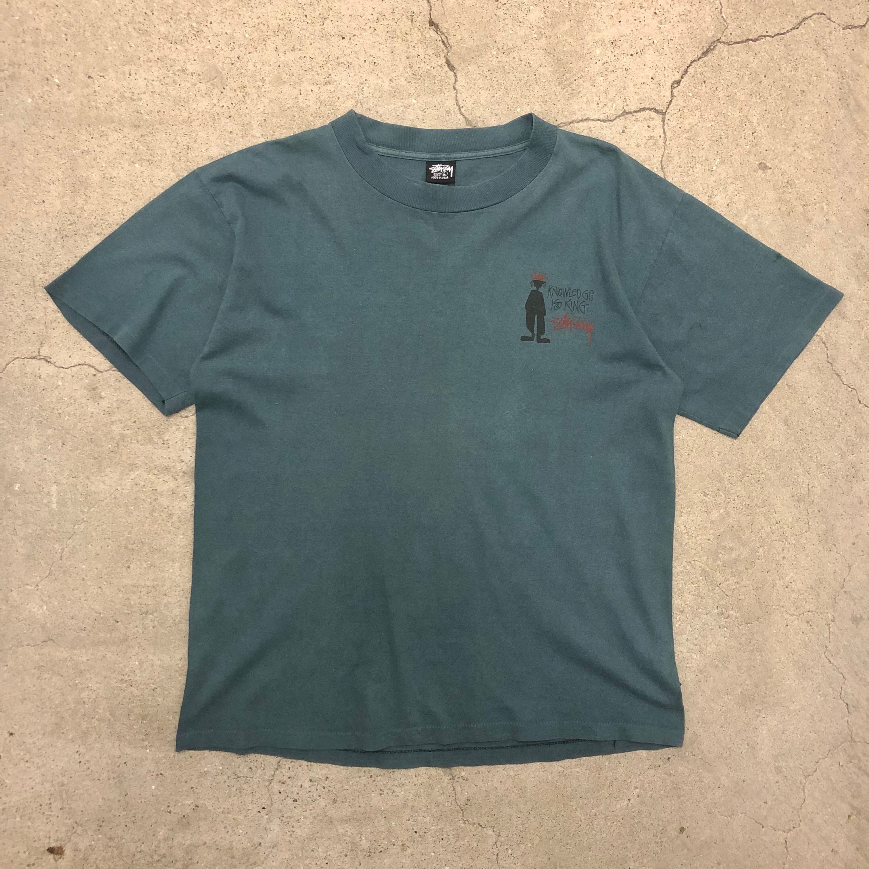 80s OLD STUSSY/Shadow man Tee/USA製/黒タグ/L/シャドーマン/KNOWLEDGE IS KING/Tシャツ/カーキ/ステューシー/オールドステューシー/古着/ヴィンテージ/アーカイブ