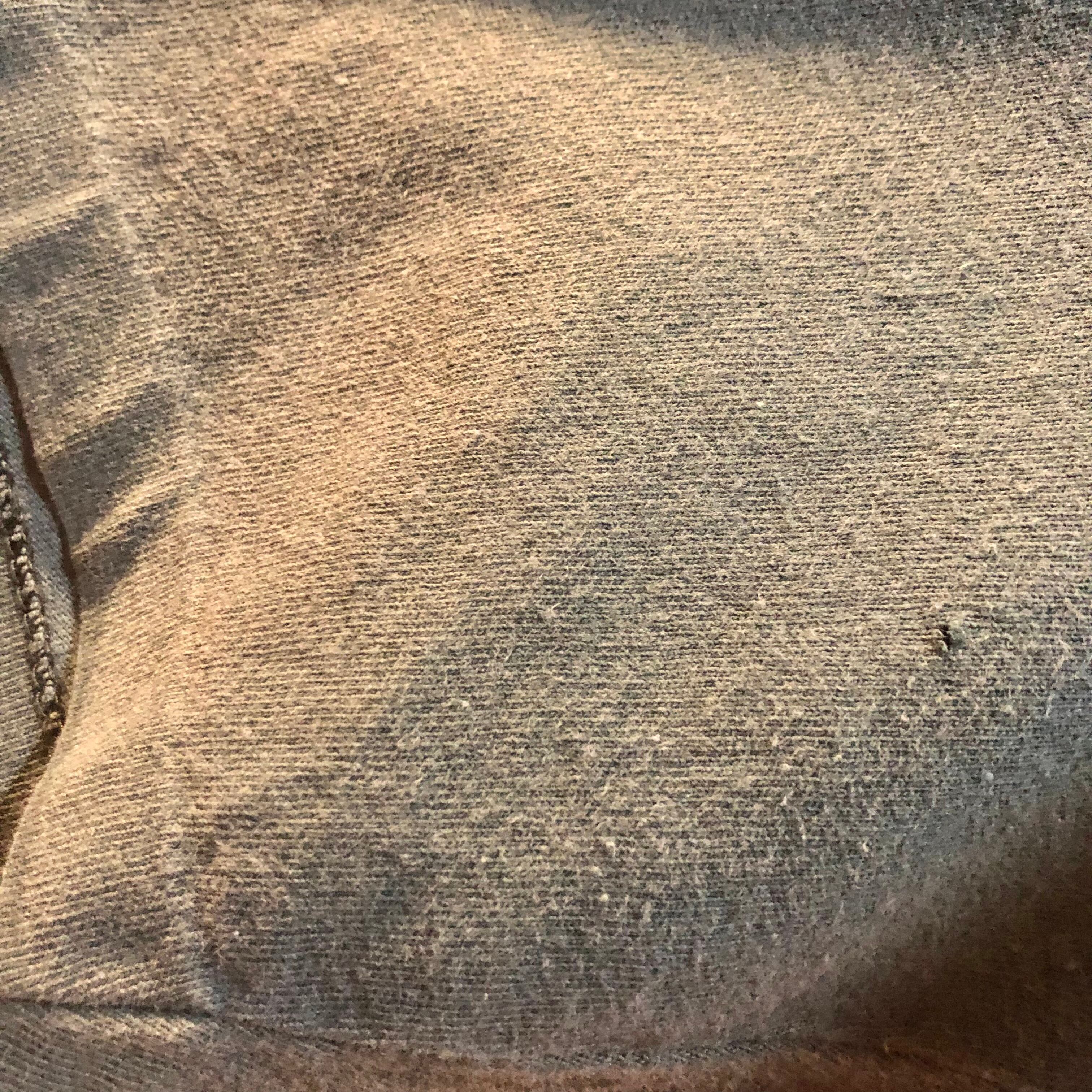 中古、古着特有の着用感、左肩周辺に若干ホツレがあり、右袖に1か所ピンホールがあります。