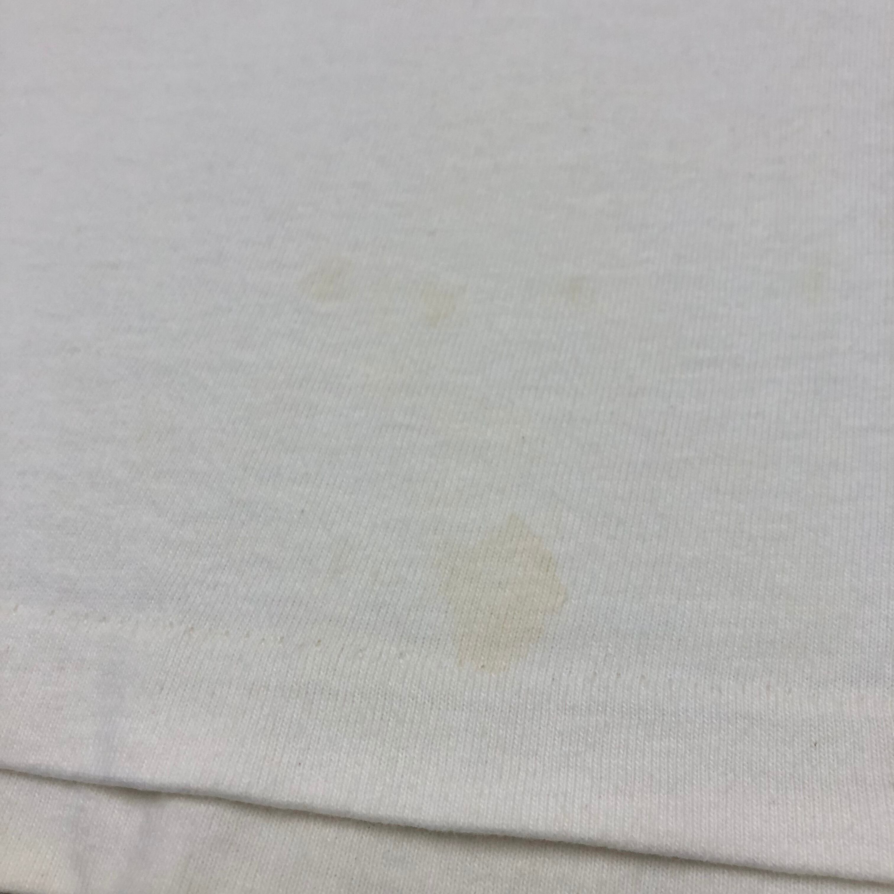 中古、古着特有の着用感、若干、裾周辺、首周りにシミがあります。