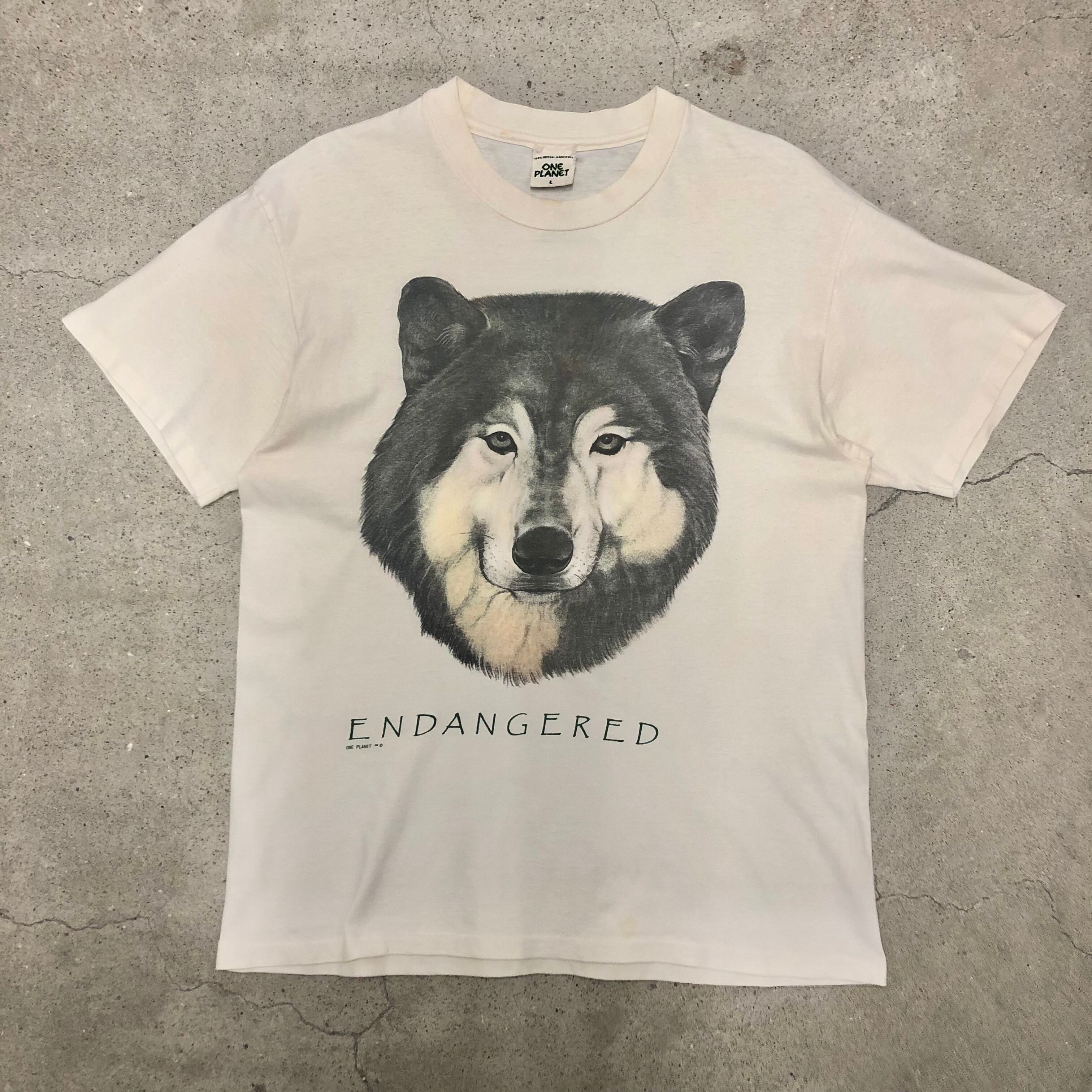 90s ONE PLANET/Wolf Tee/USA製/L/オオカミプリント/Tシャツ/アニマルT/クリーム/古着